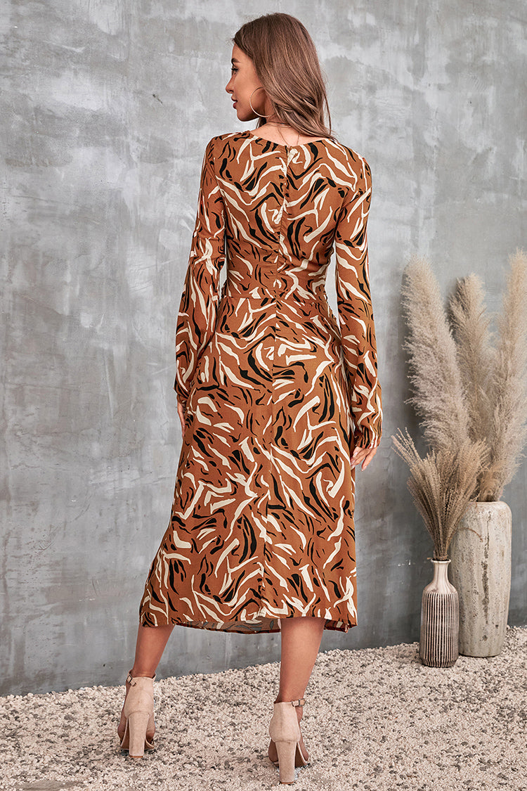 HomeAddy Cutout Geometric Print A-Shape Dress
