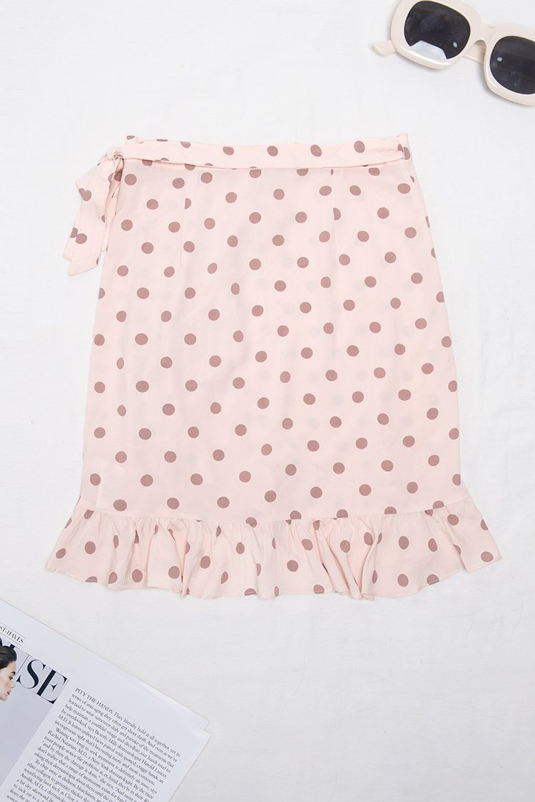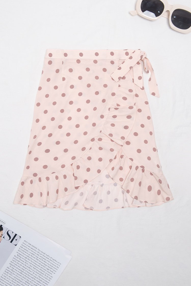 HomeAnnette Polka Dot Ruffle Tie Side Beach Skirt