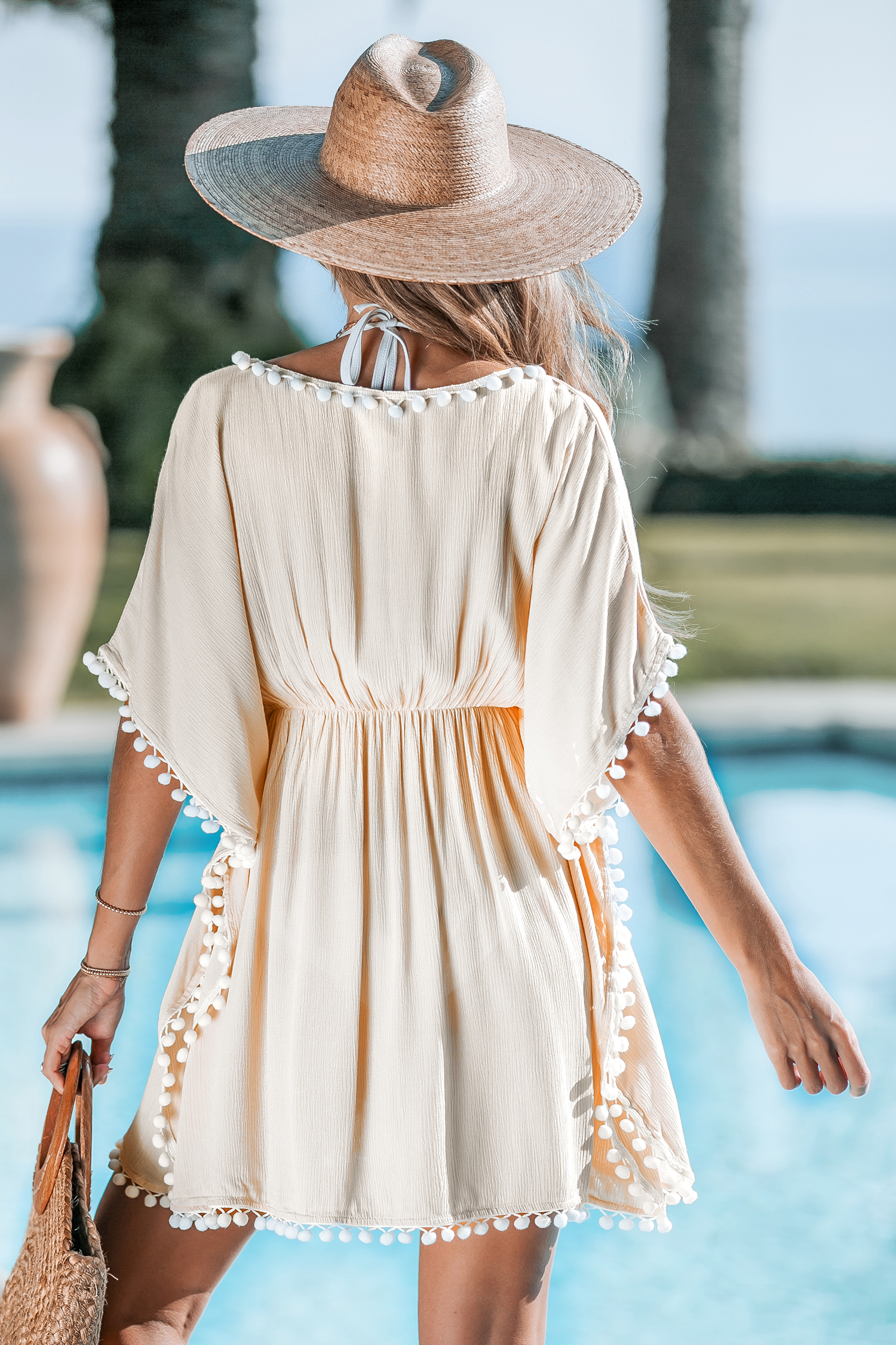 Apricot Dolman Sleeve & Pom-Pom Cover-Up Dress