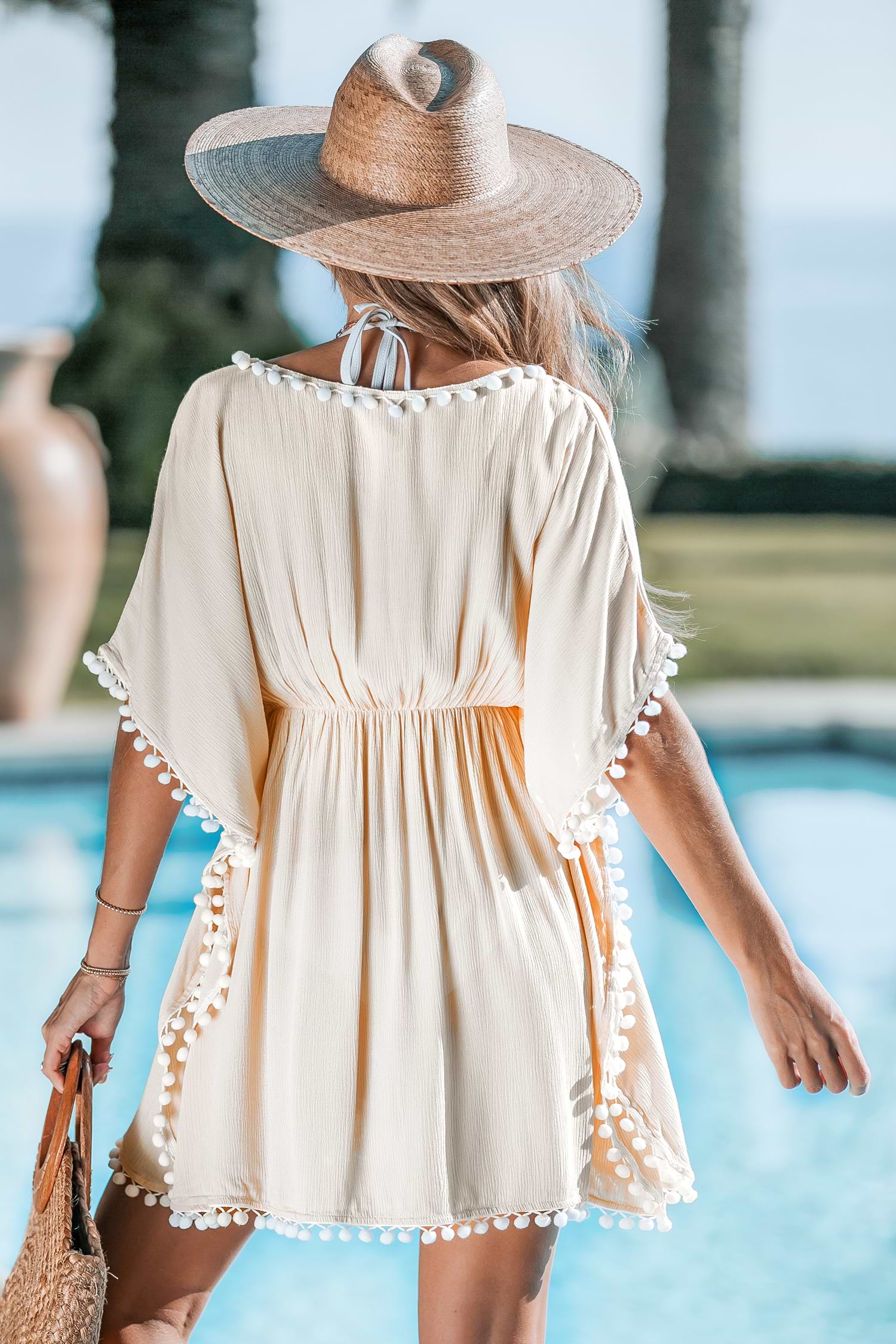 HomeApricot Dolman Sleeve & Pom-Pom Cover-Up Dress