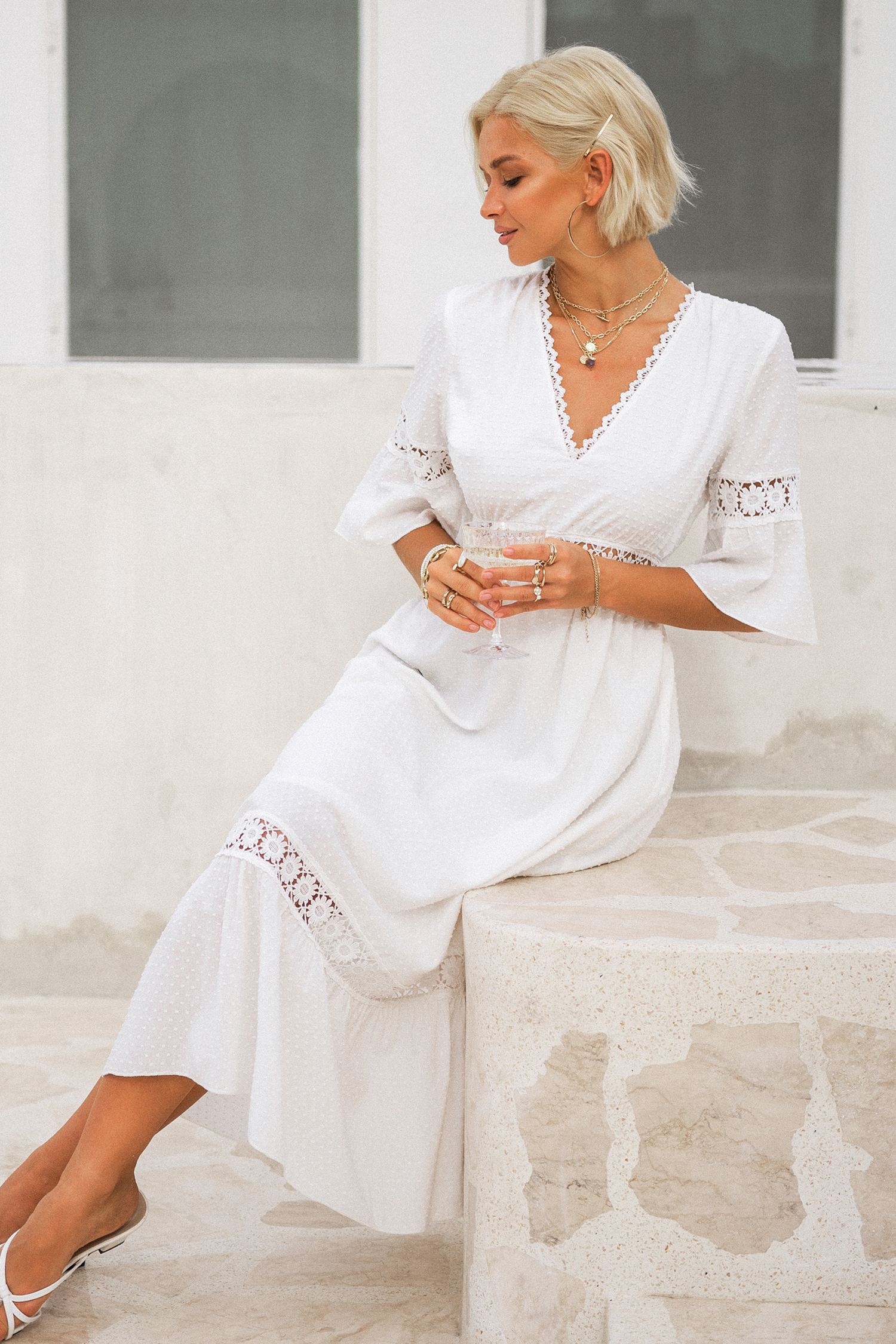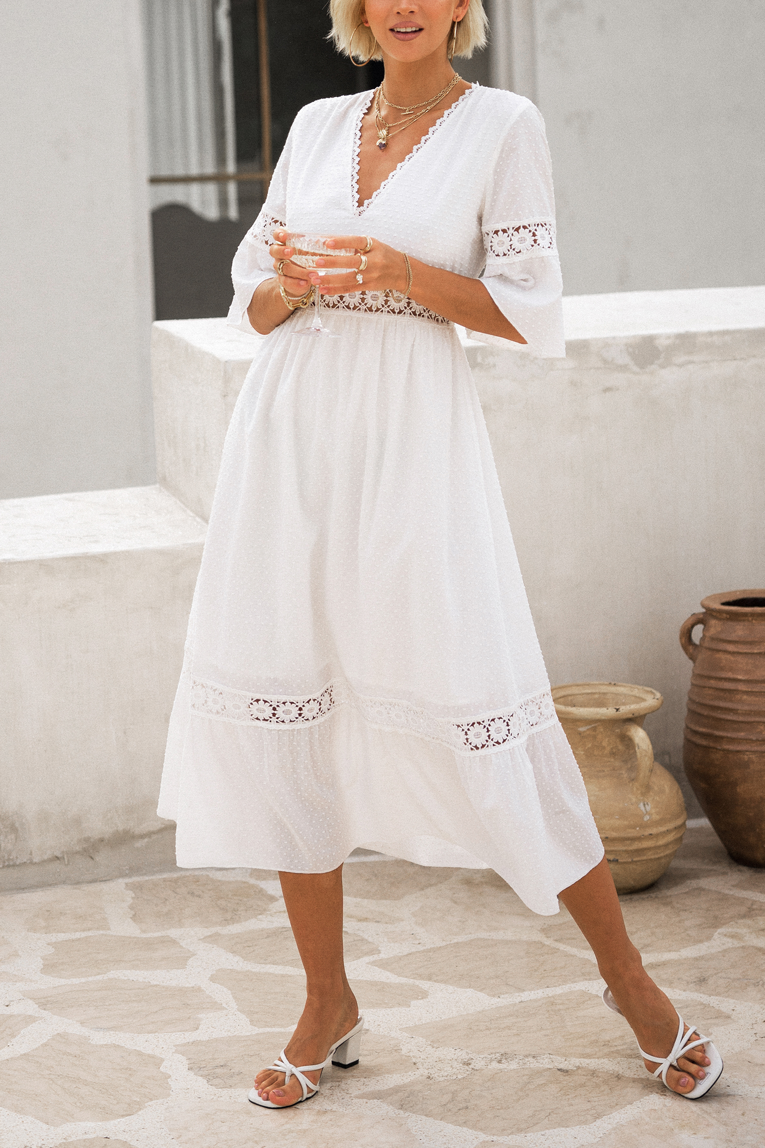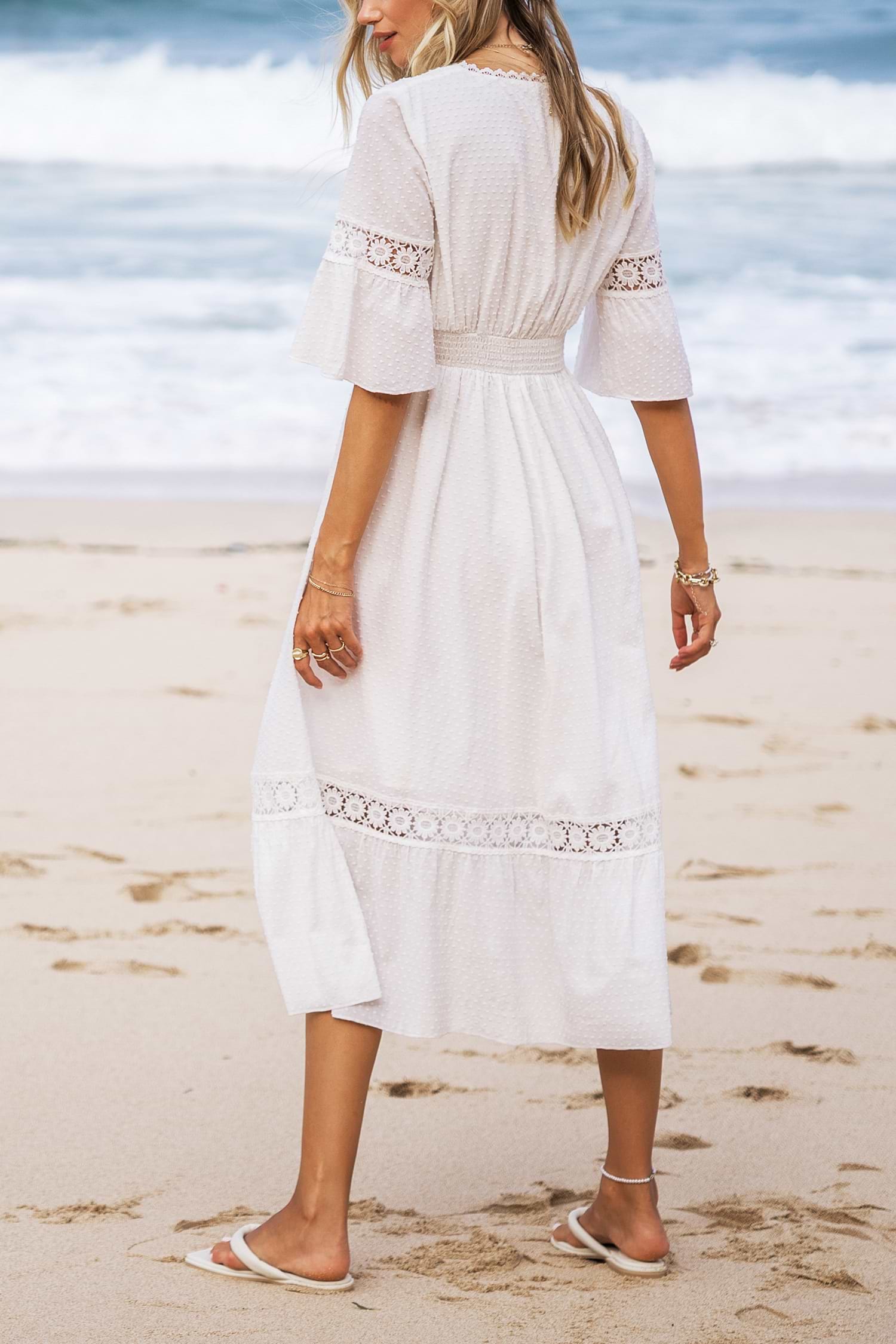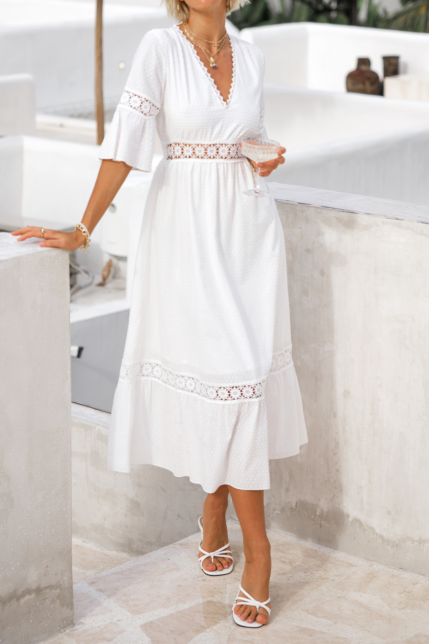 HomeAral Sea Clip Dot Floral Lace Maxi Dress