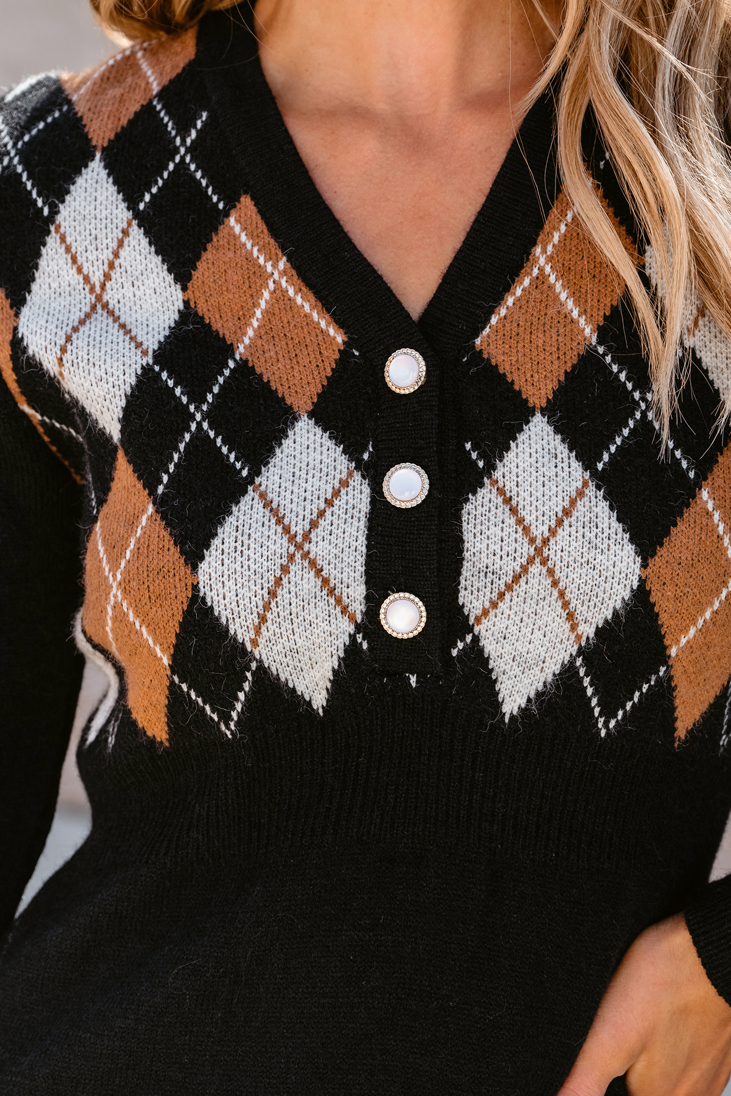HomeArgyle Faux Pearl Buttoned Sweater Dress