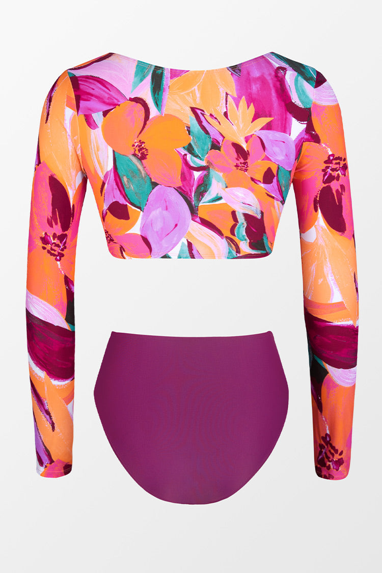 Artistic Flower Faux Wrap Long Sleeve And Classic High Waist Set