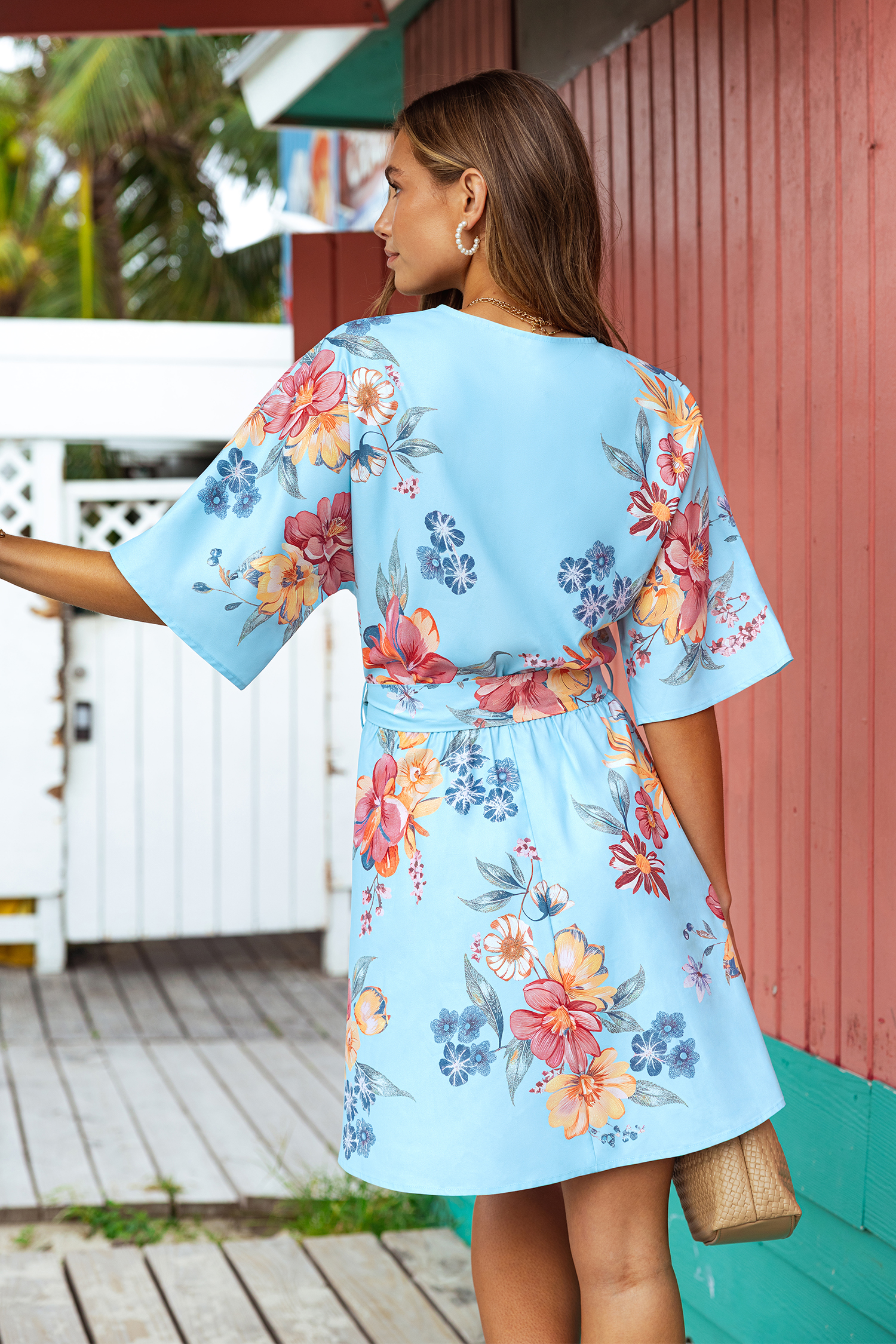 The Barefoot in Bimini Floral Mini Dress is made for easy, sunkissed days! The surplice neckline and half sleeves keep it comfortable, while the waist tie shapes the fit and the mini length keeps it playful.