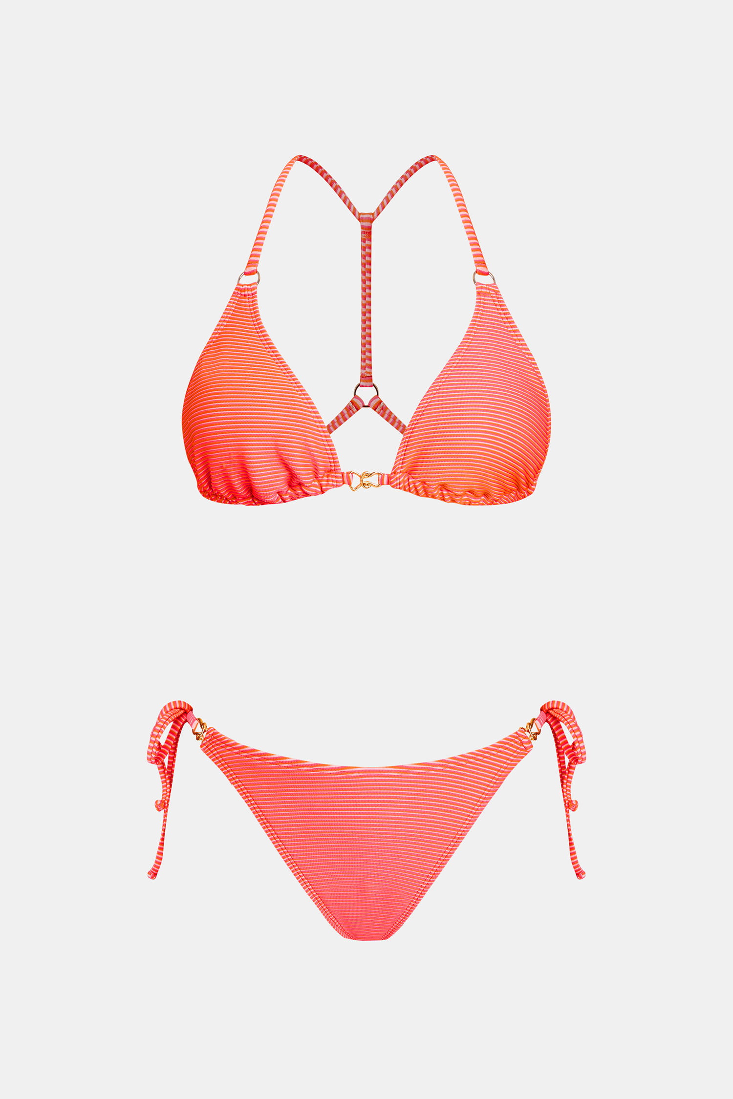 The Island Agenda Orange Bikini Set brings effortless, sunkissed energy! The diamond neckline with halter straps gives light bust support, while the low-rise fit and high-cut leg keep it playful, easy, and ready for any island adventure.