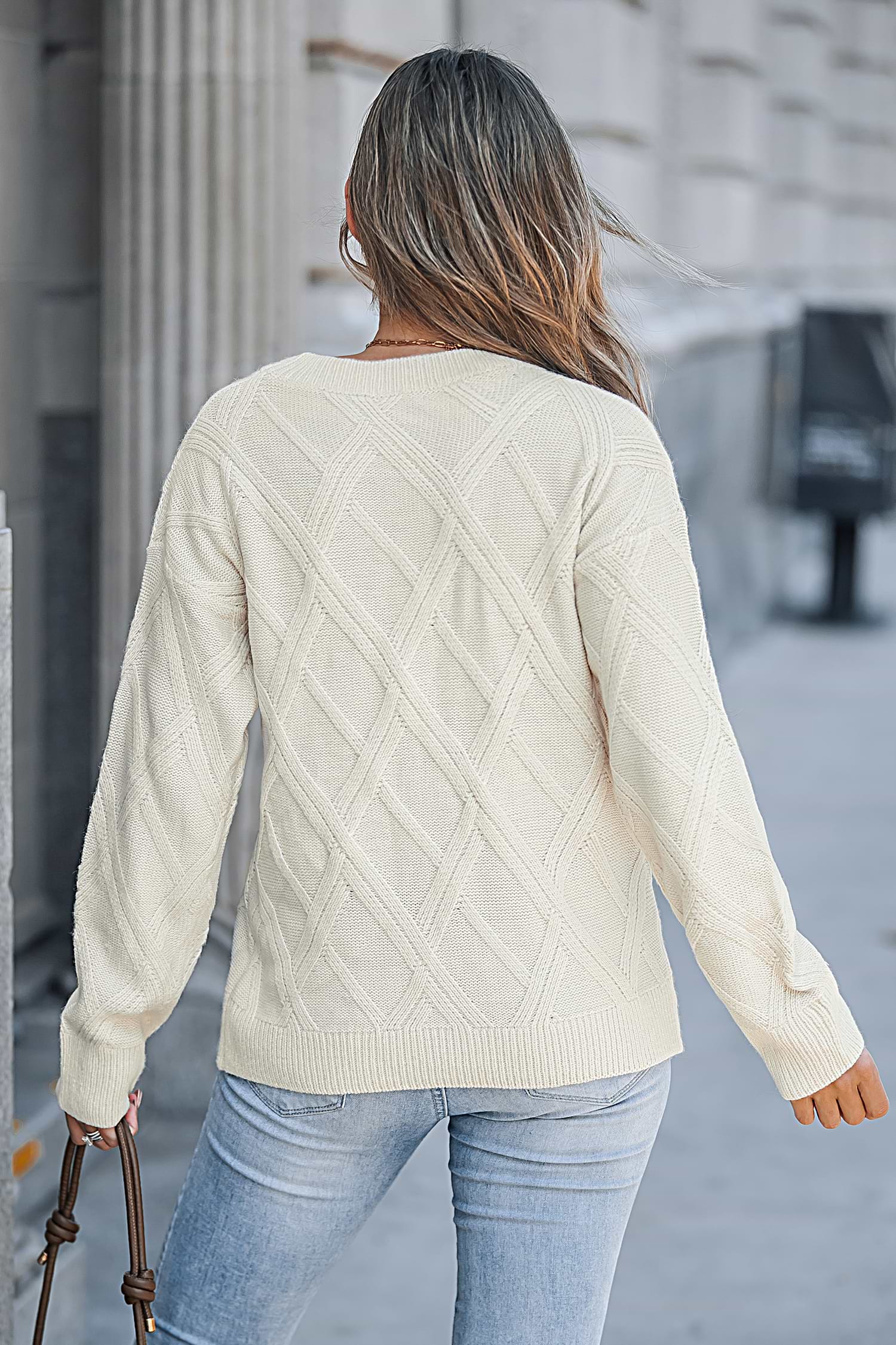 HomeBeige Geo Round Neck Long Sleeve Sweater