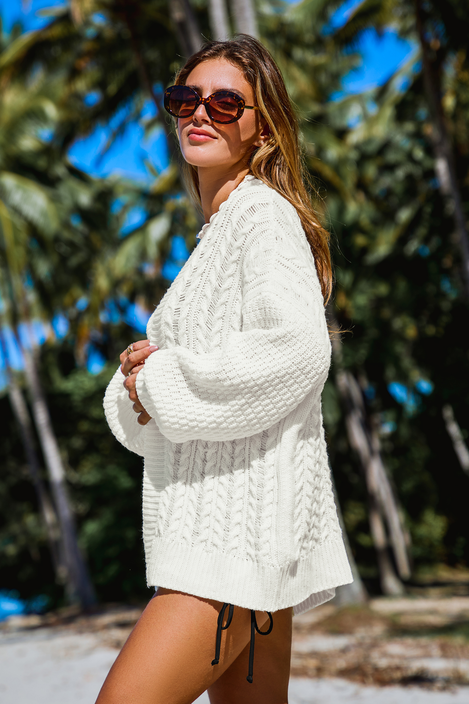 HomeBeige Open Front Blouson Sleeve Cardigan