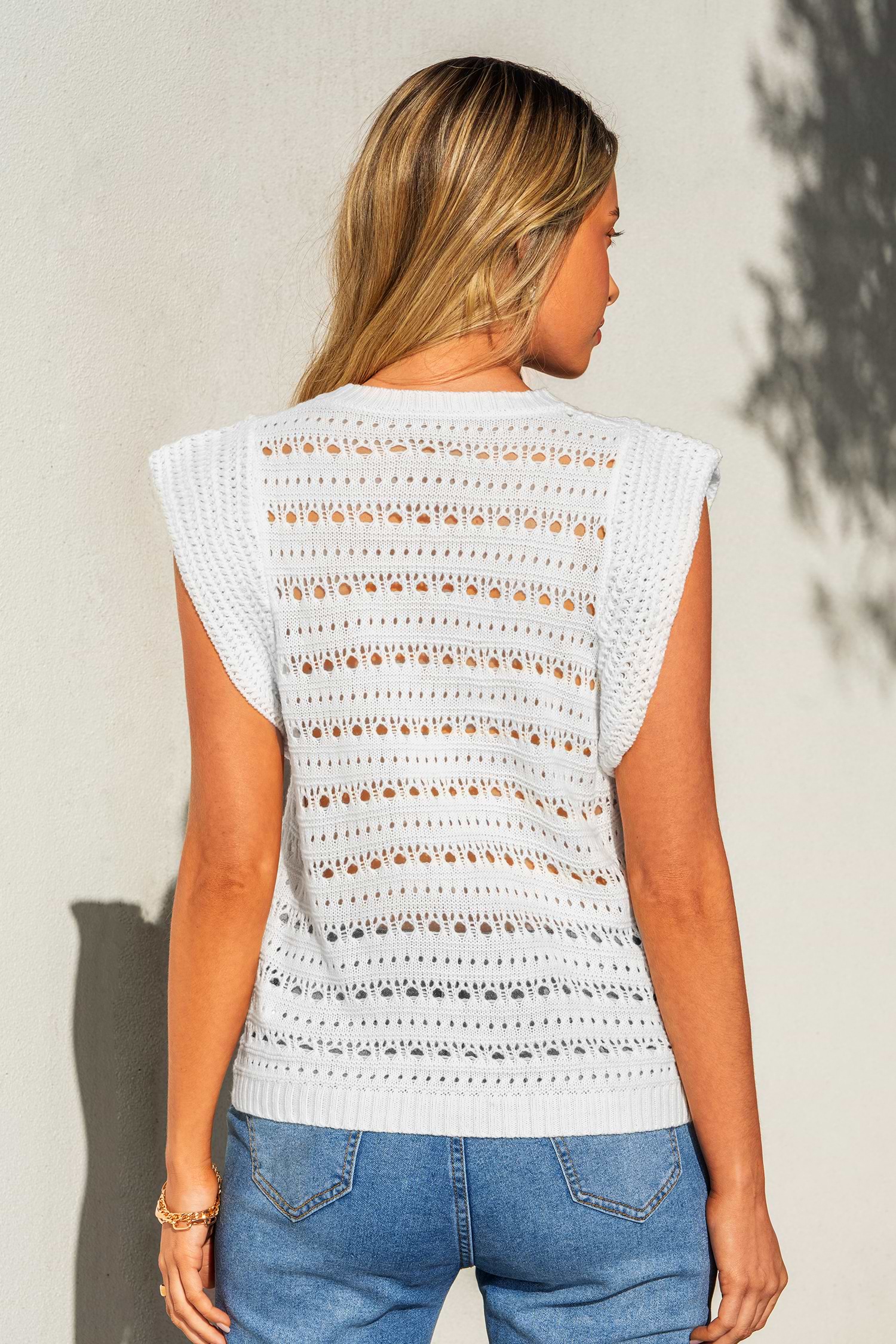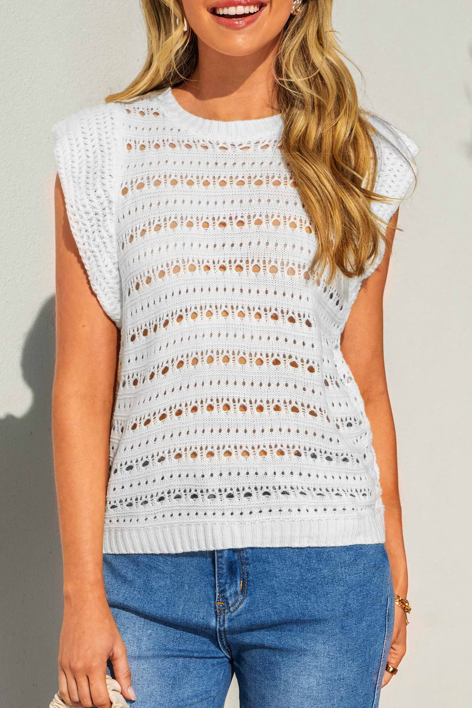 HomeBeige Round Neck Ruffled Sleeve Knit Top