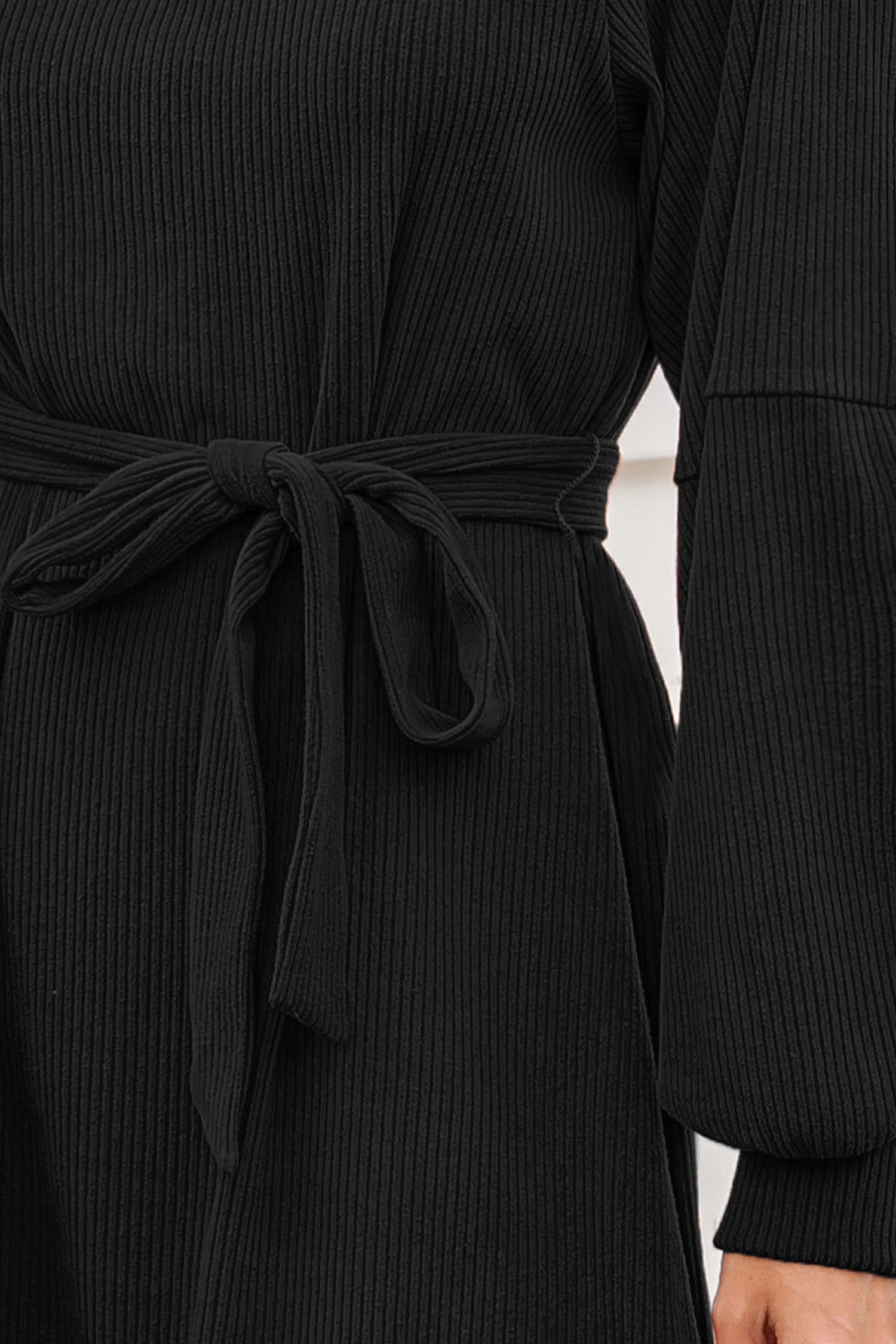 Belted Bishop Sleeve Mini Dress