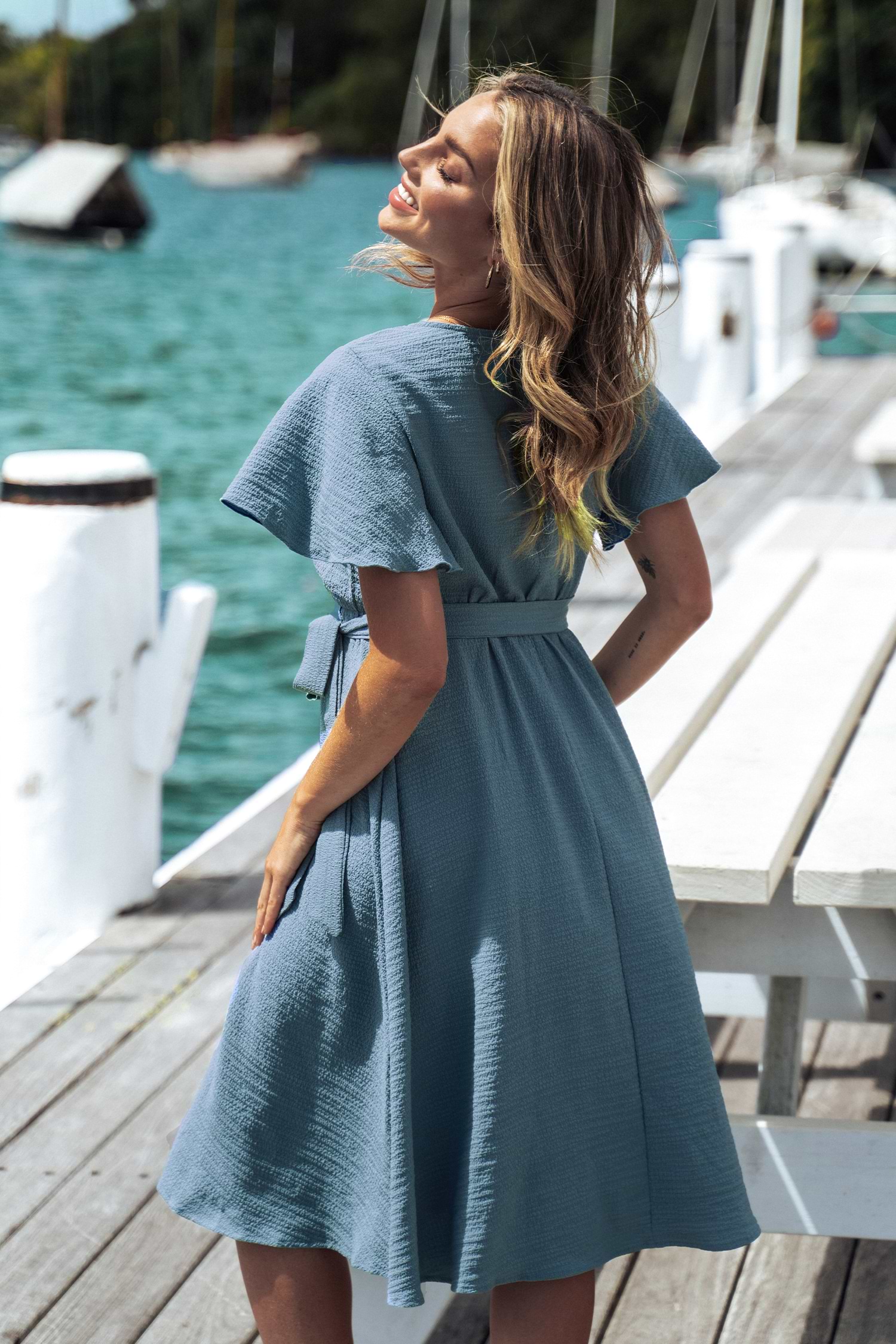 Belted Surplice Neck Midi Dress