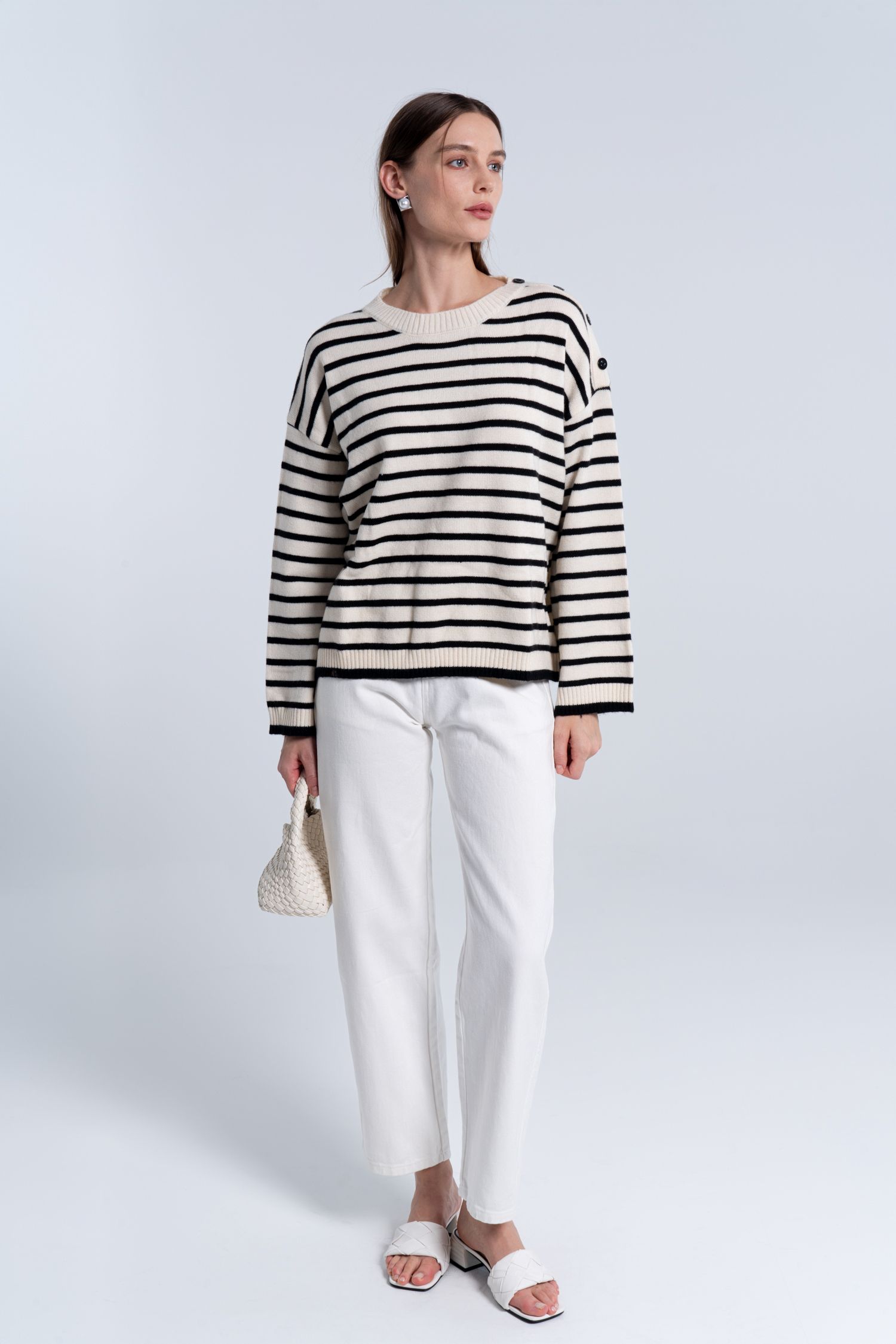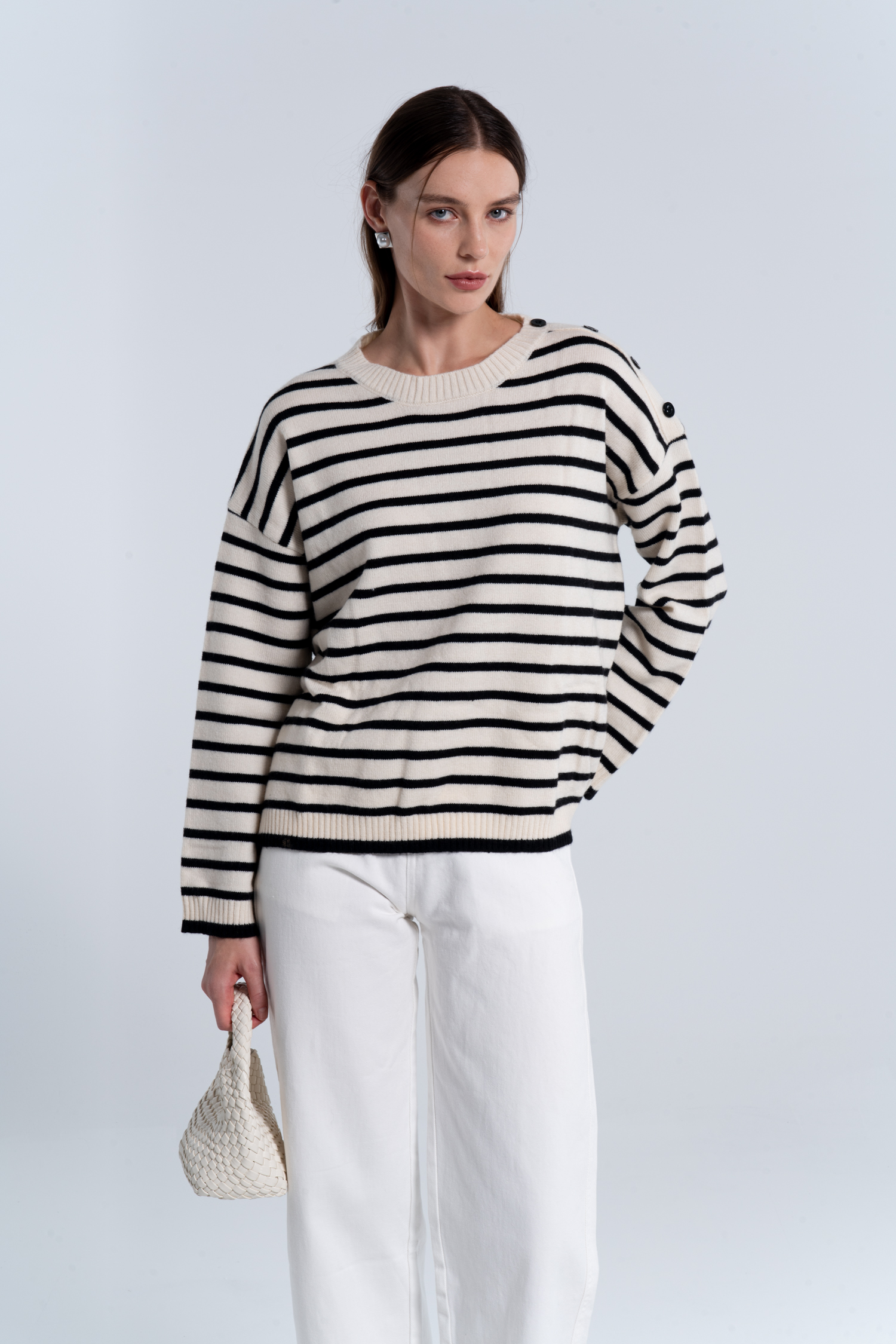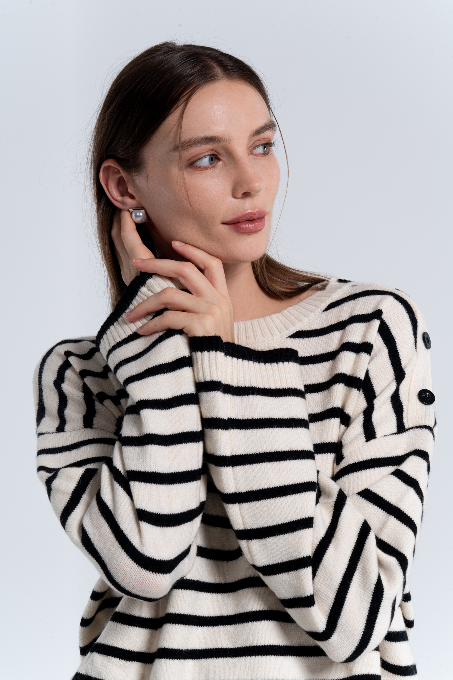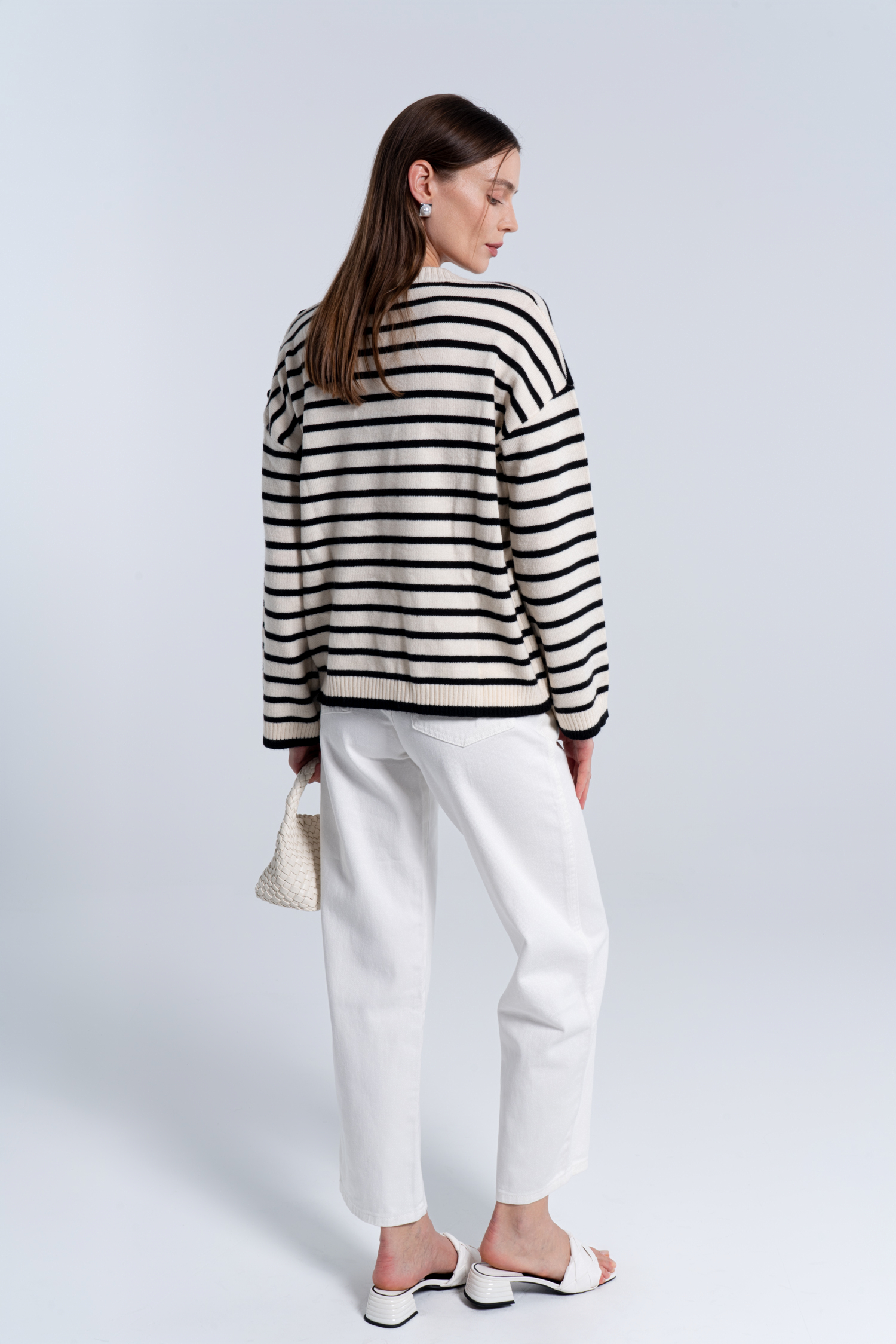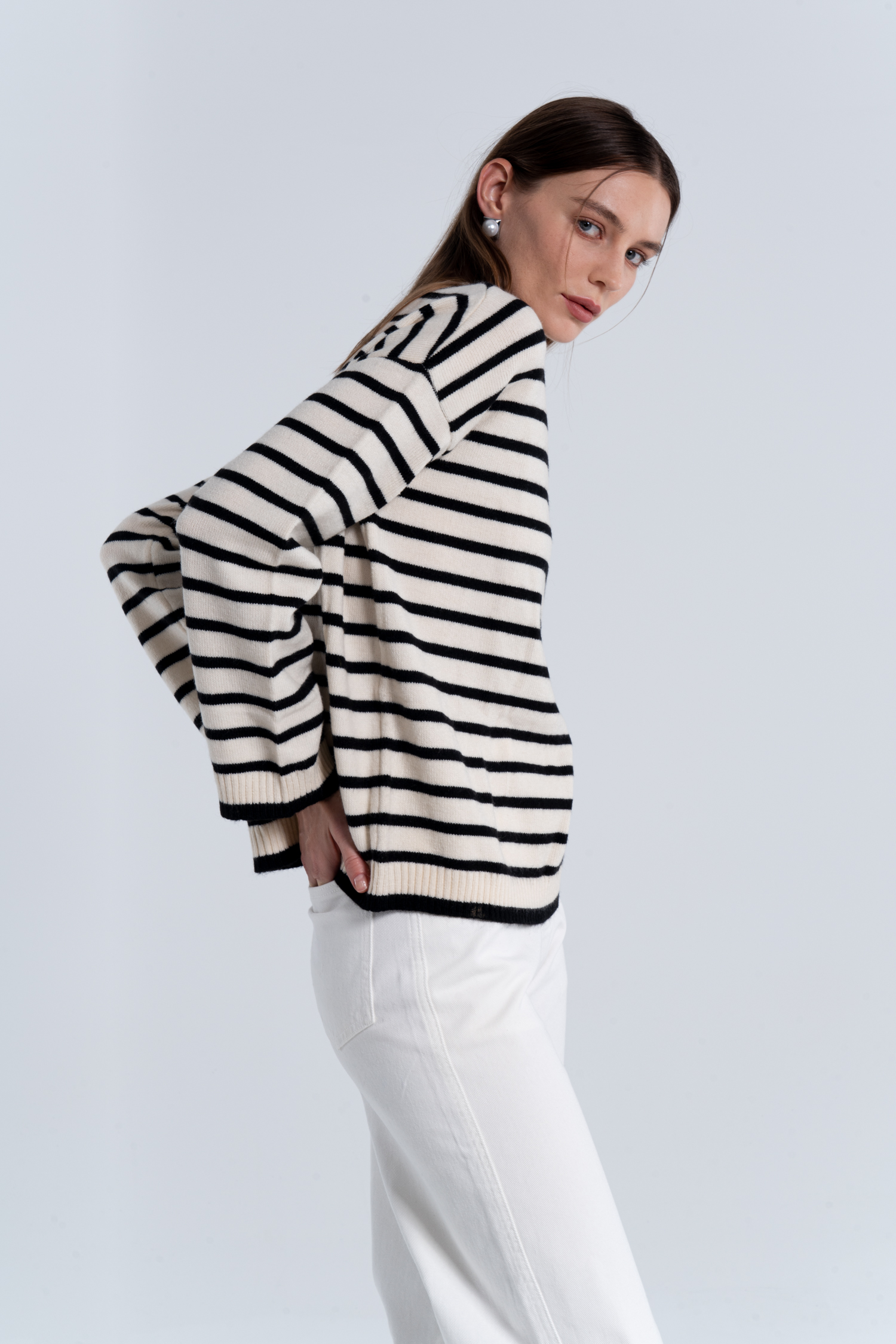 HomeBlack & Beige Stripe Long Sleeve Sweater