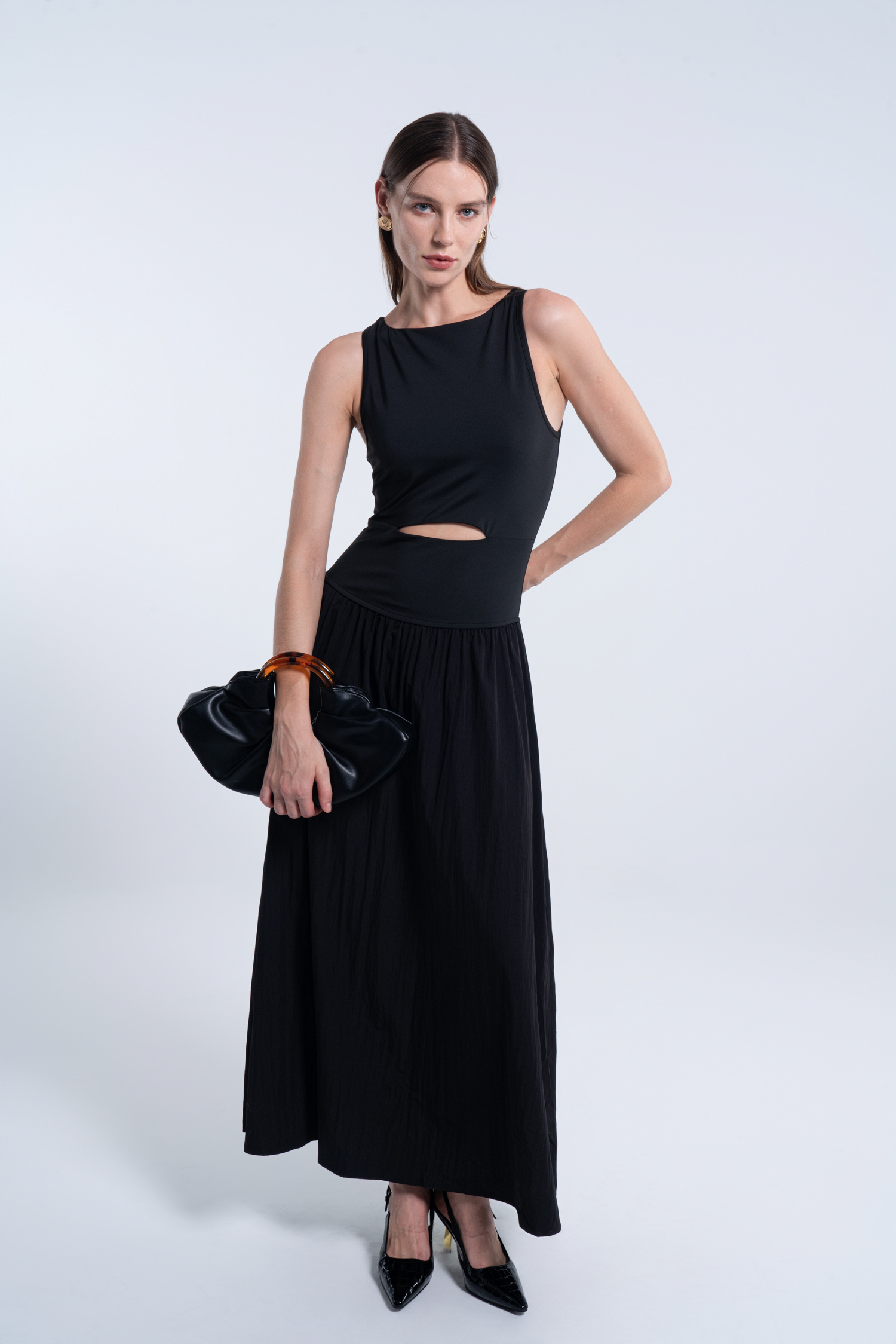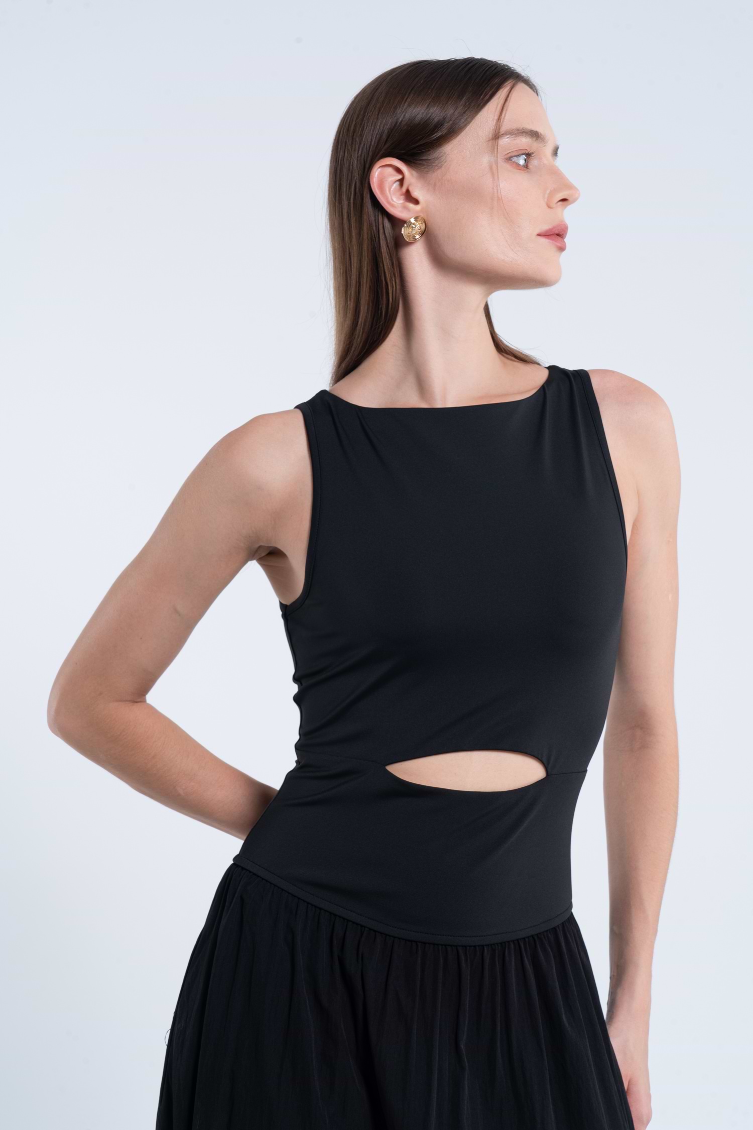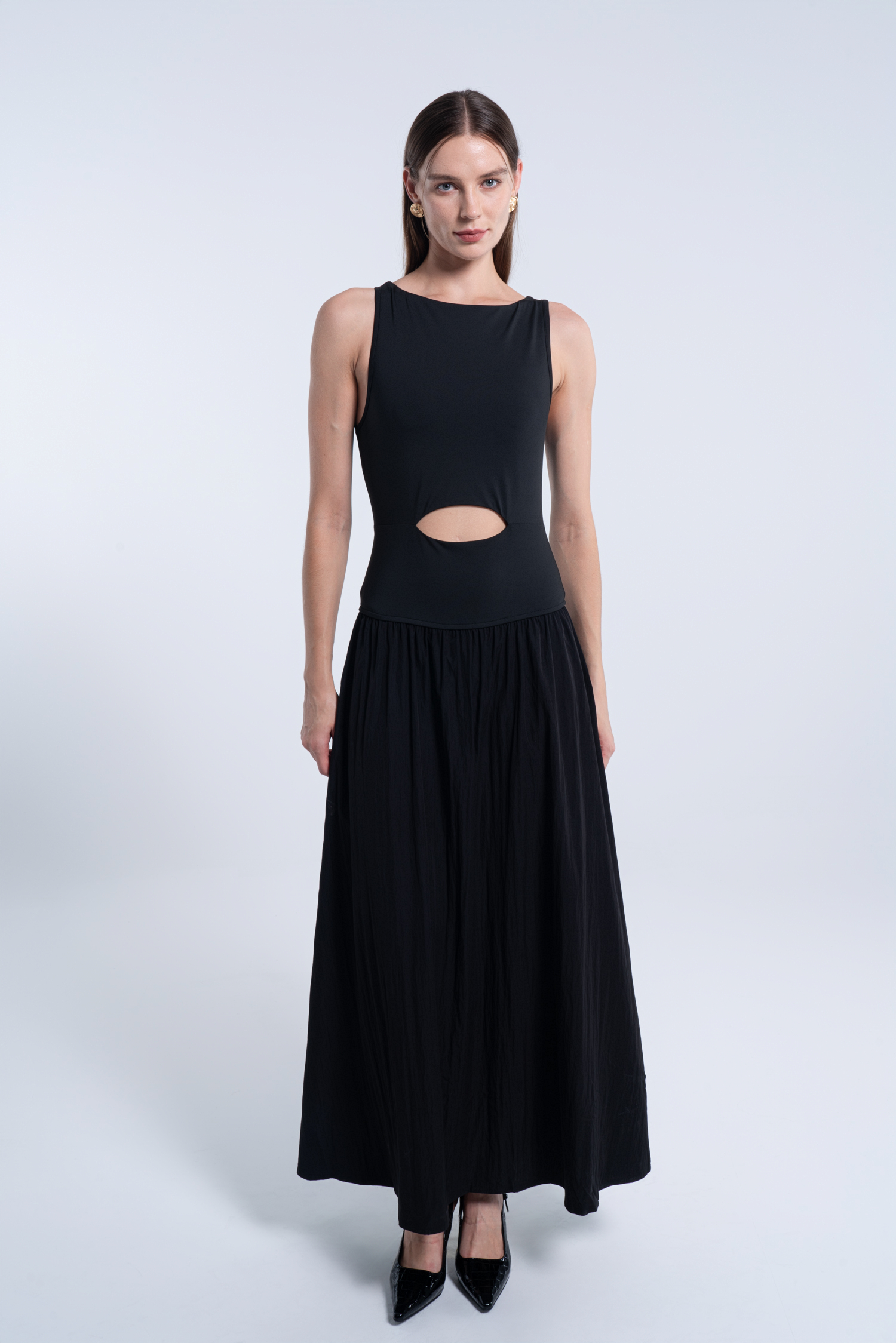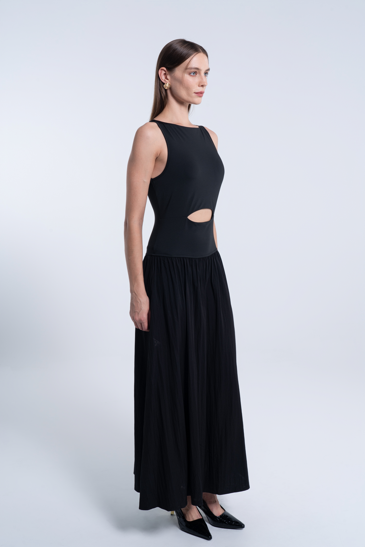 Black Boat Neck Sleeveless Cutout Maxi Dress
