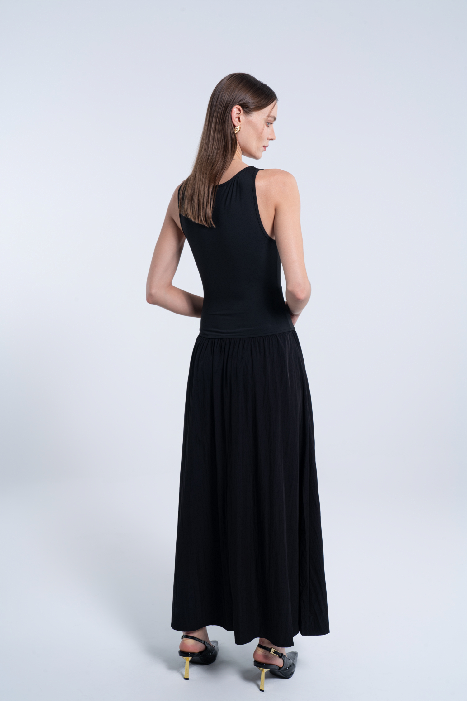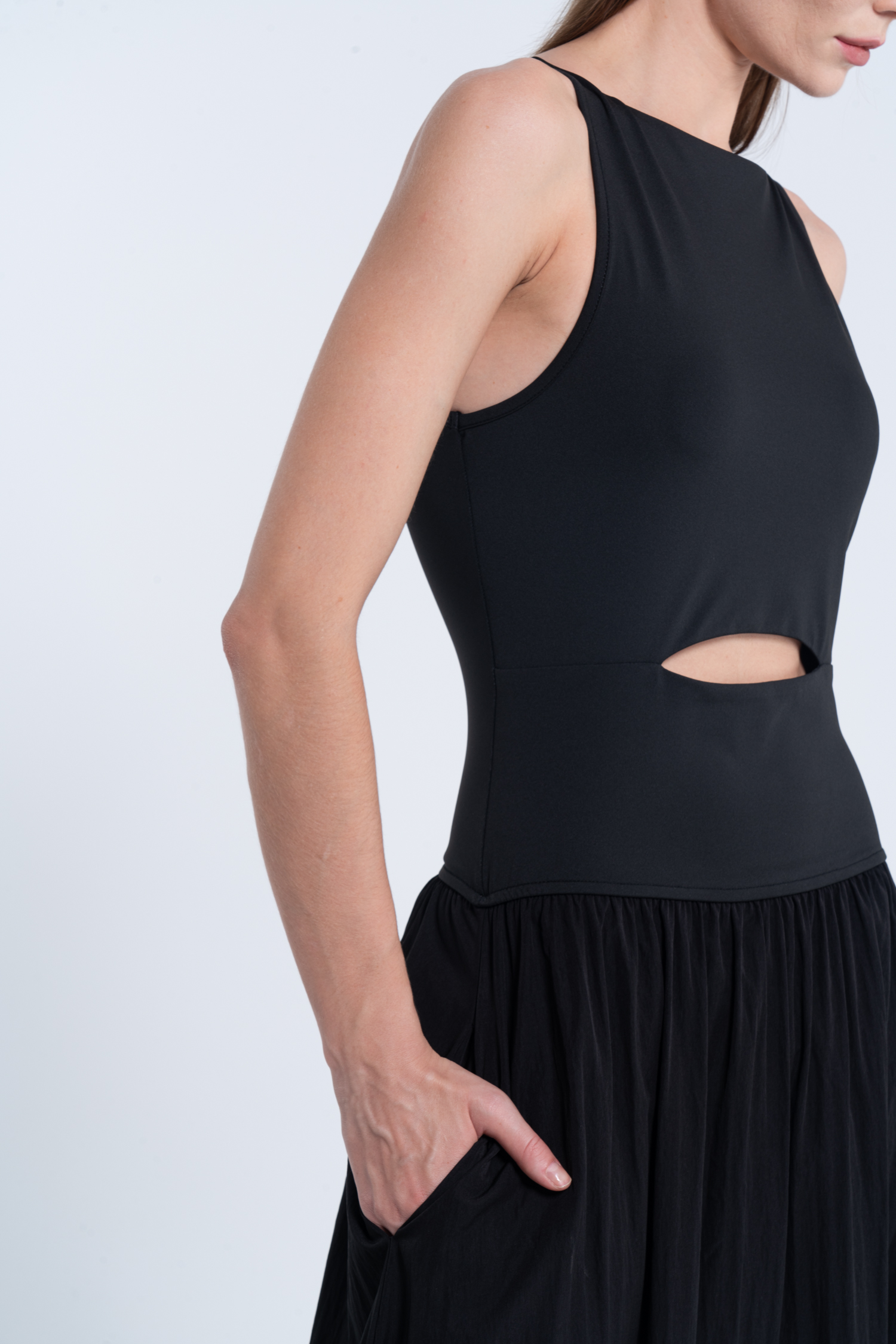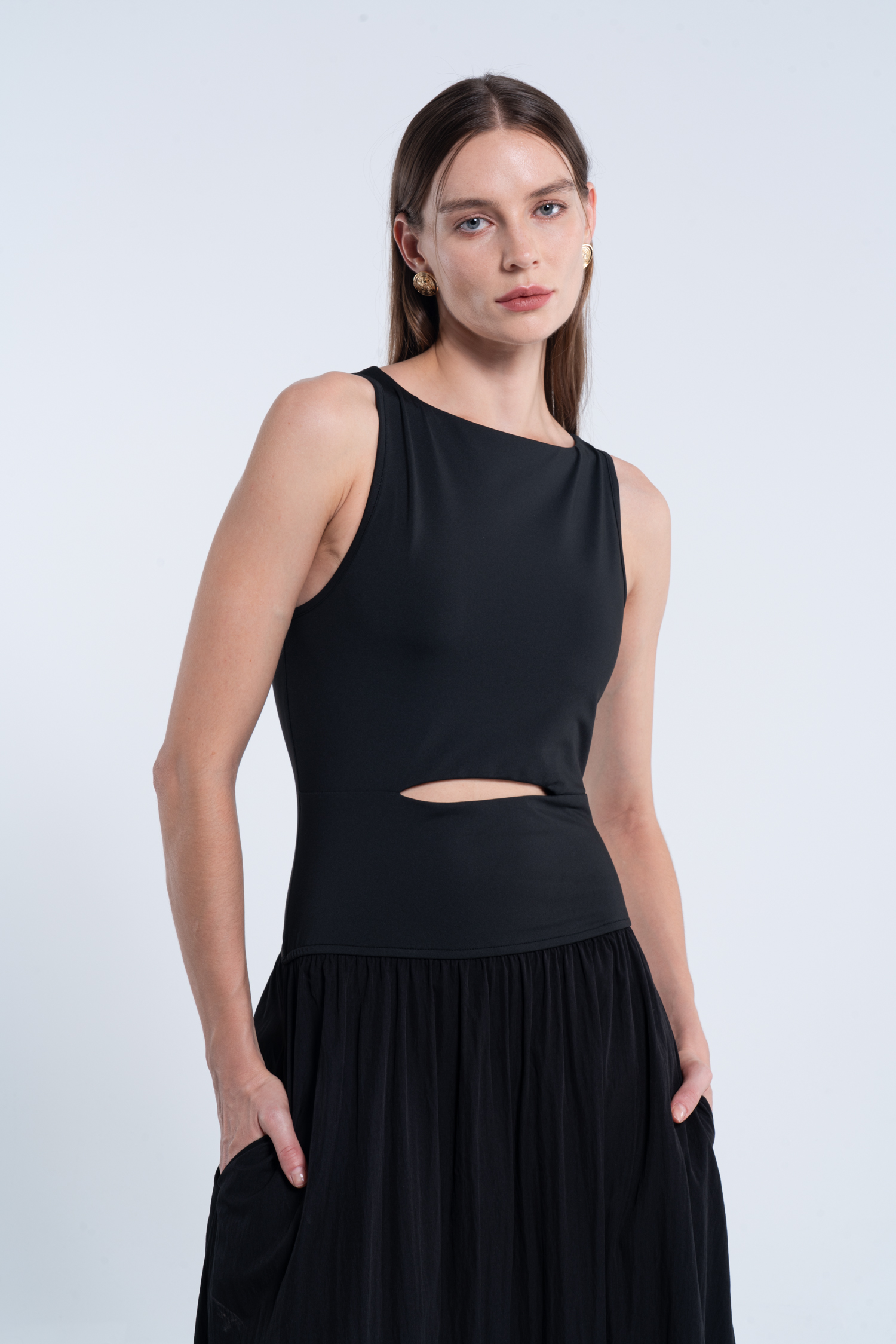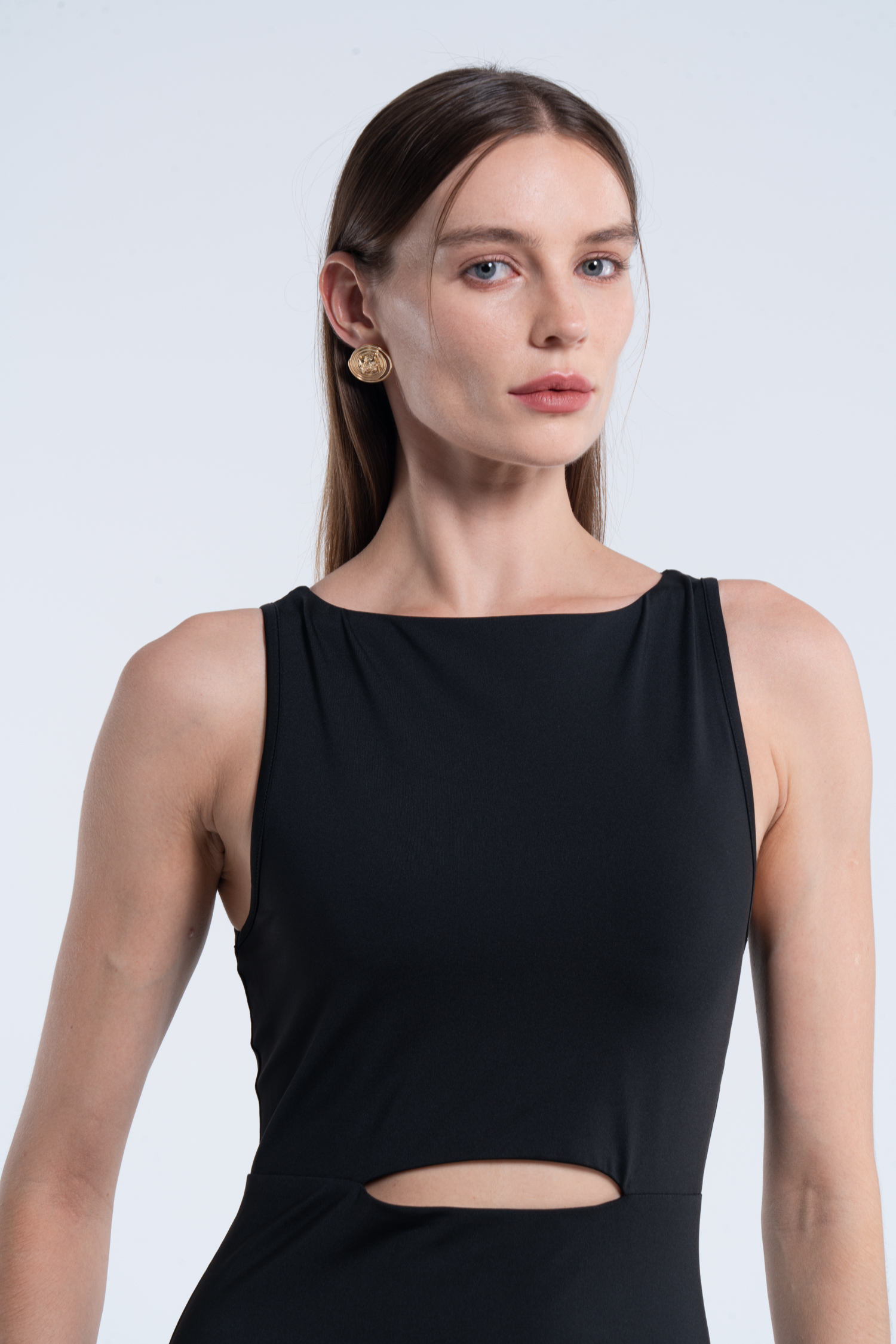 Black Boat Neck Sleeveless Cutout Maxi Dress