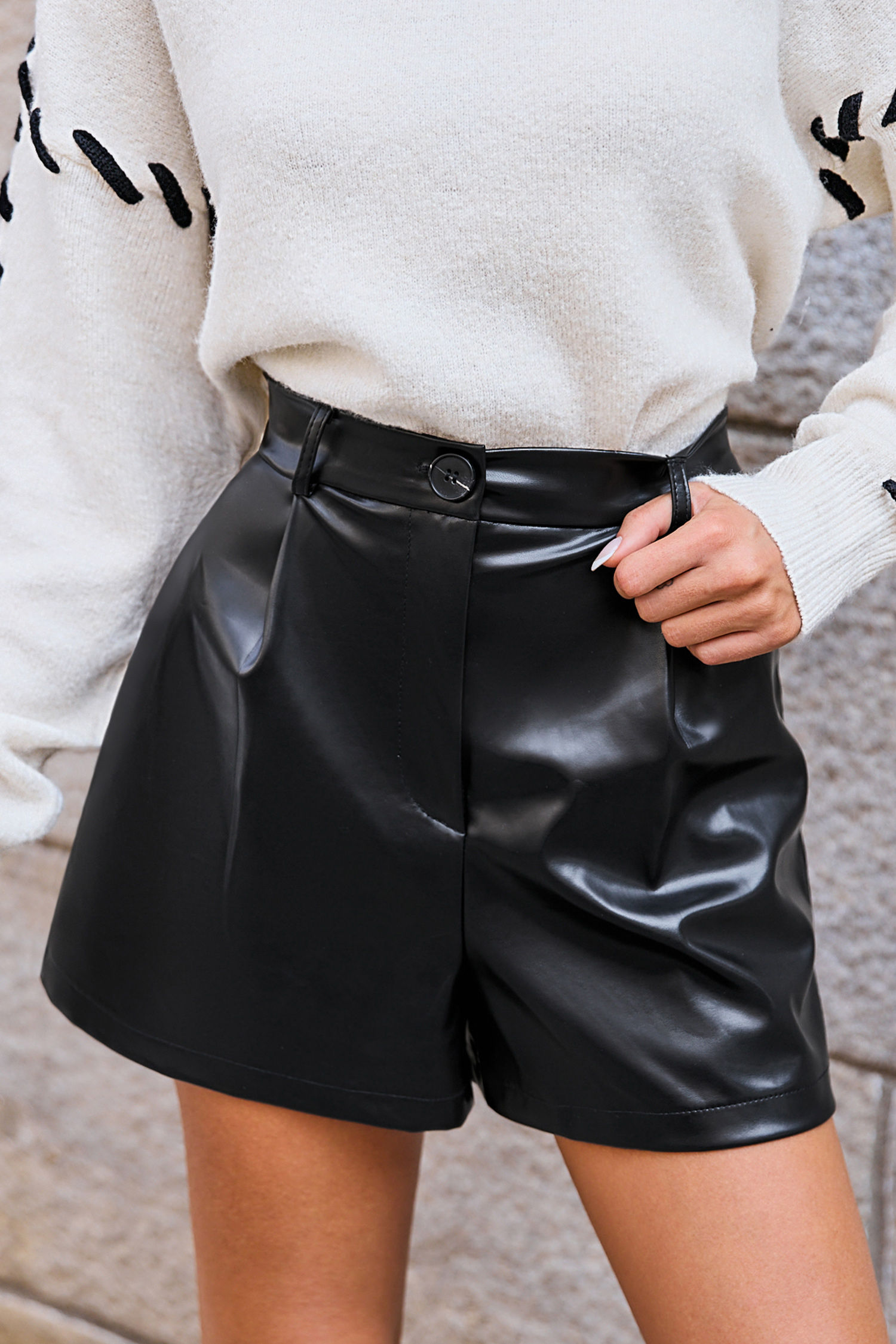 HomeBlack Faux Leather High-Rise Loose Leg Shorts