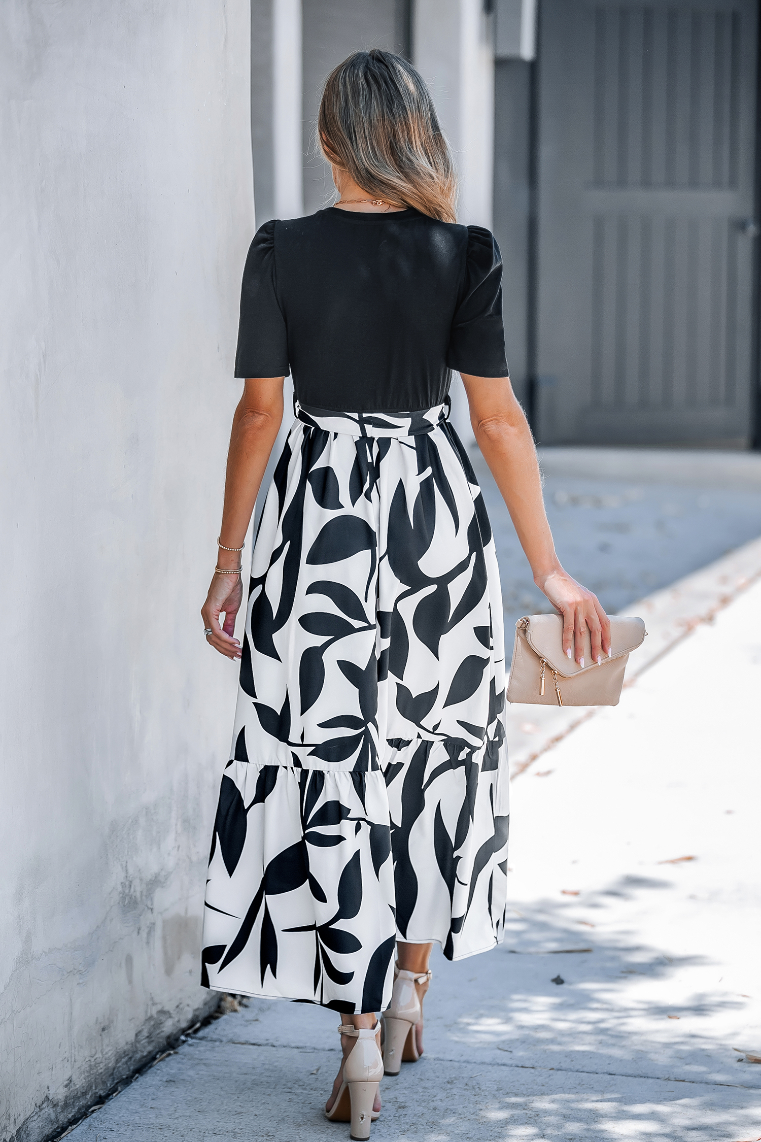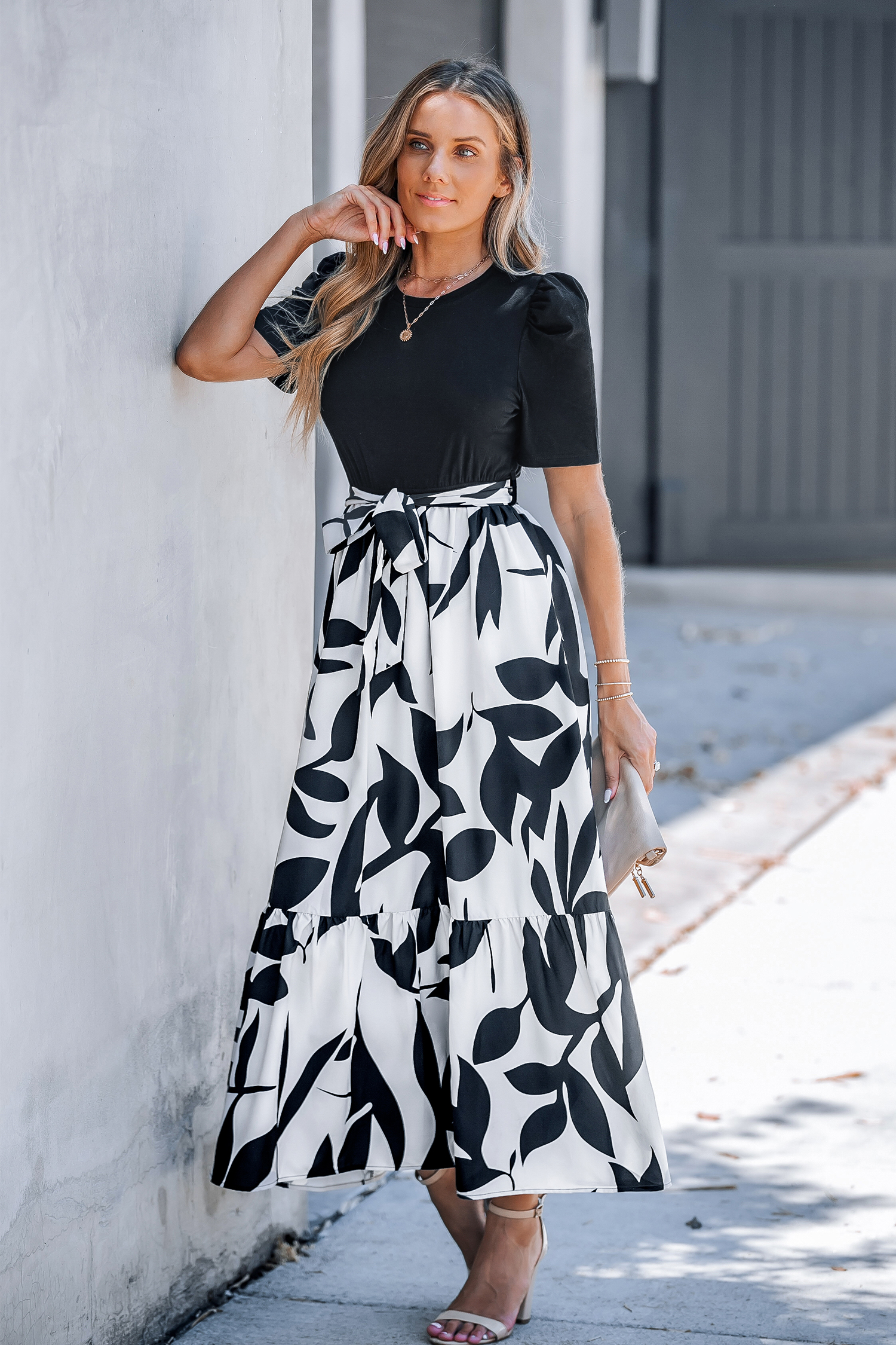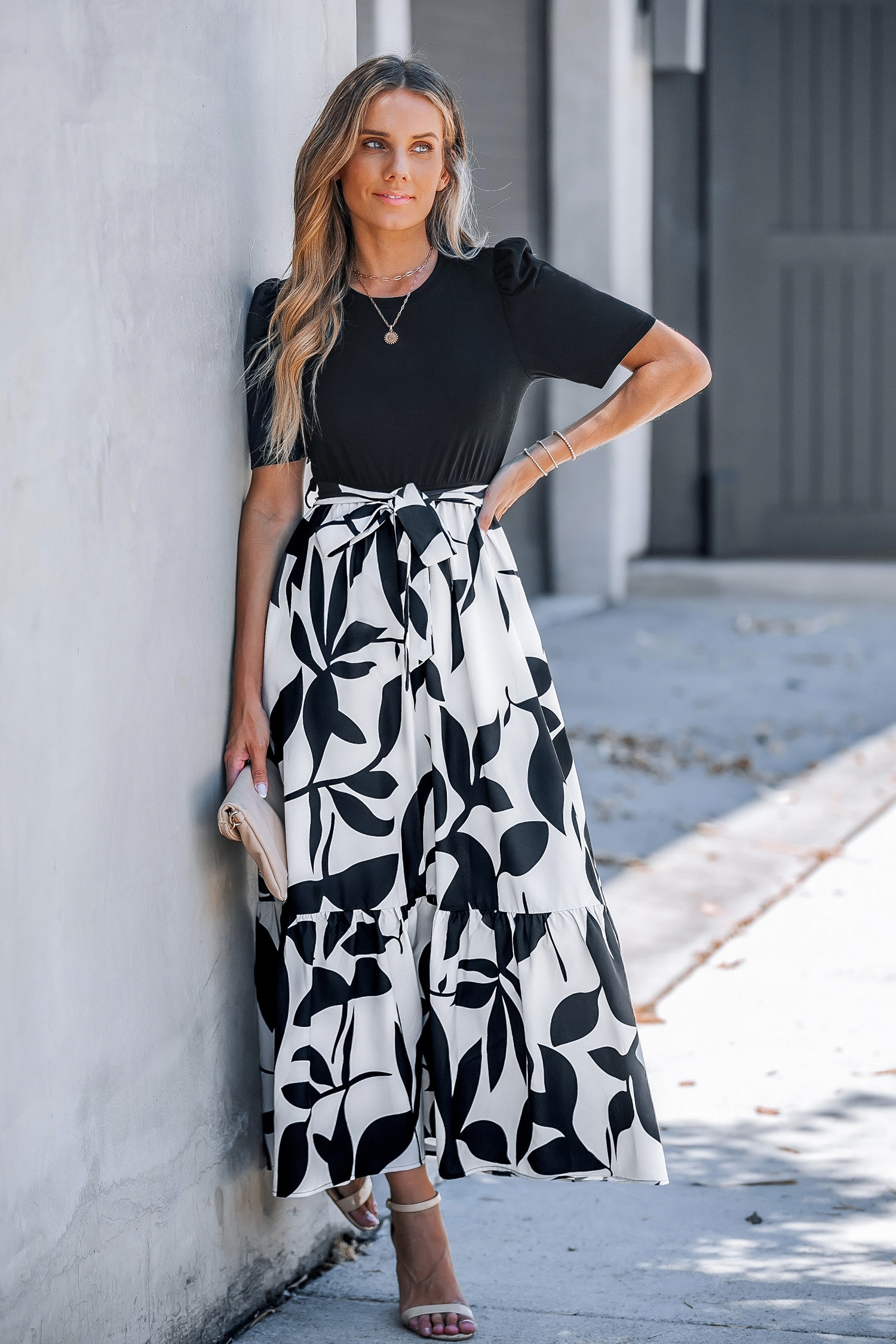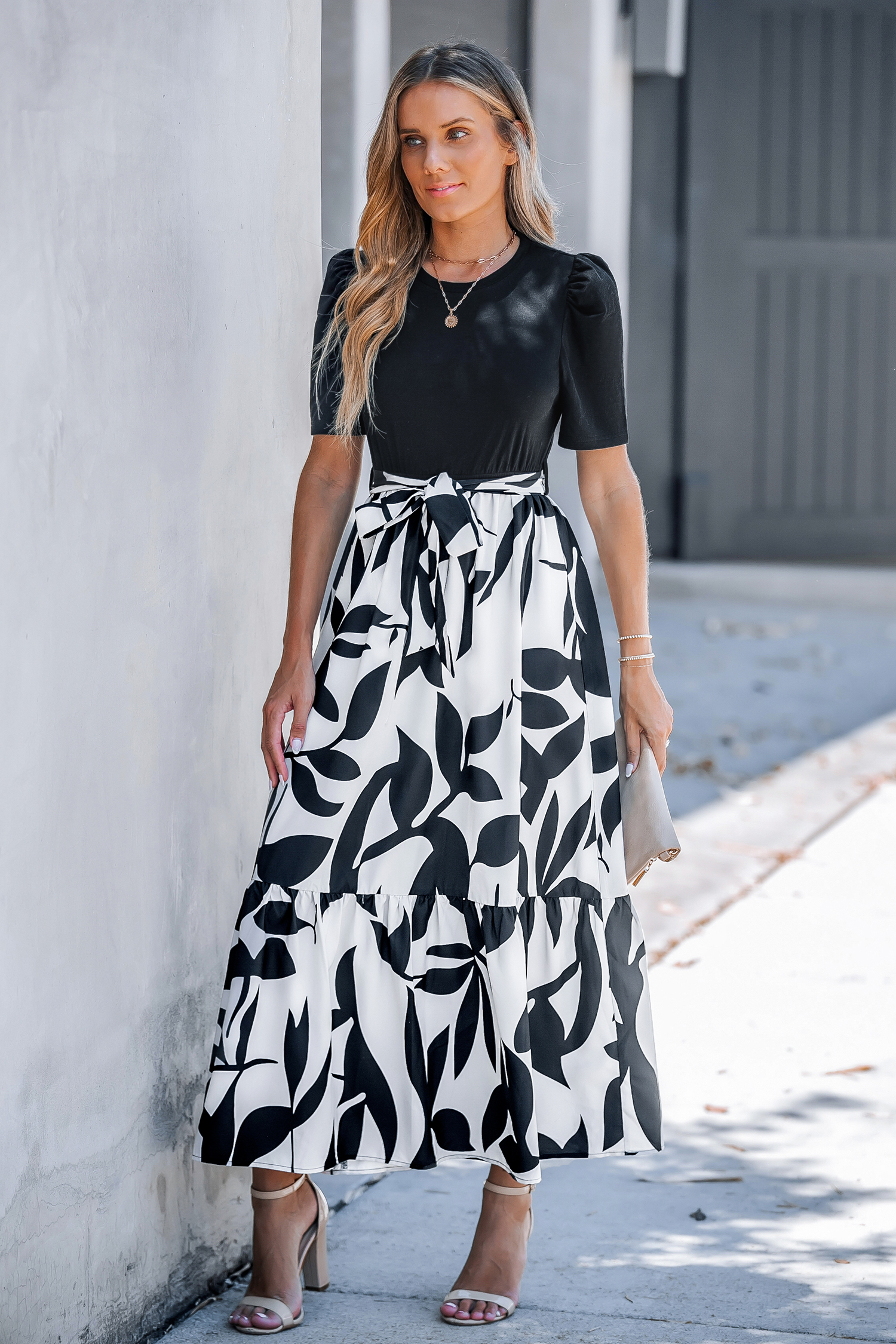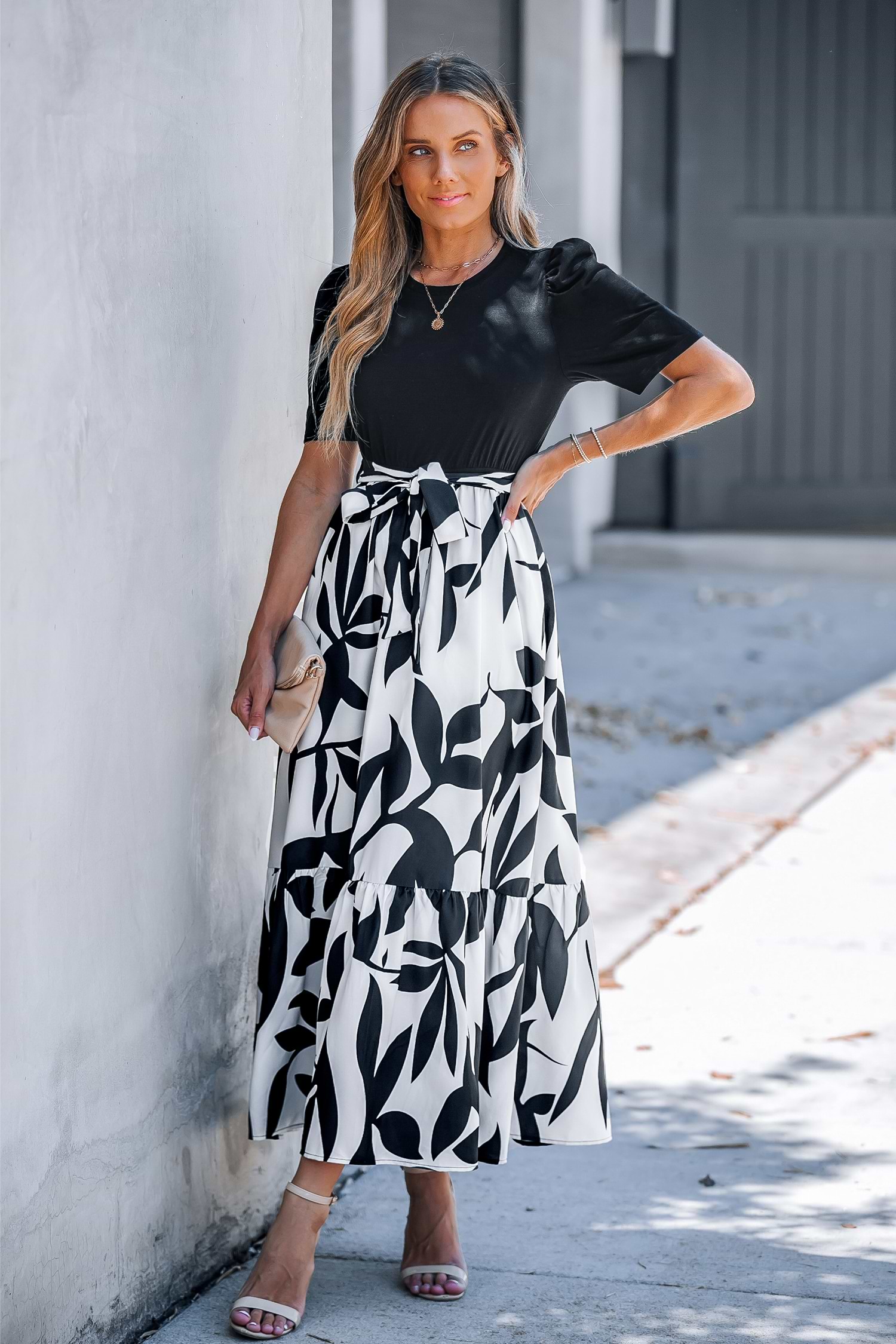 Black Half Sleeve Top Floral Skirt Midi Dress