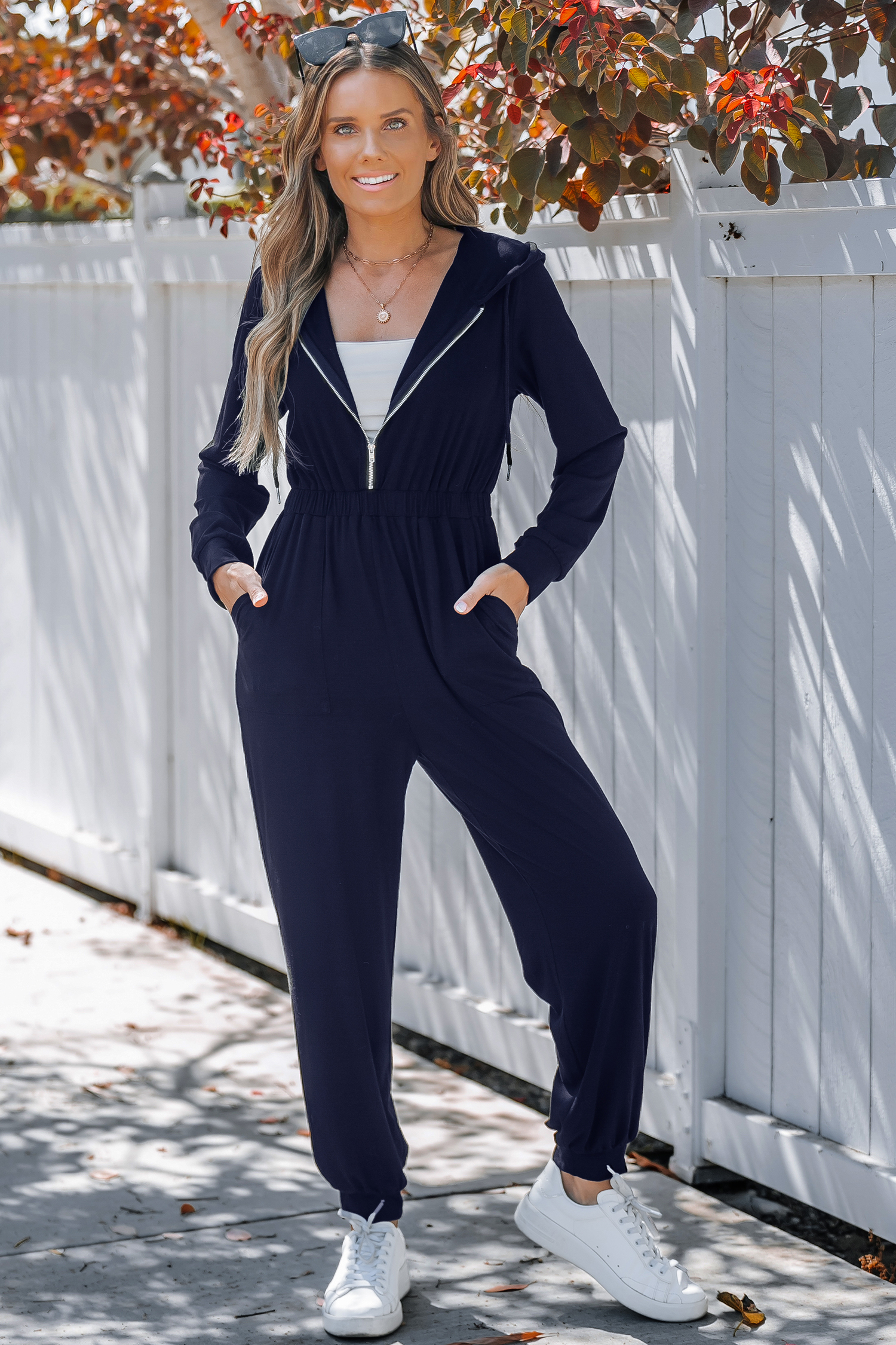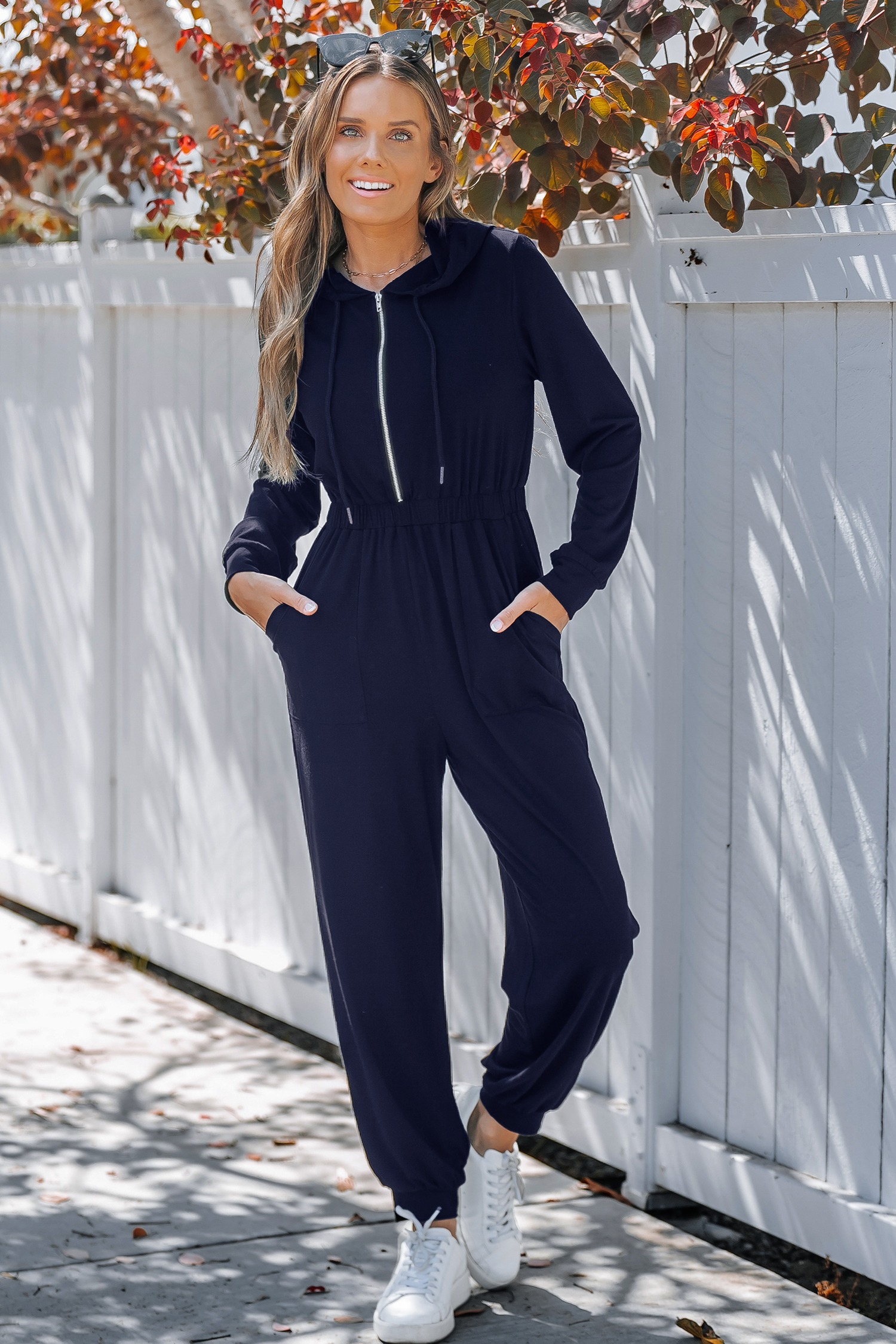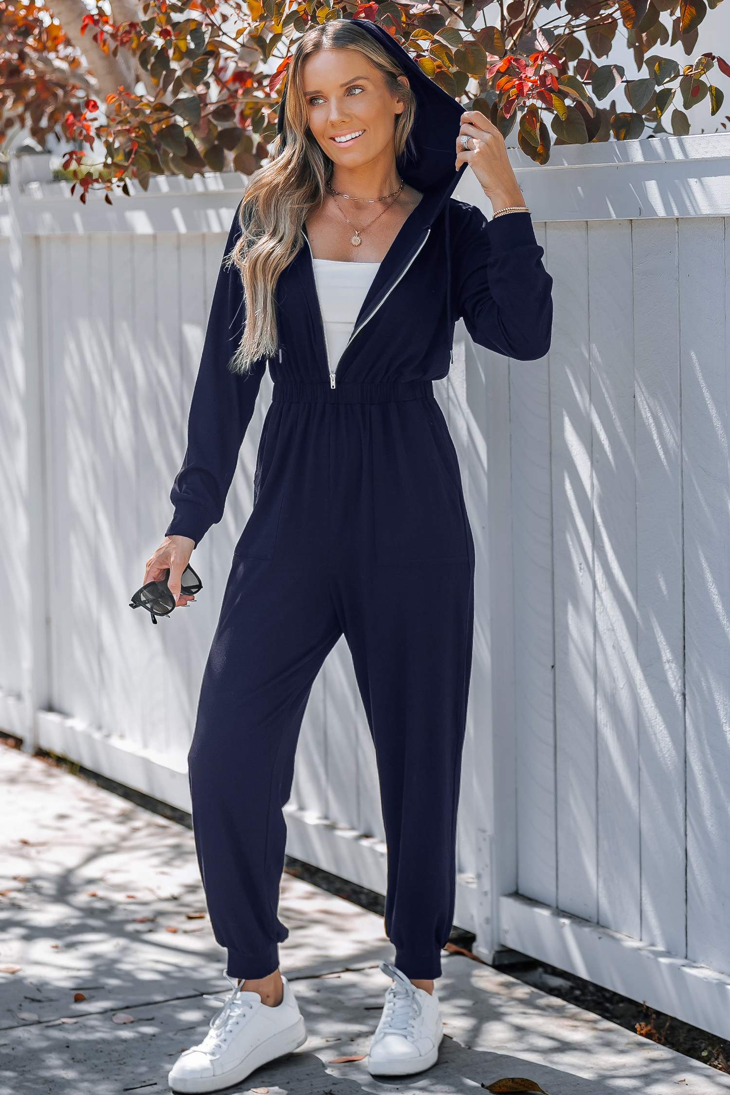 HomeBlue Hooded Long Sleeve Tapered Leg Jumpsuit