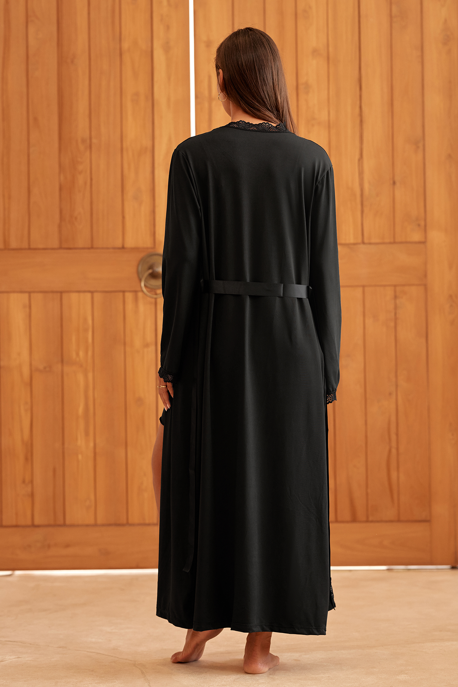 HomeBlack Lace Robe & Pajama Set