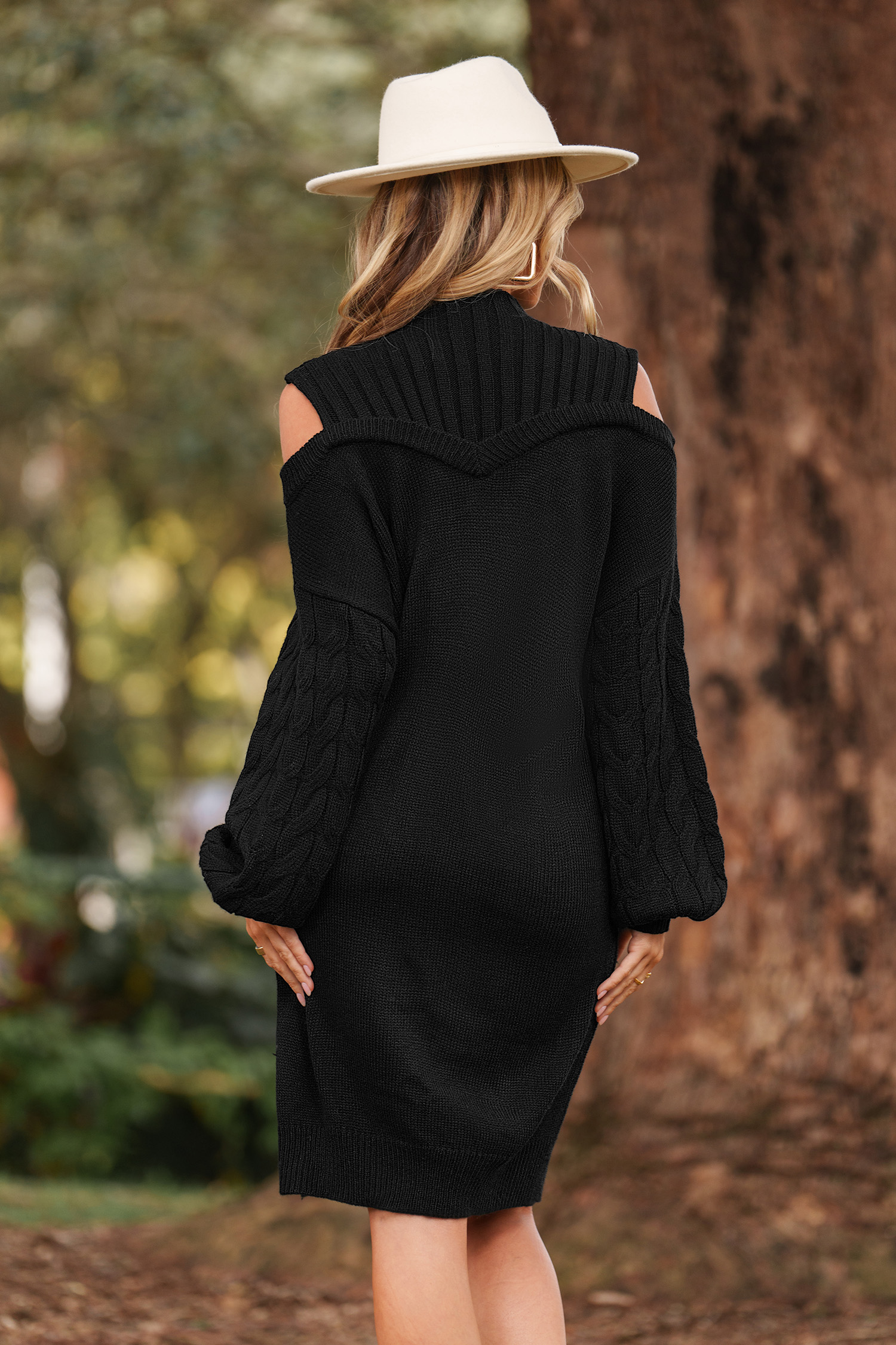 Black Mockneck Cutout Shoulder Mini Sweater Dress