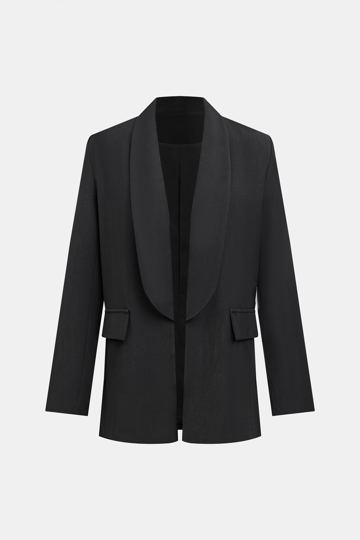 Black Open Front Long Sleeve Blazer