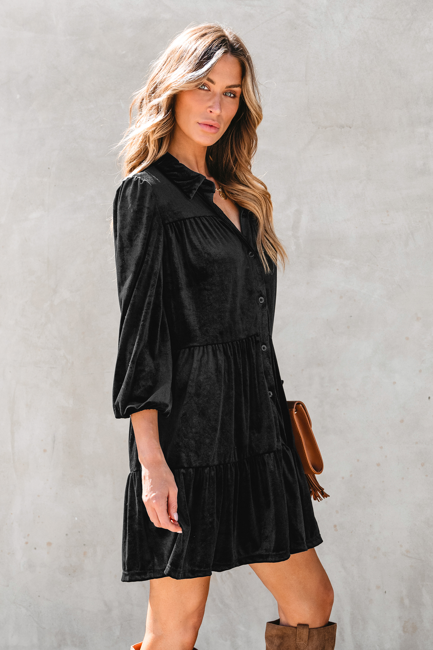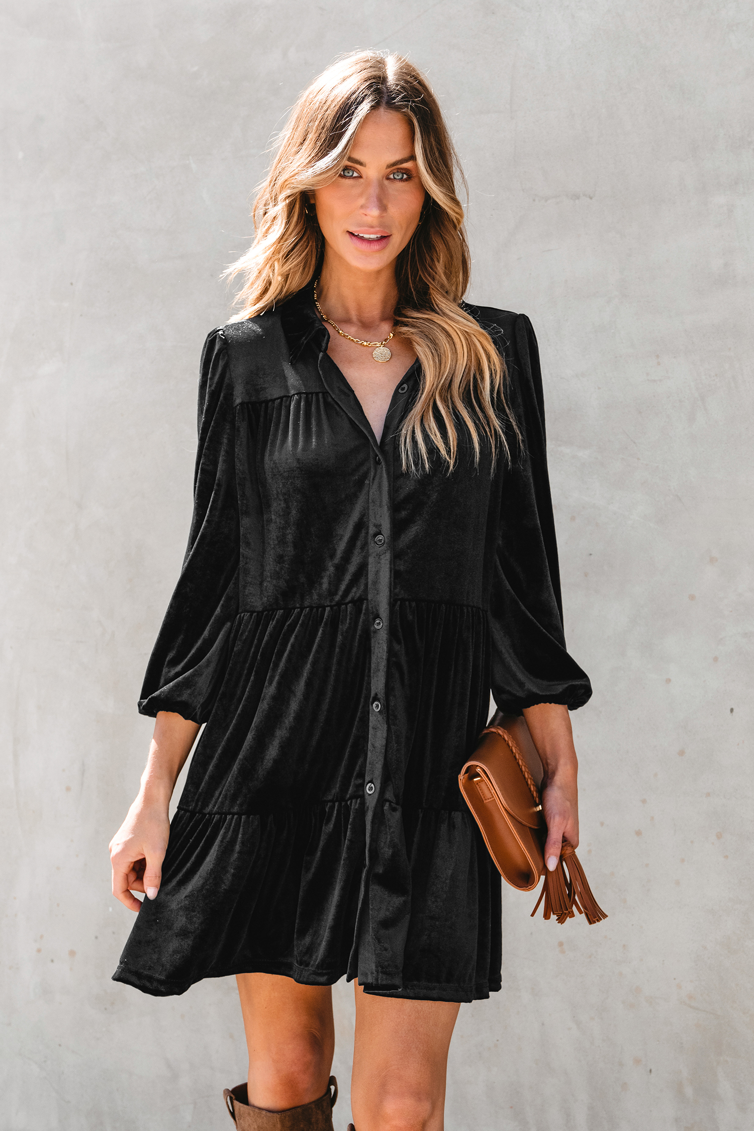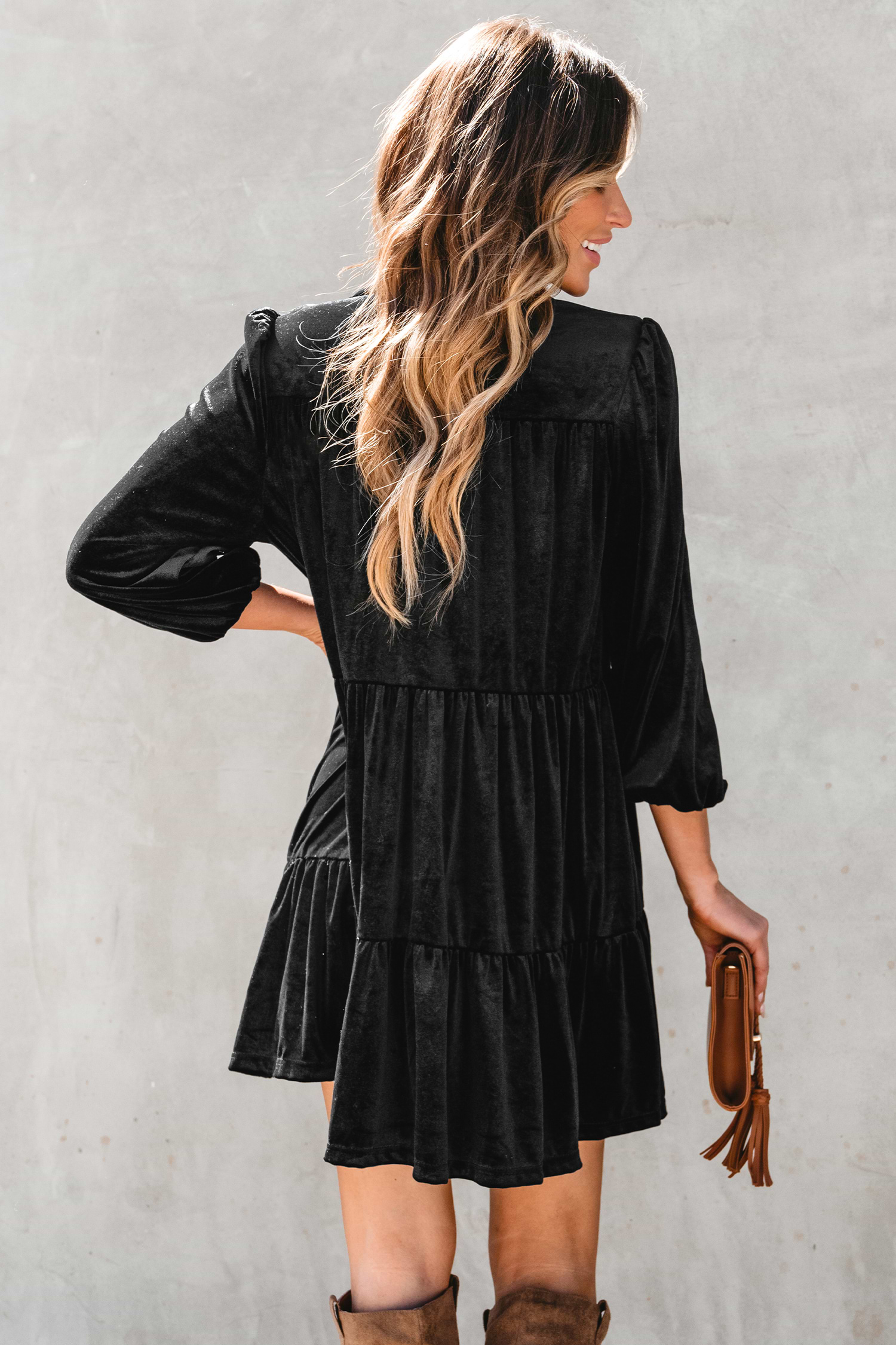 x JoJo Crystal Embellished Black Velour Mini Dress