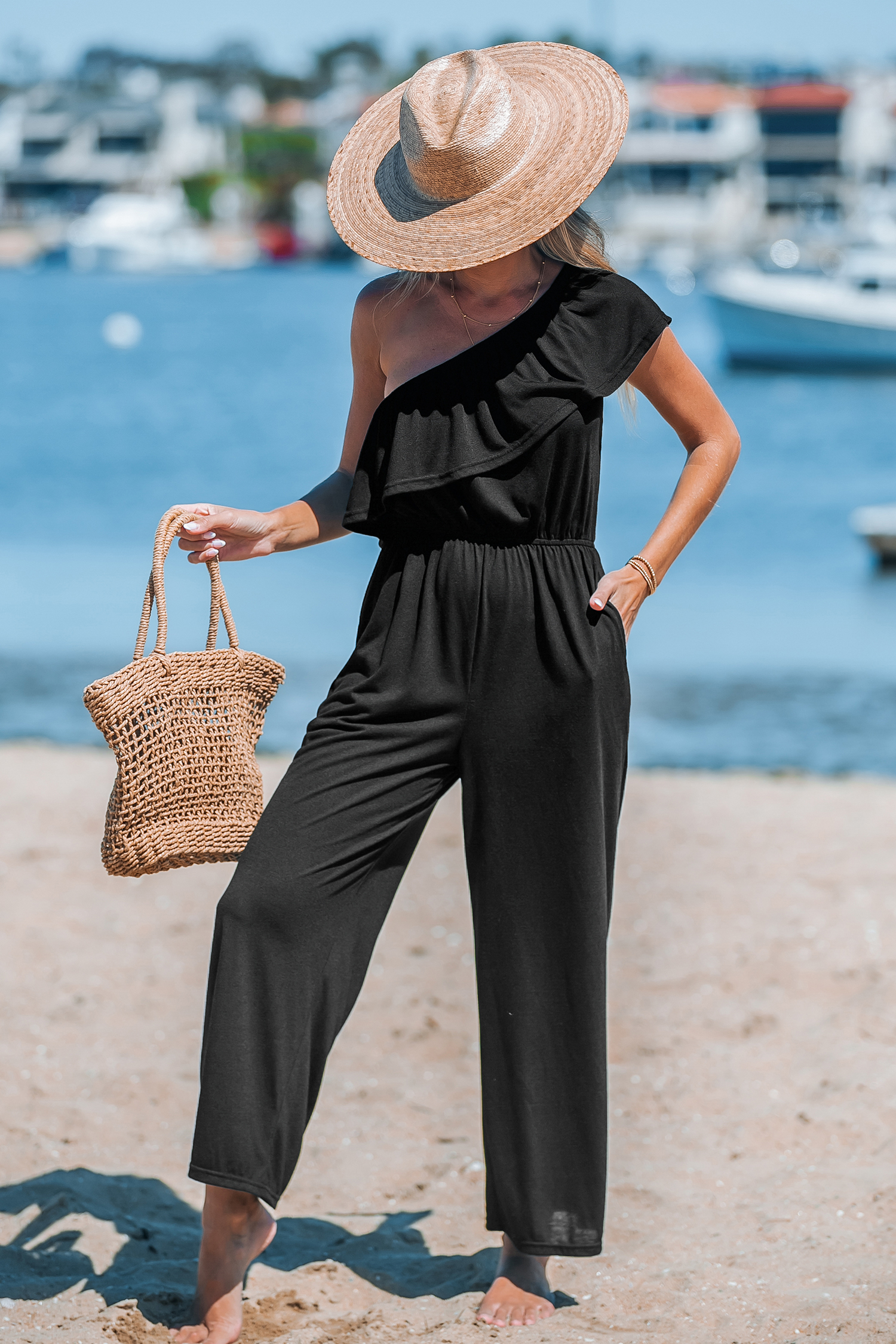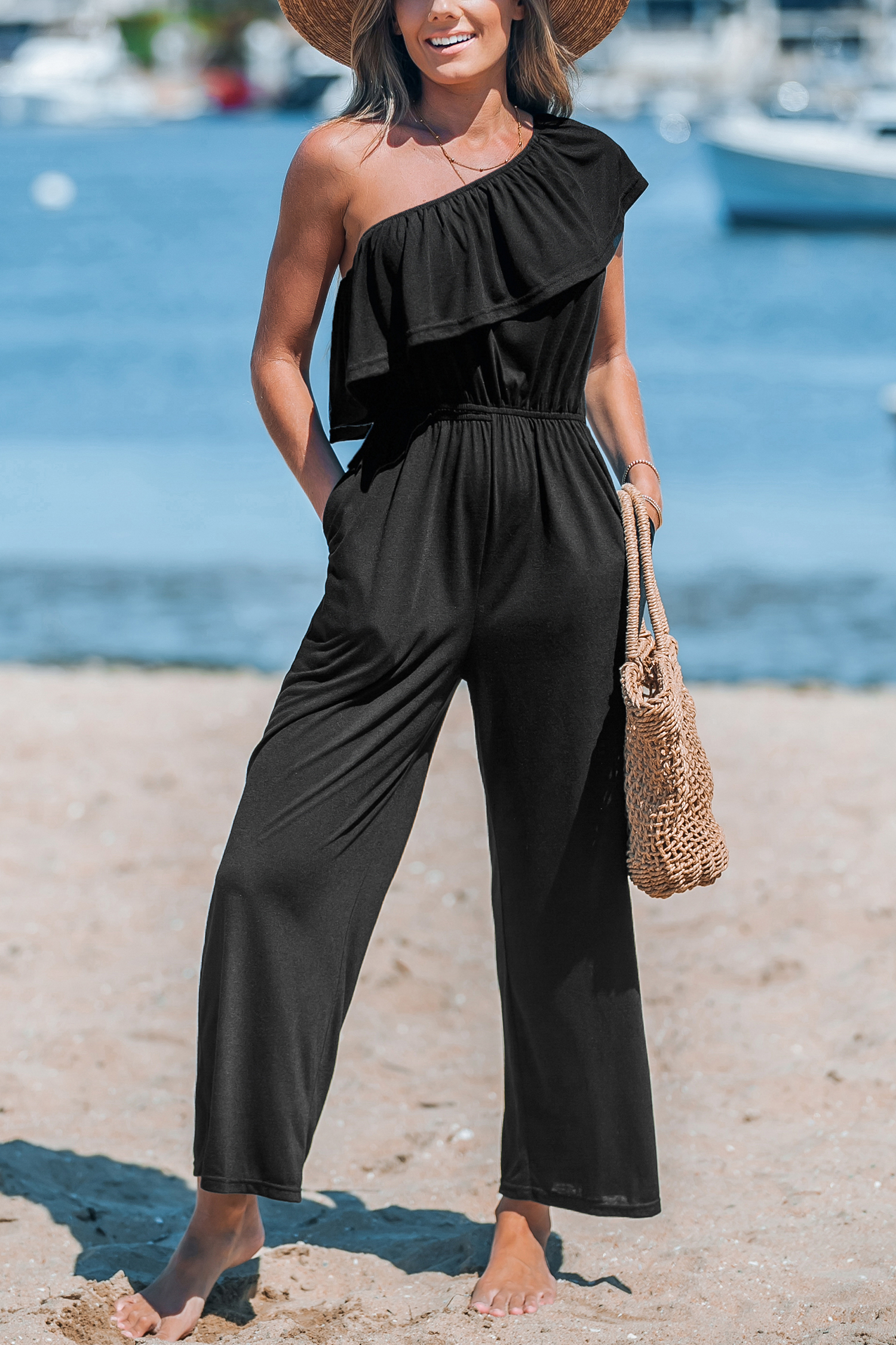 HomeBlack Ruffled One-Shoulder Jumpsuit