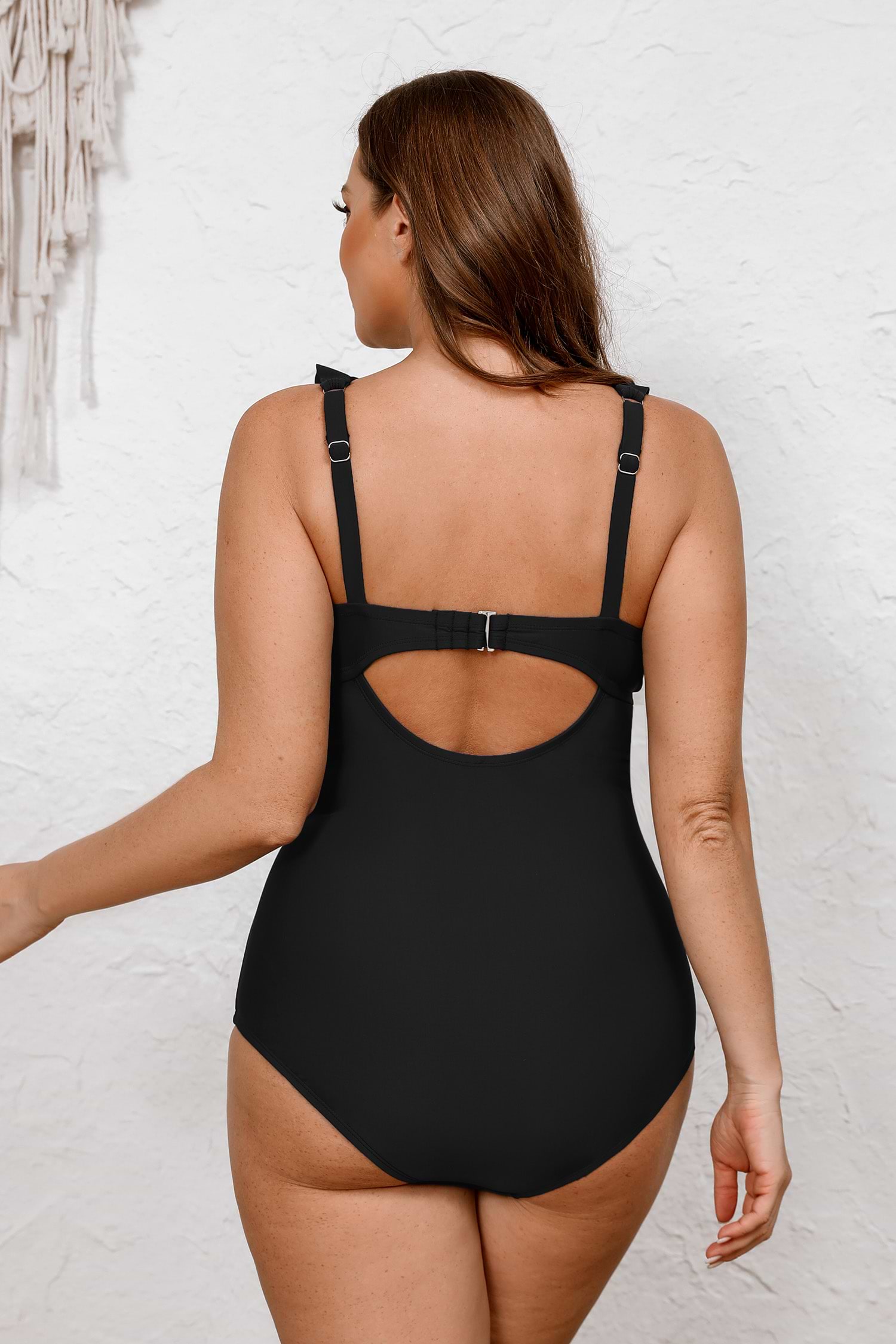 Black Ruffled Tummy Control Retro One-Piece