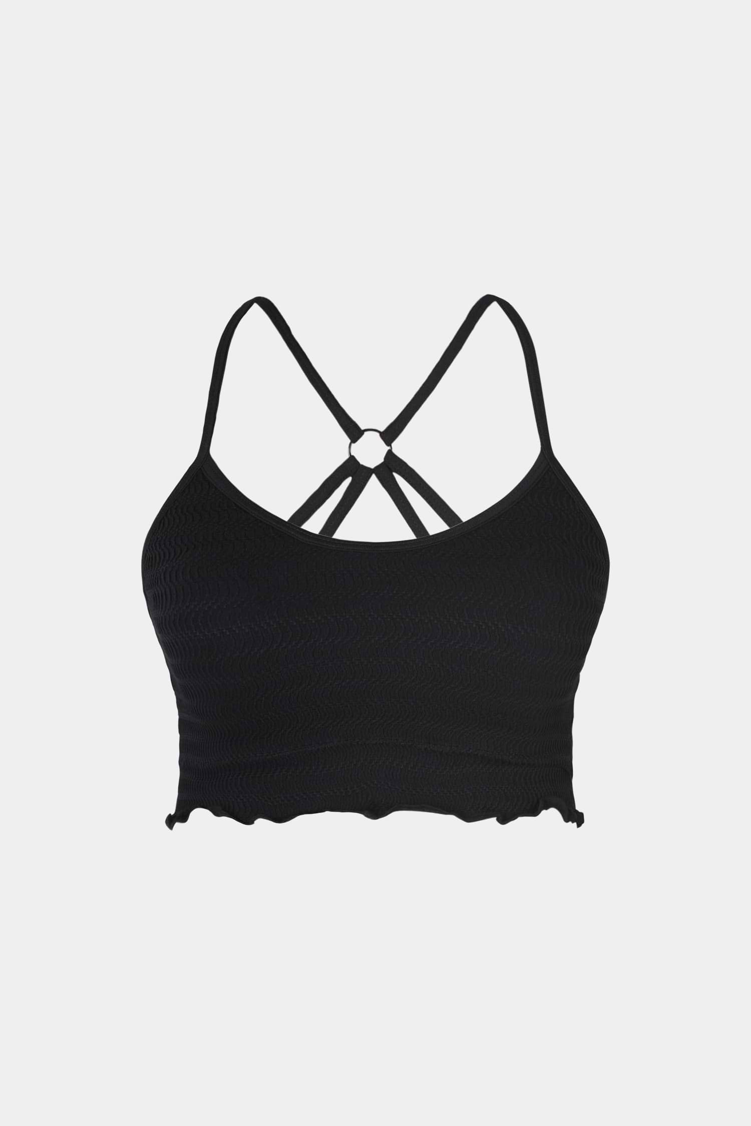 Seamless Black Scoop Neck Lettuce Hem Crop Tank