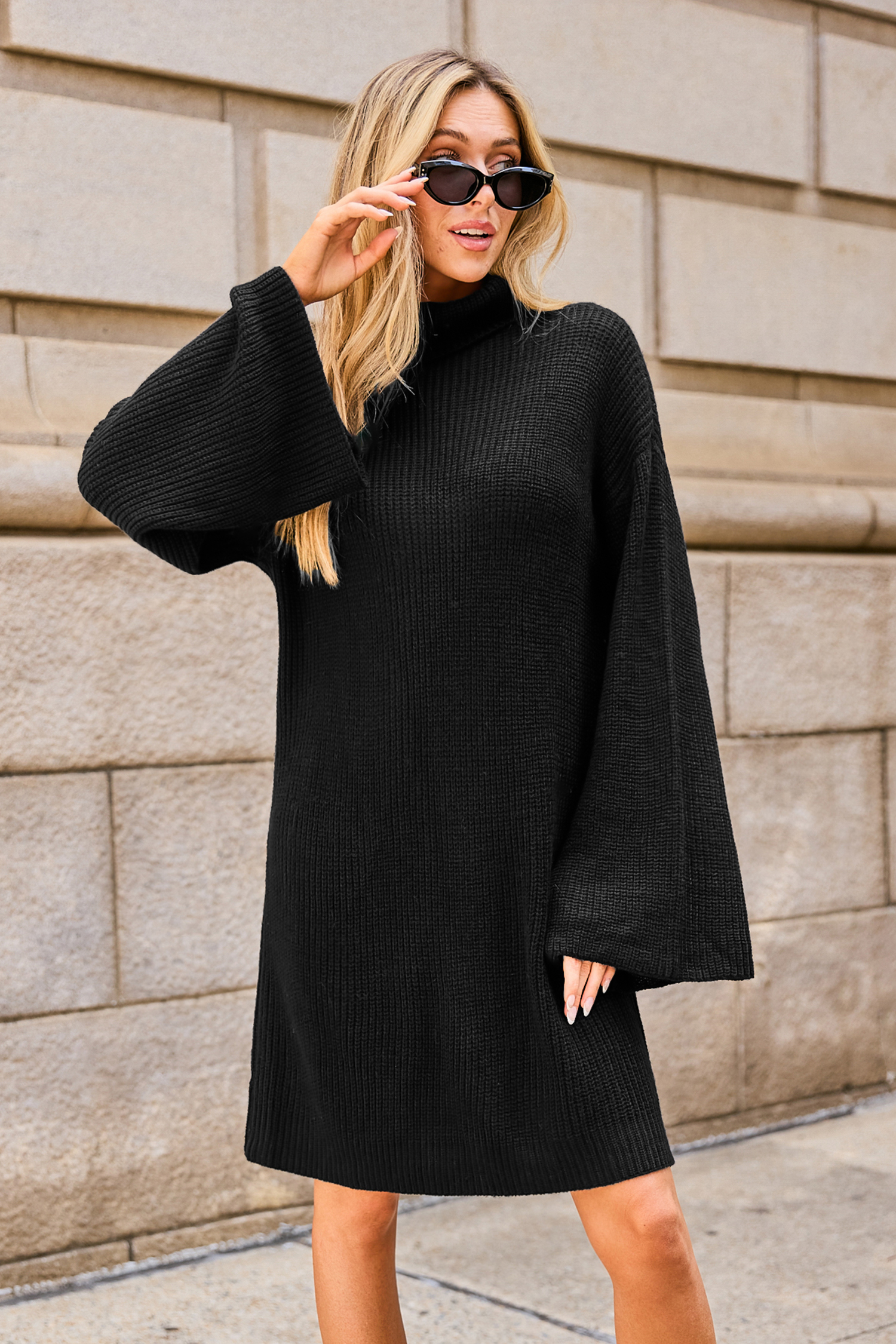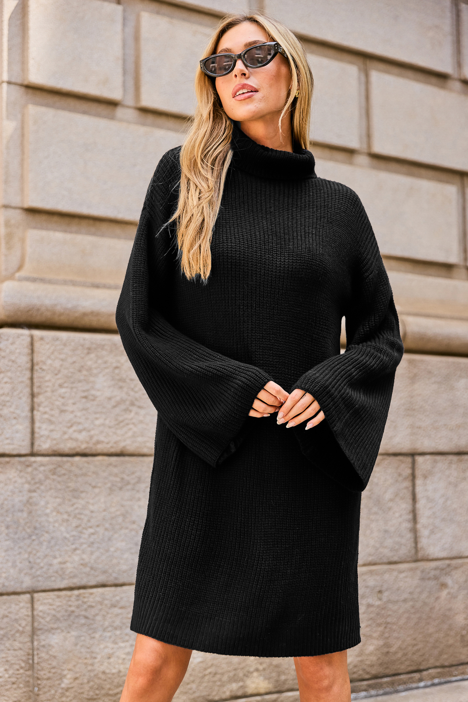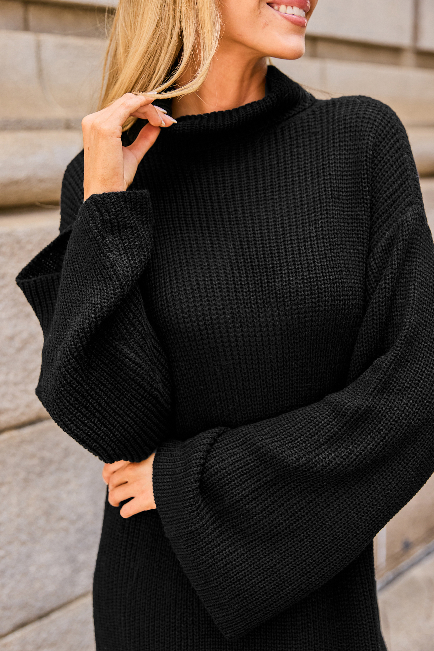 Black Turtleneck Long Sleeve Mini Sweater Dress