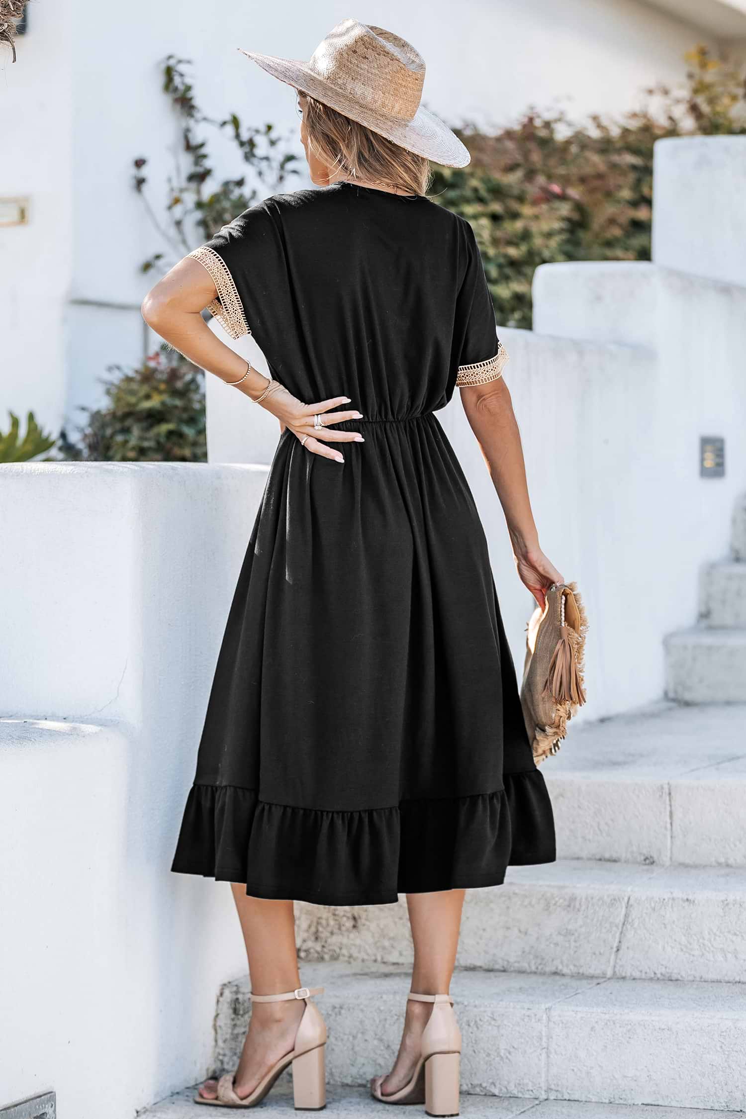 Black V-Neck Short Sleeve Mini Dress