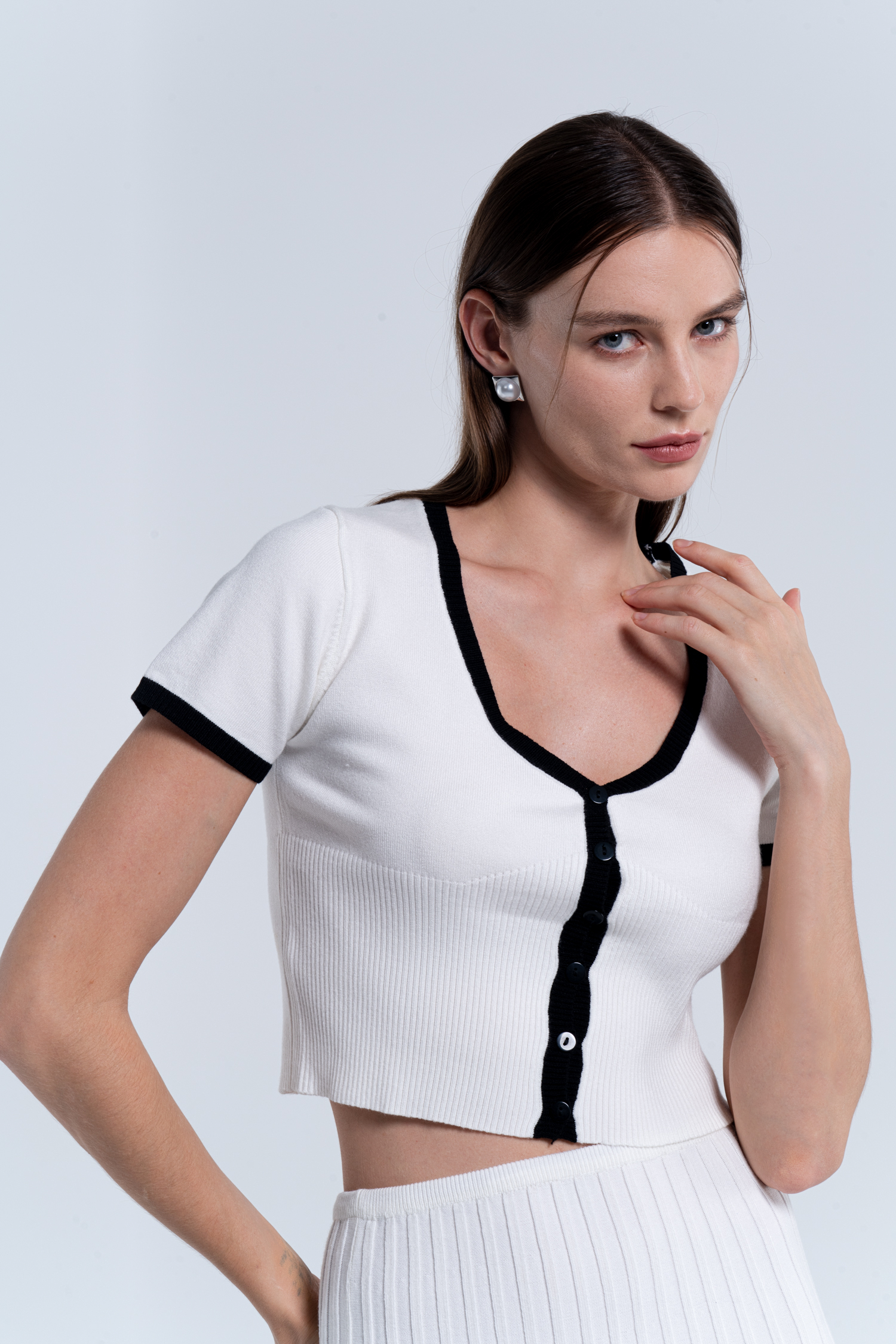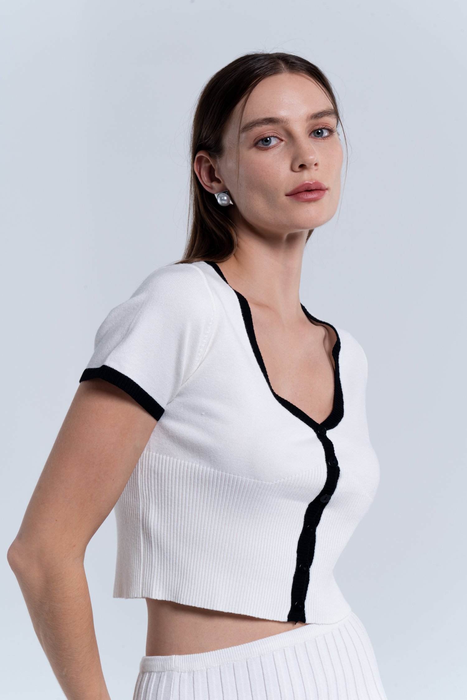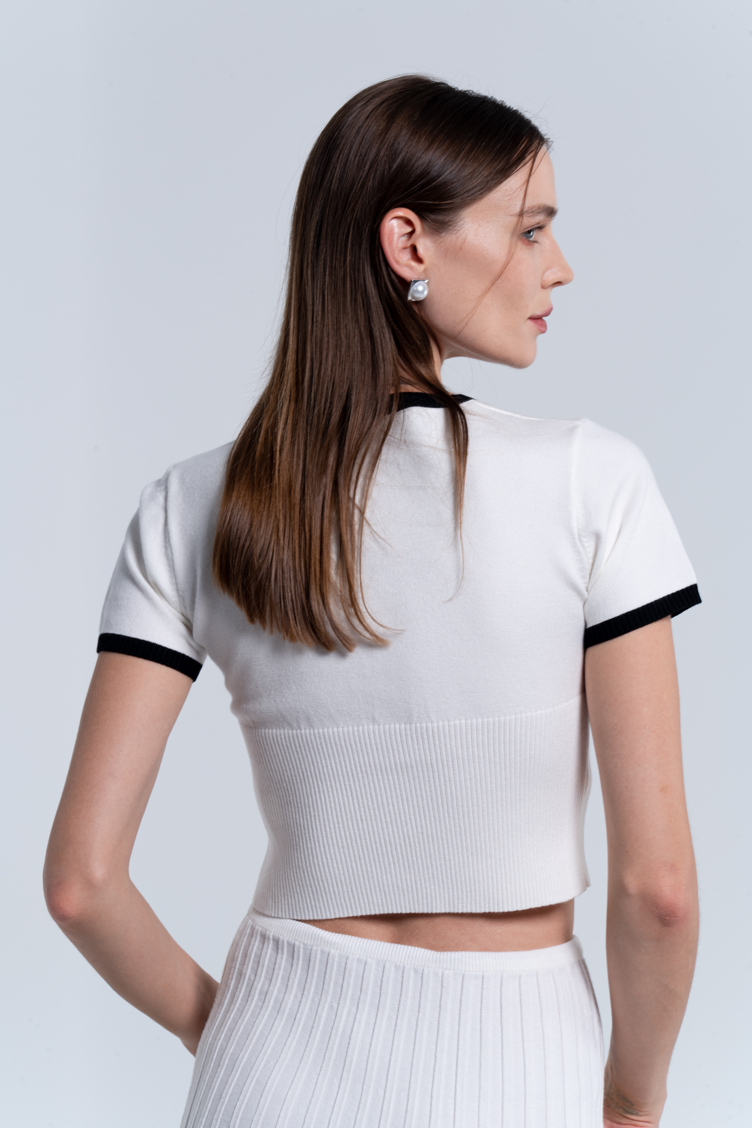 HomeBlack & White Colorblock Short Sleeve Sweater Top