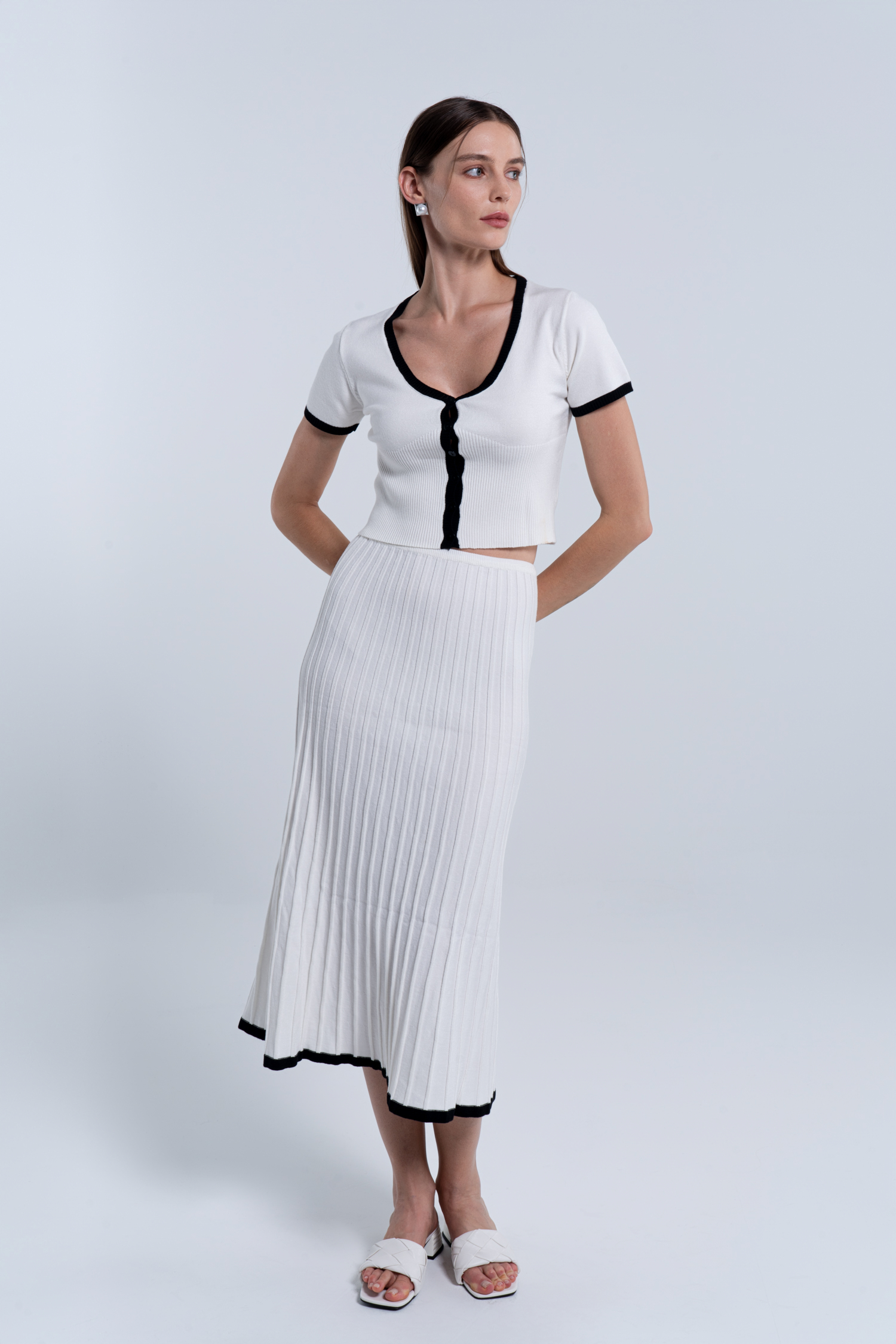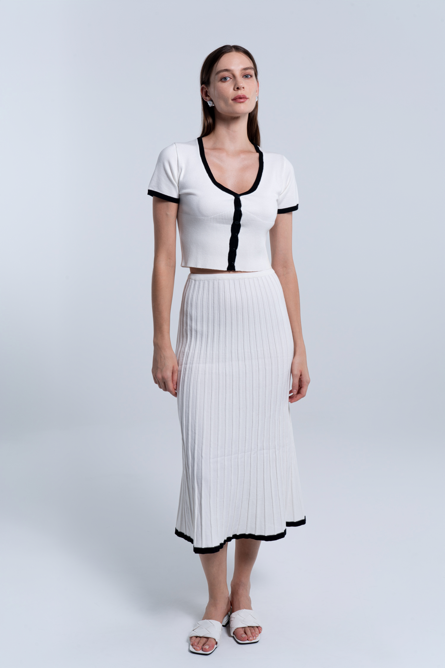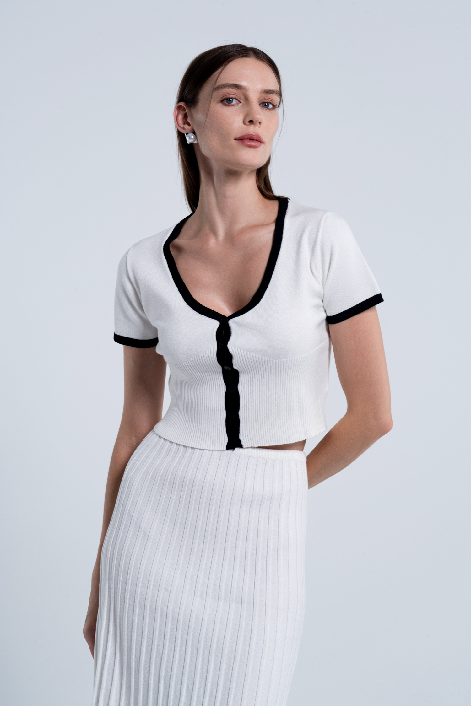 HomeBlack & White Colorblock Short Sleeve Sweater Top
