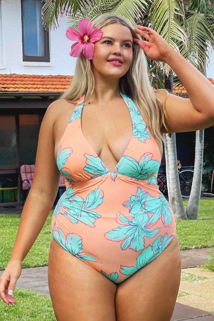 HomeBlooming Flowers Shirred Plunge Tummy Control Plus Size One Piece