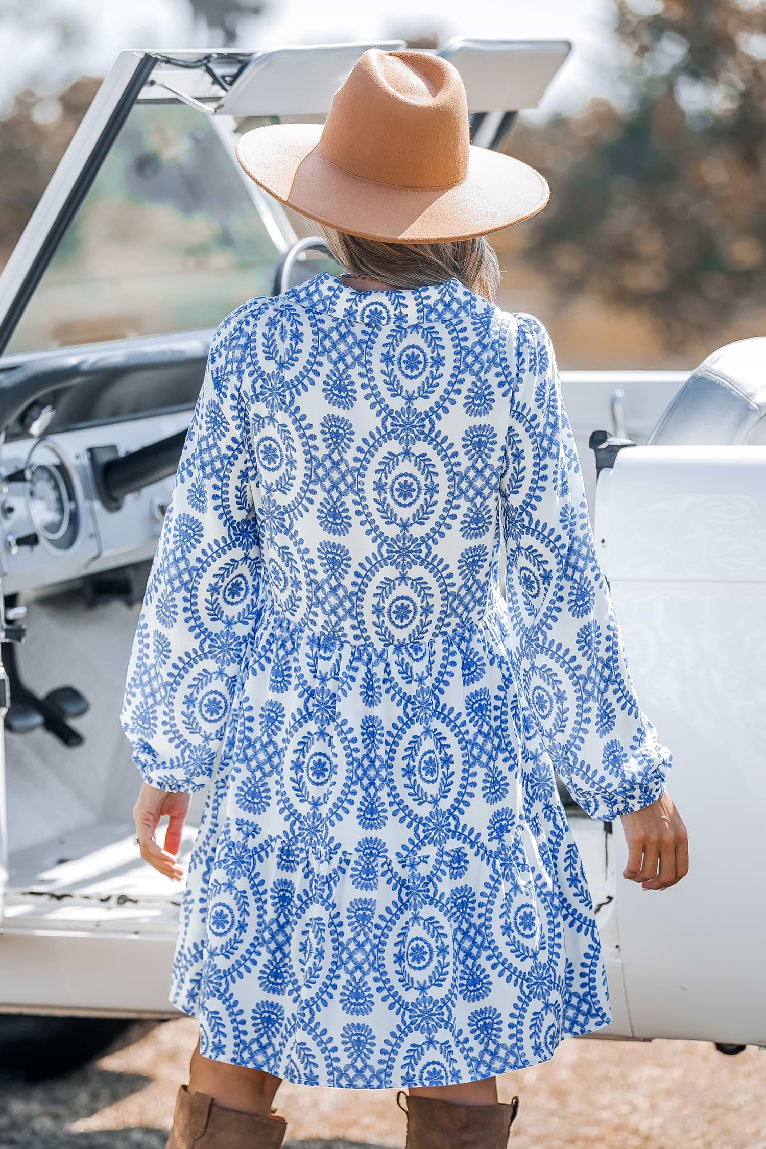 HomeBlue Ornate Collared Long Sleeve Mini Dress