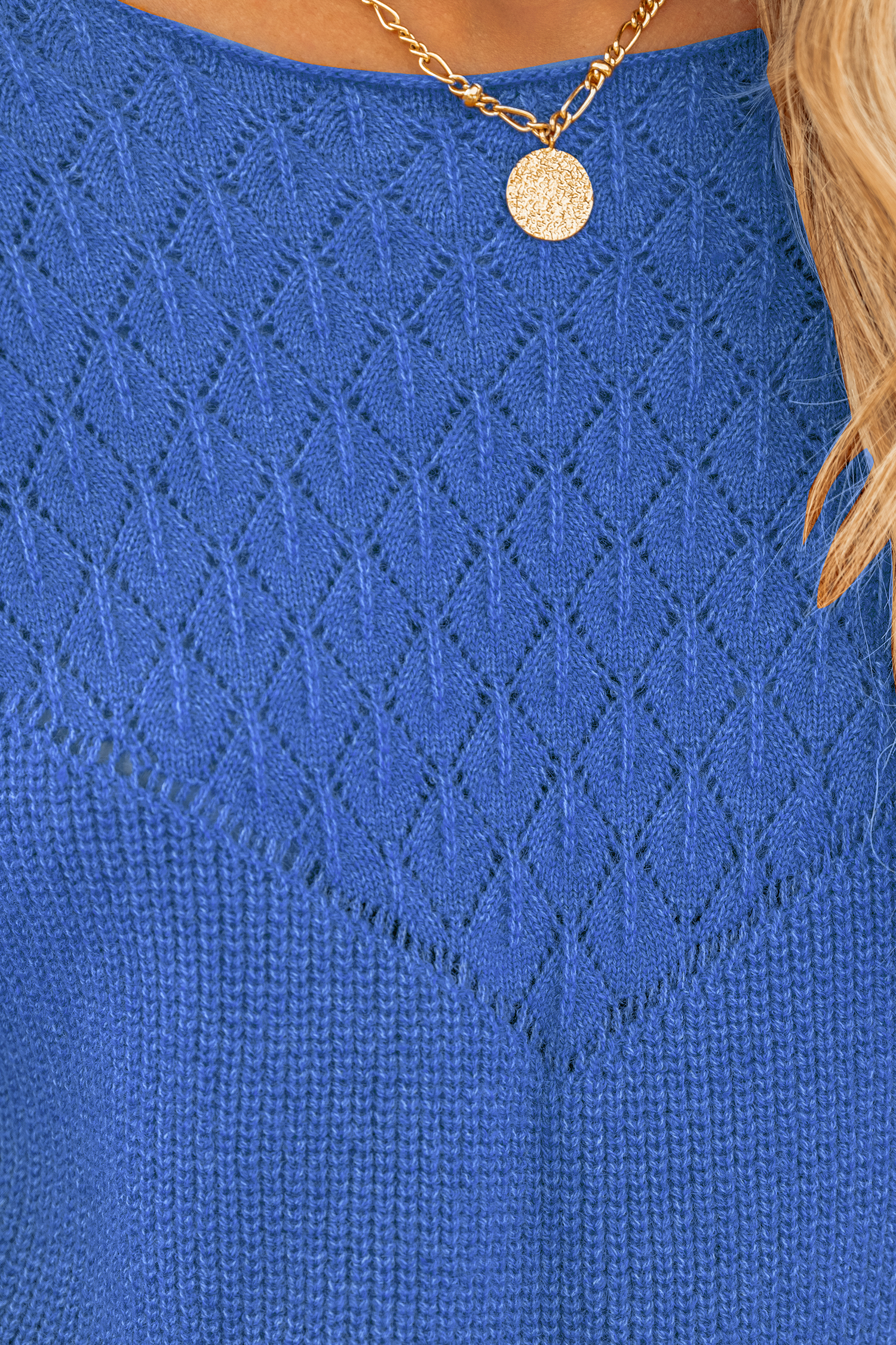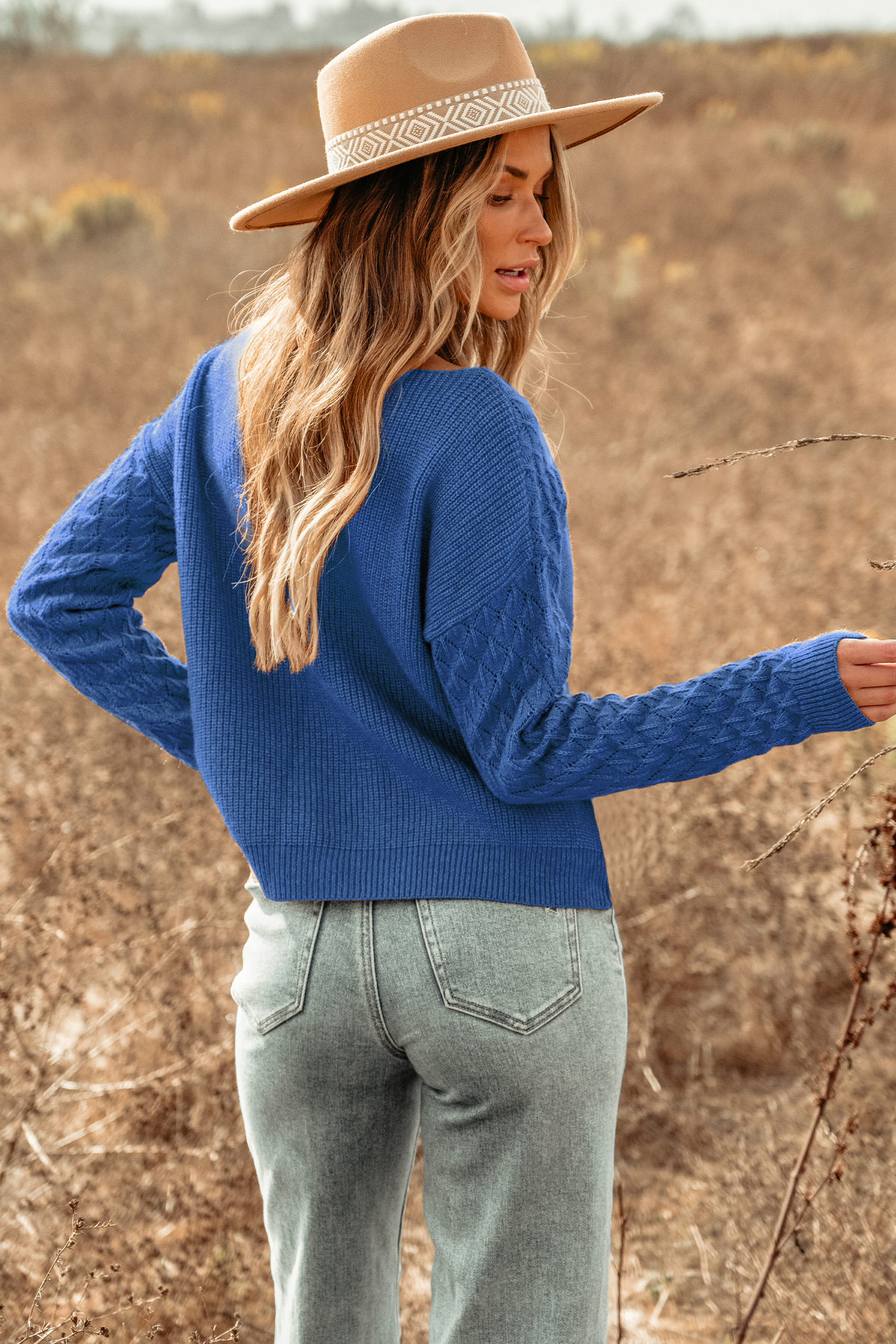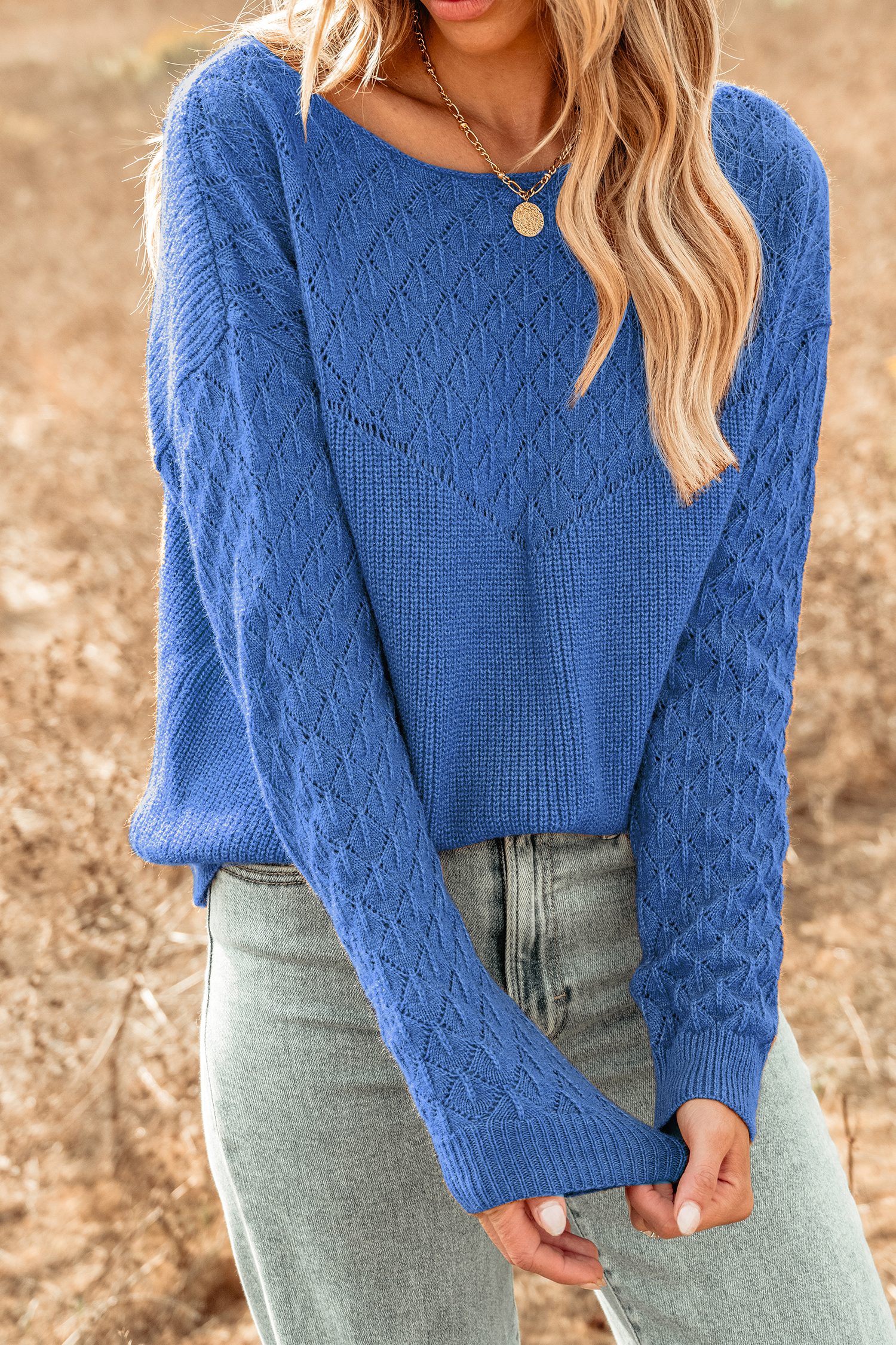 HomeBlue Round Neck Long Sleeve Sweater Top