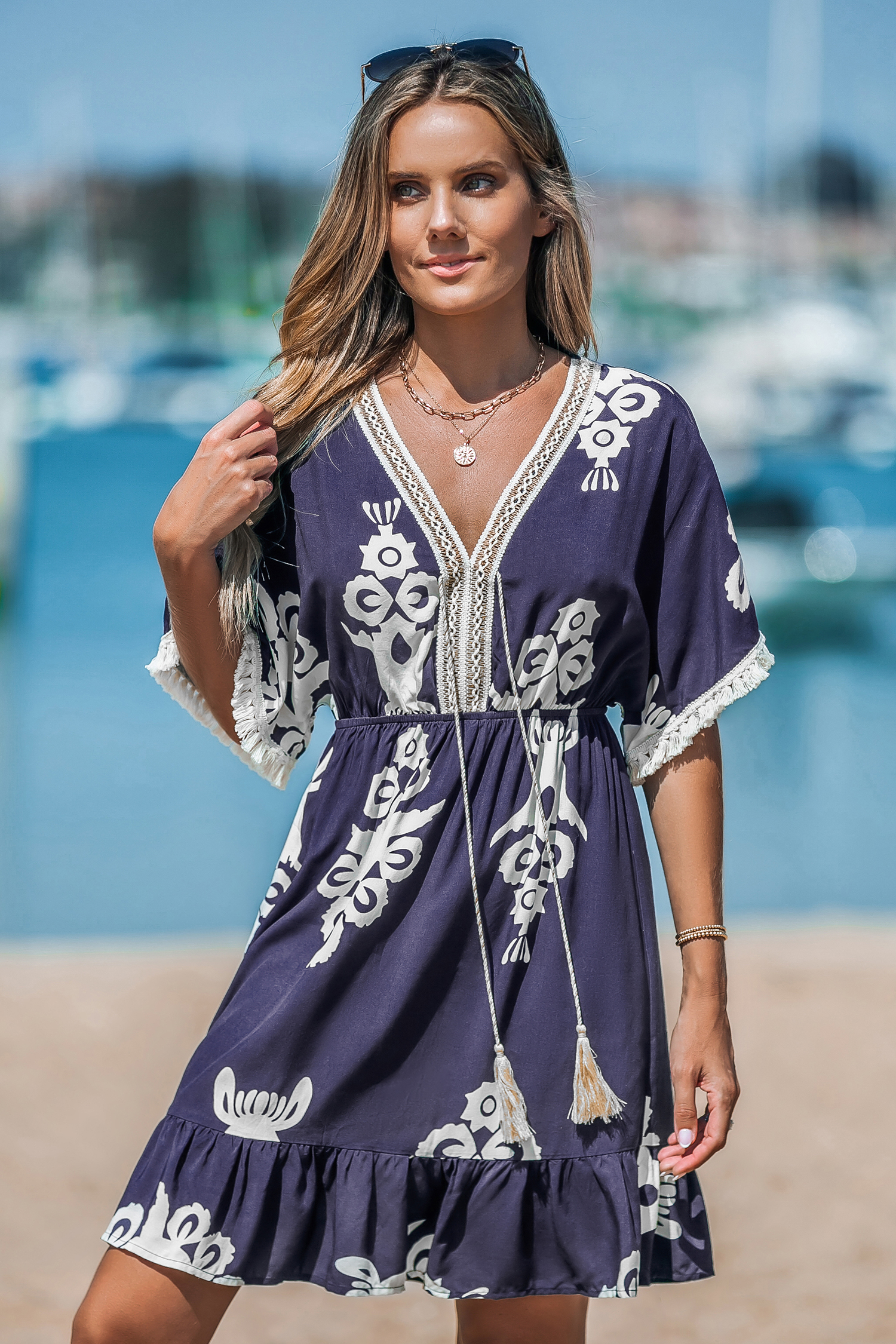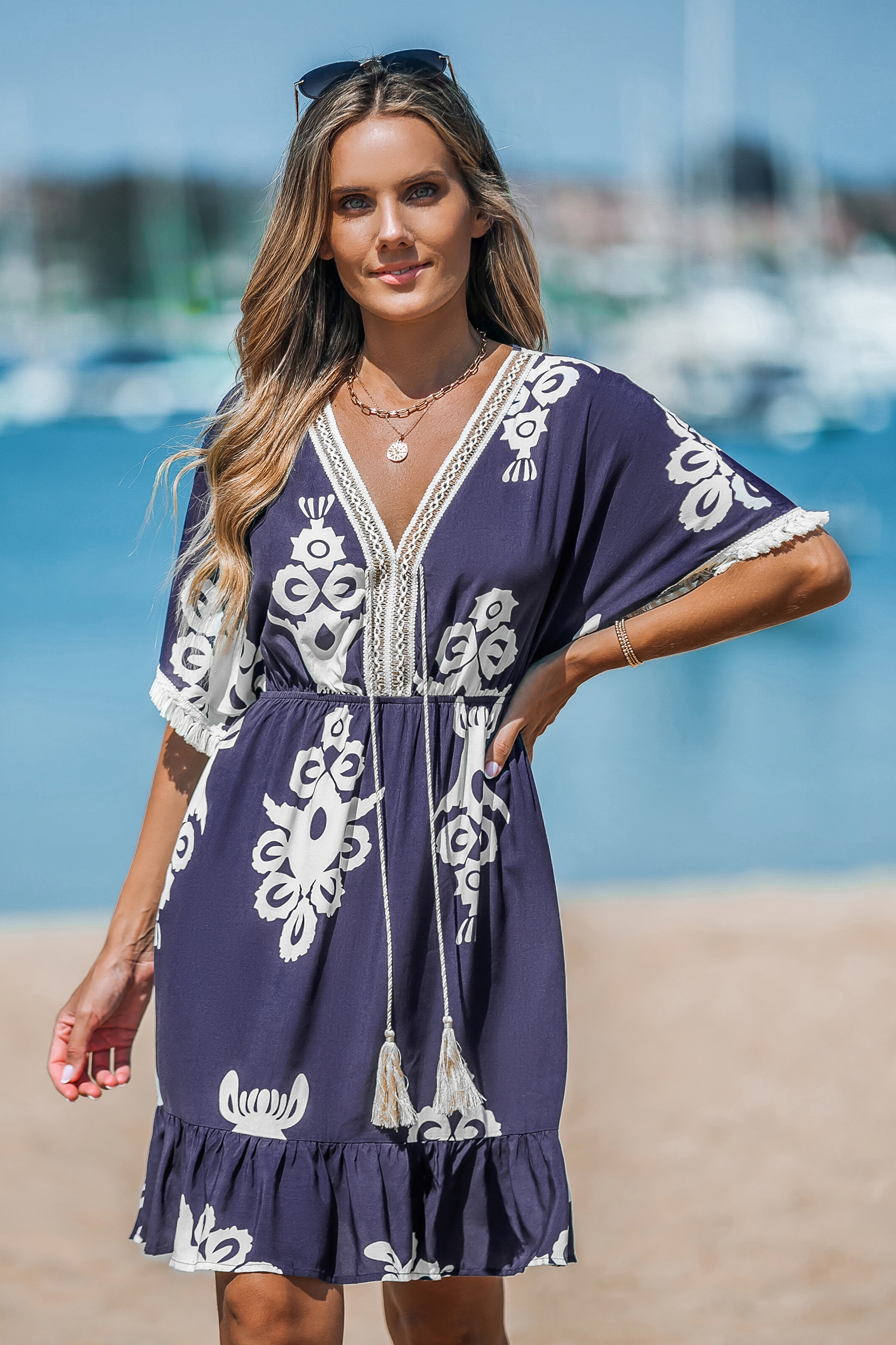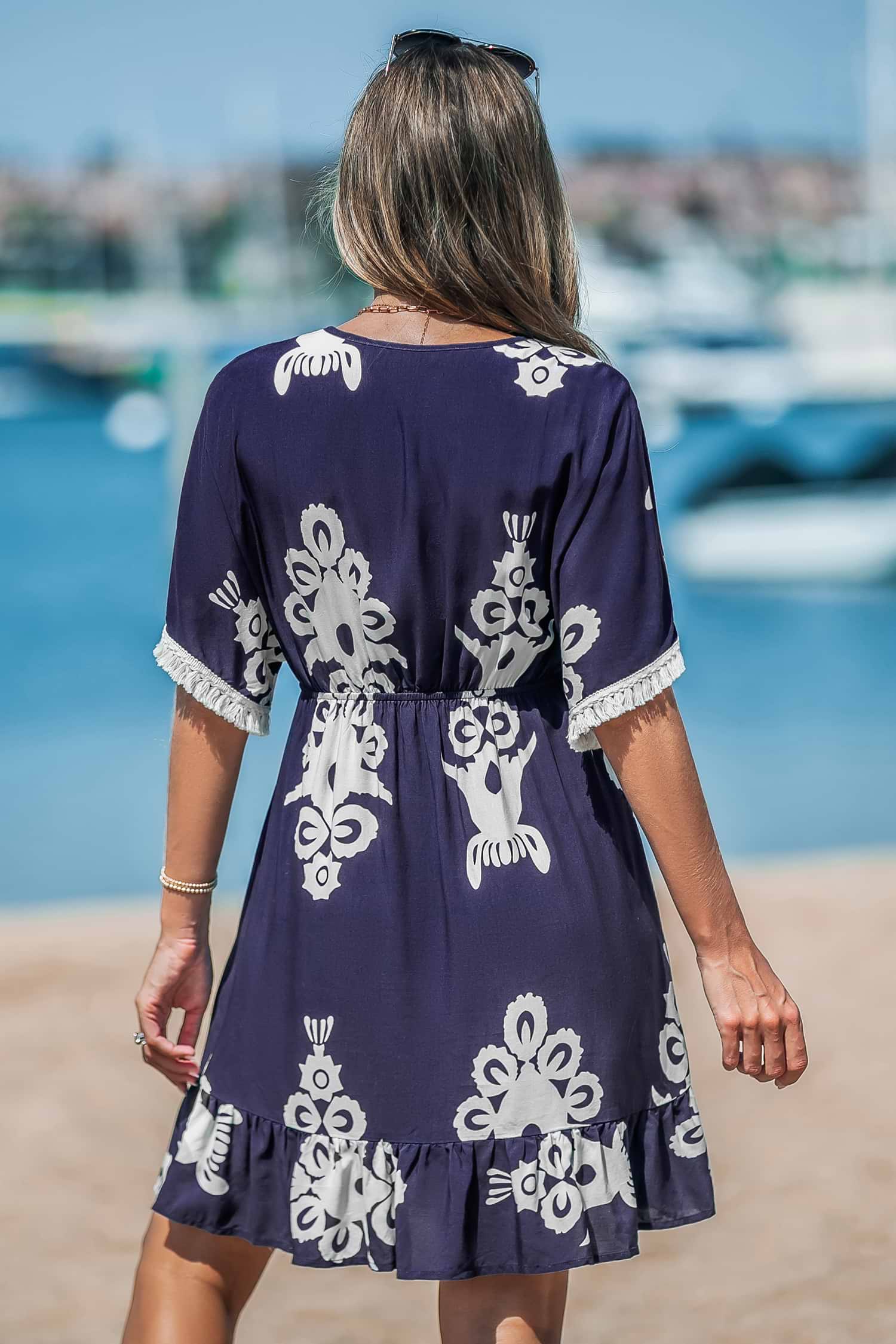HomeBlue Tassel Dolman Sleeve Mini Dress