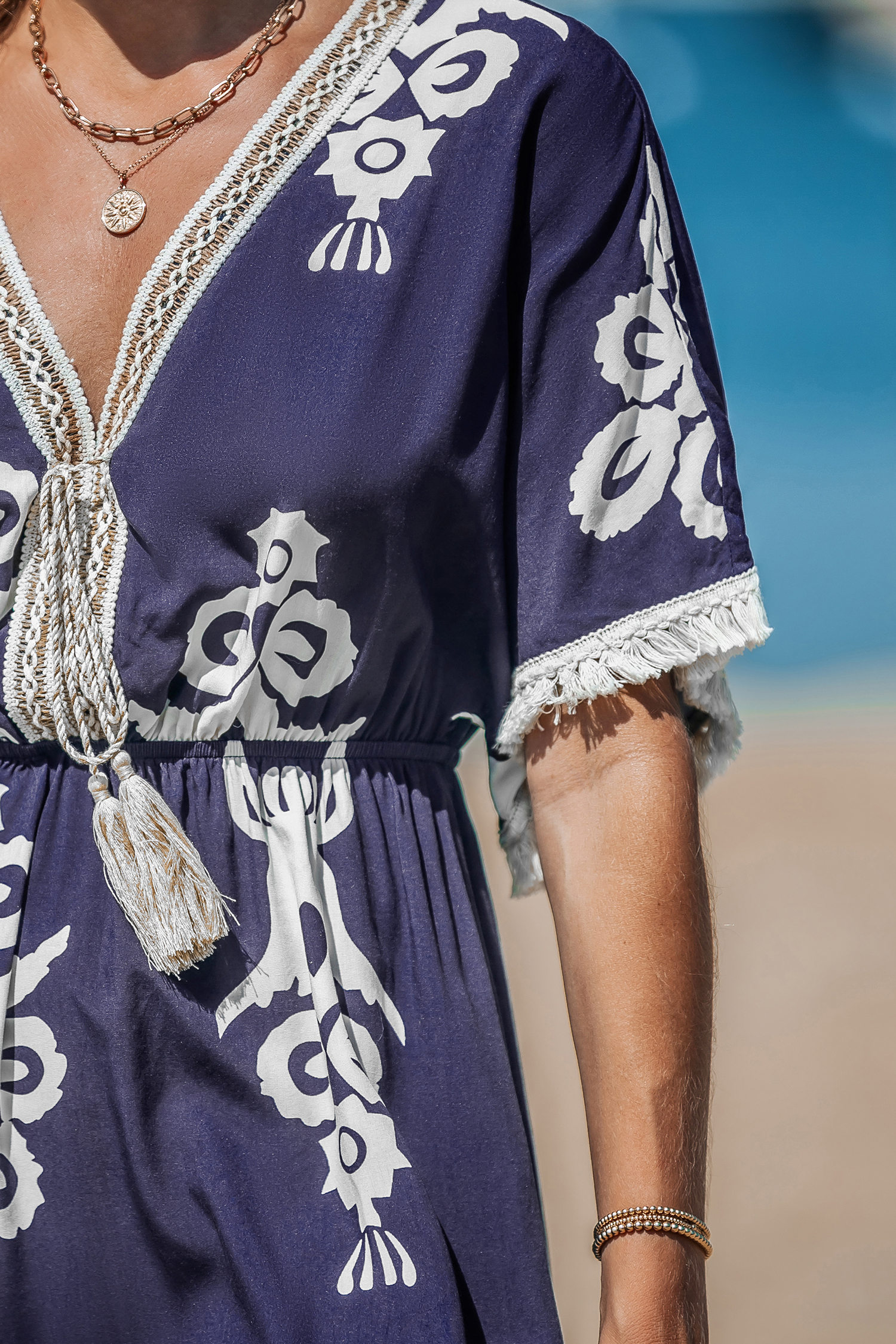 Blue Tassel Dolman Sleeve Mini Dress