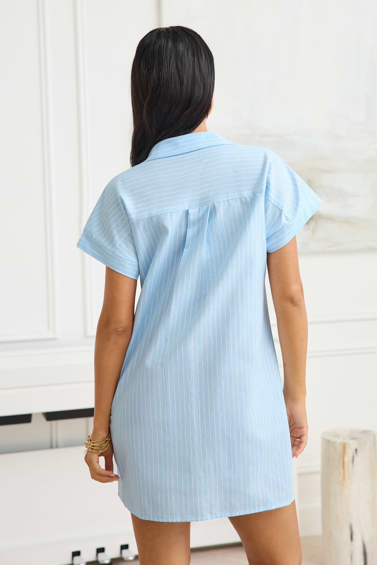 Blue & White Stripe Collared Short Sleeve Mini Dress
