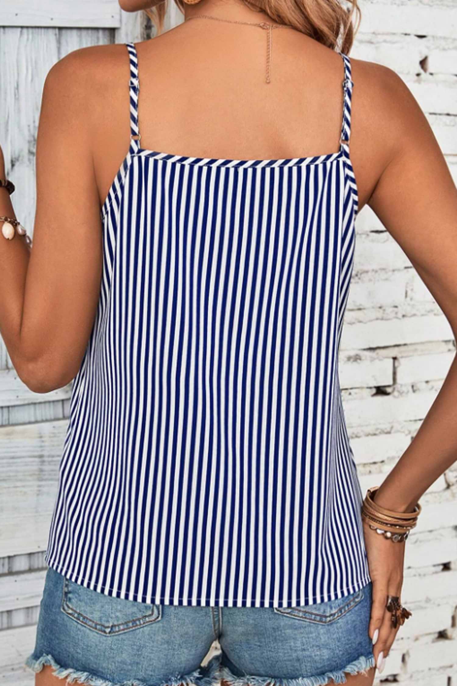 HomeBlue & White Stripe Lace Trim V-Neck Cami
