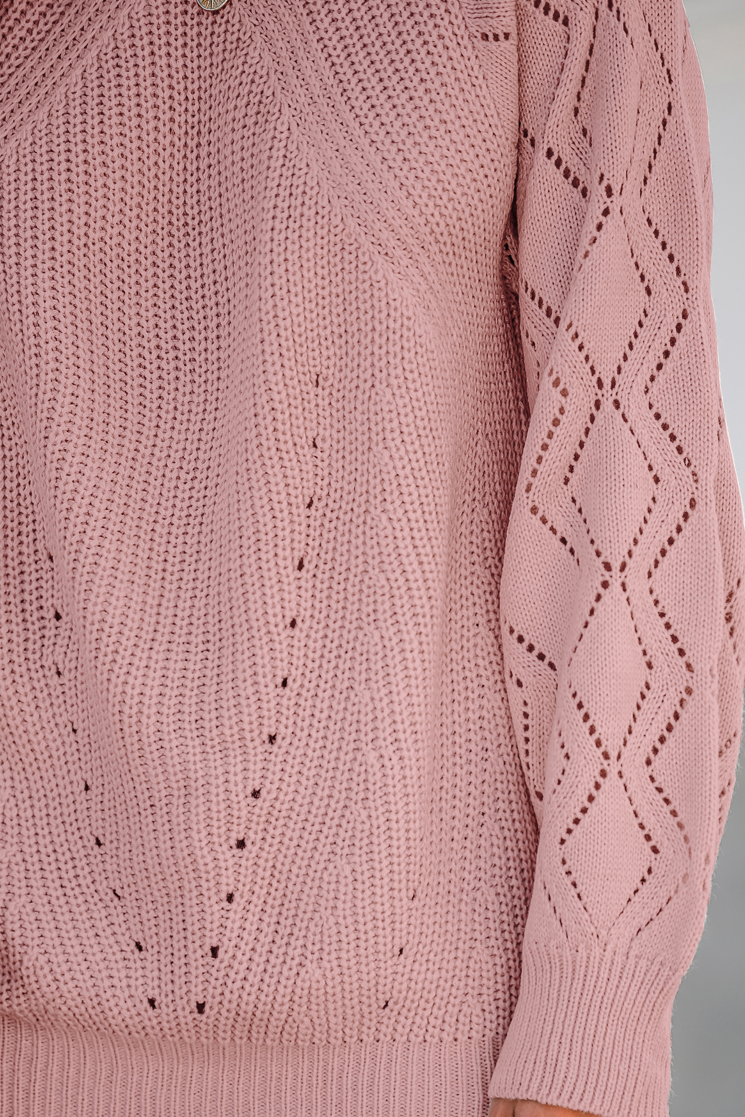 HomeBlush Pink Cutout Pointelle Knit Sweater
