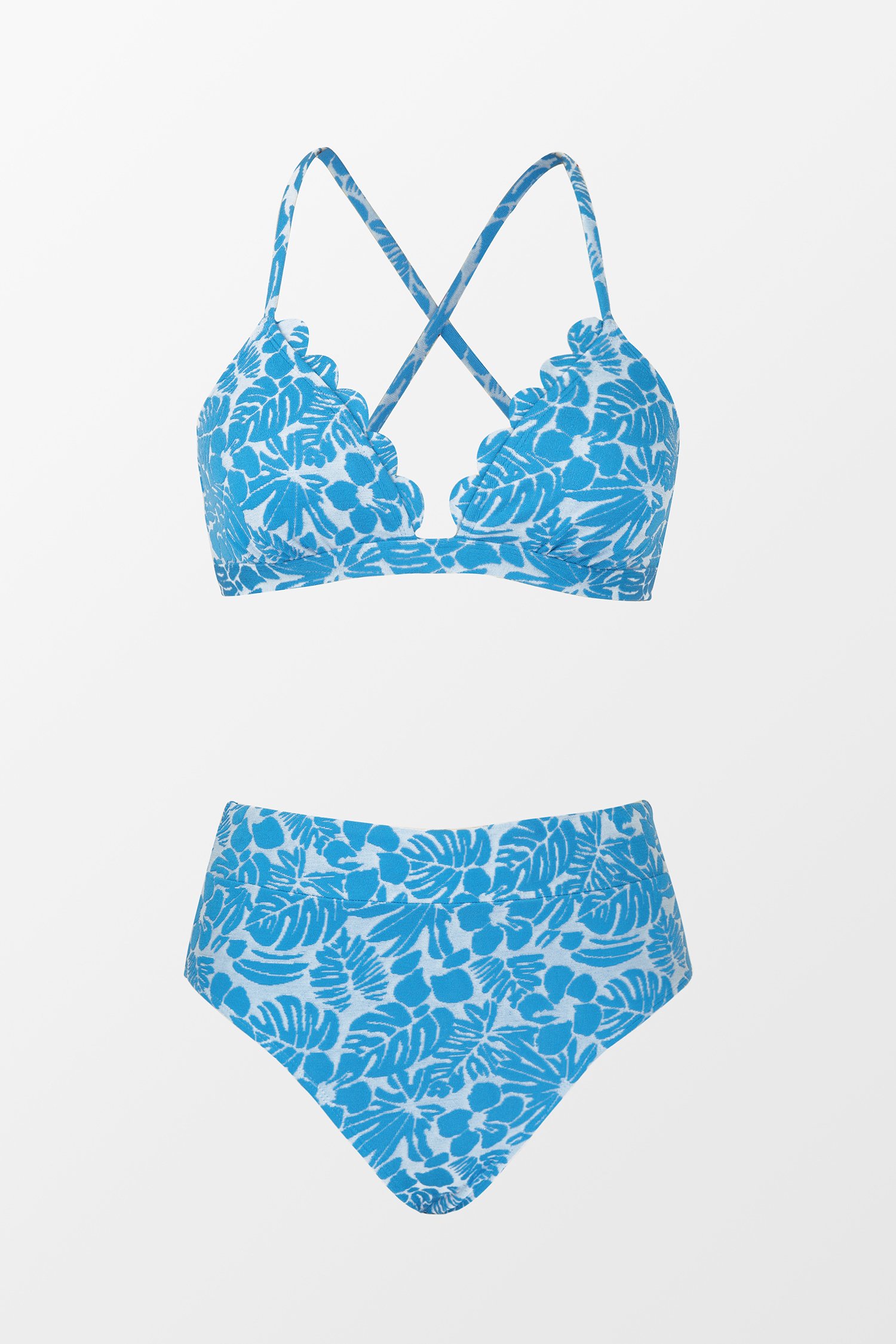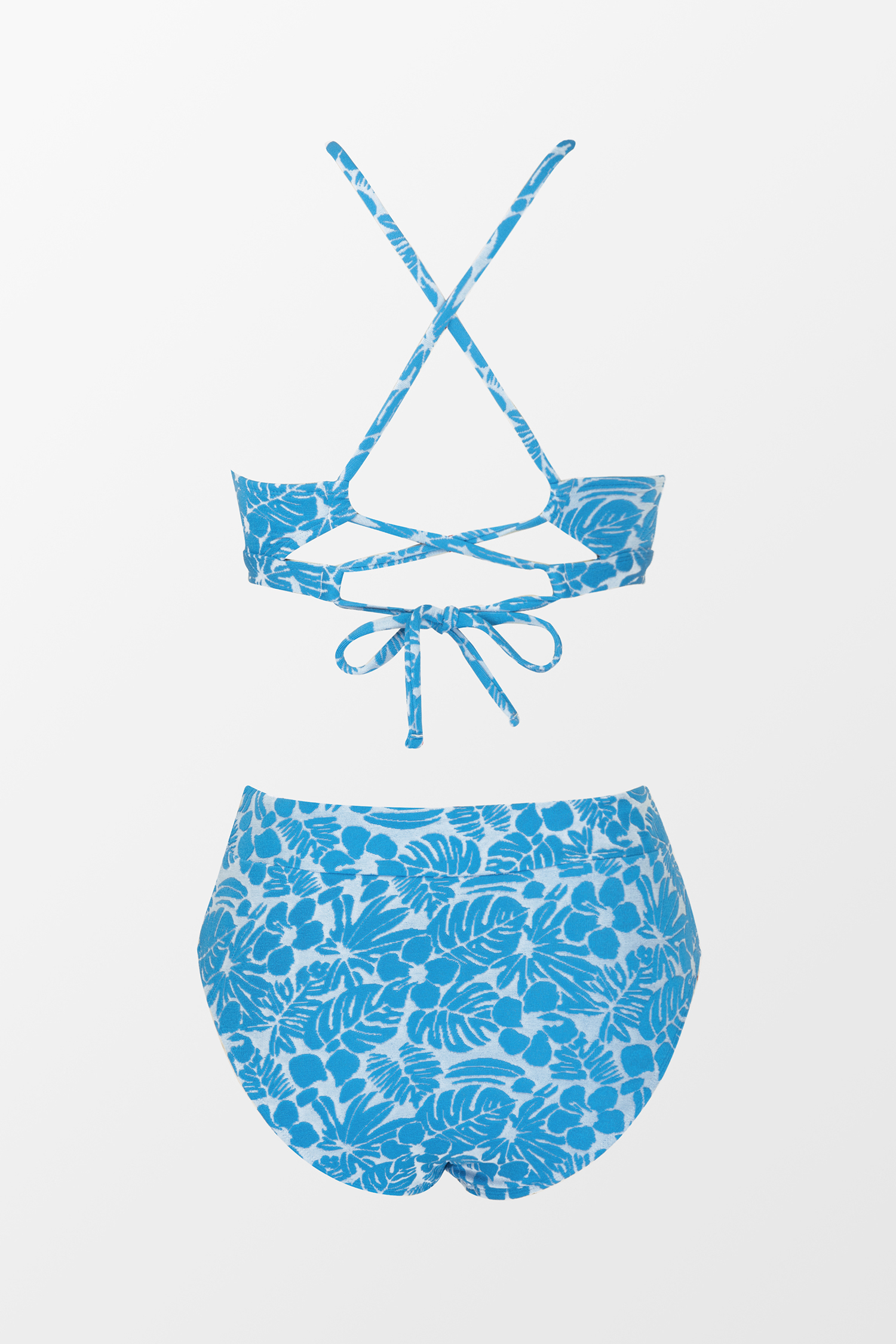 Breeze Palm Jacquard Lace-Back Top & High Waist Bikini Set