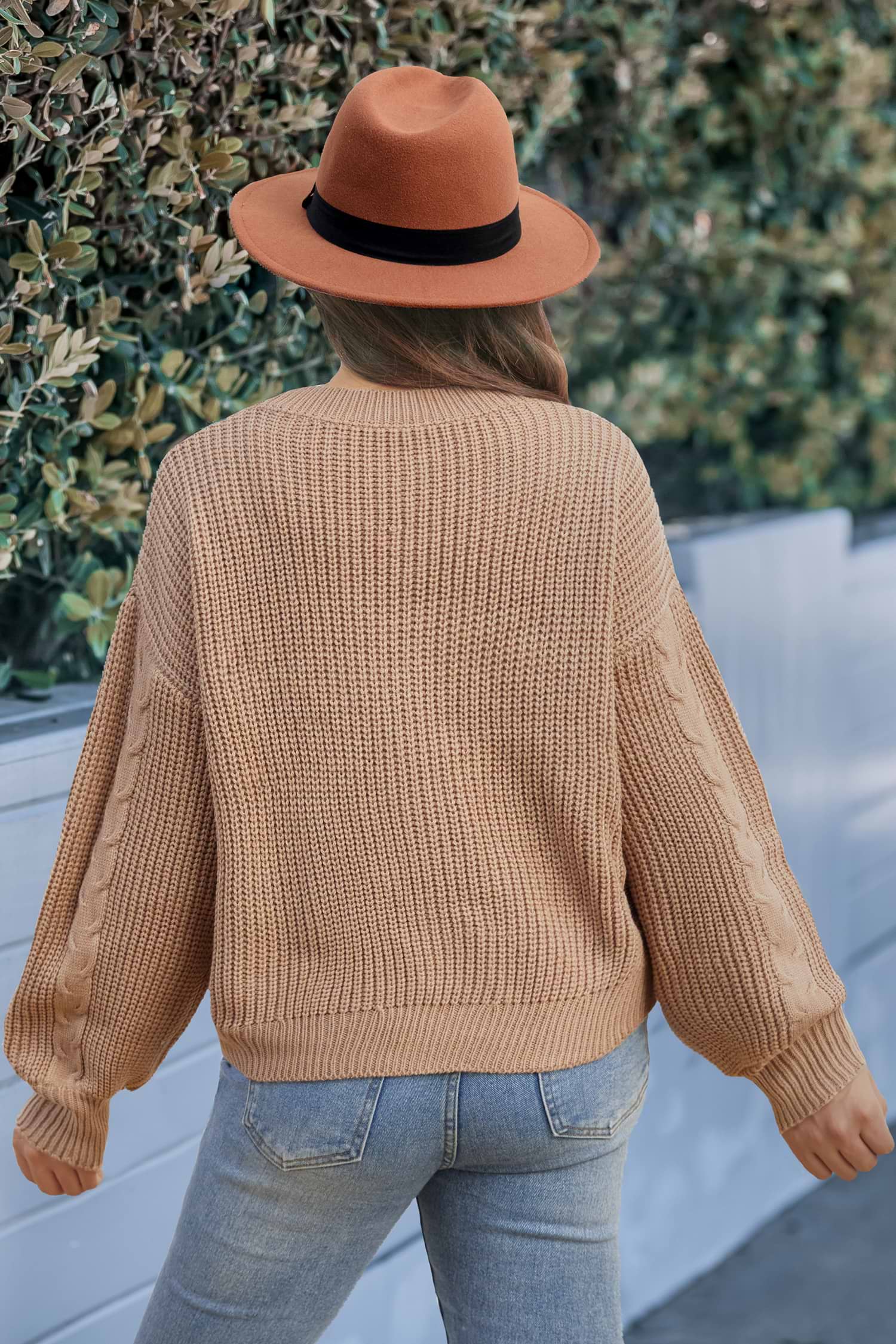 Brown Cable Knit Long Sleeve Sweater