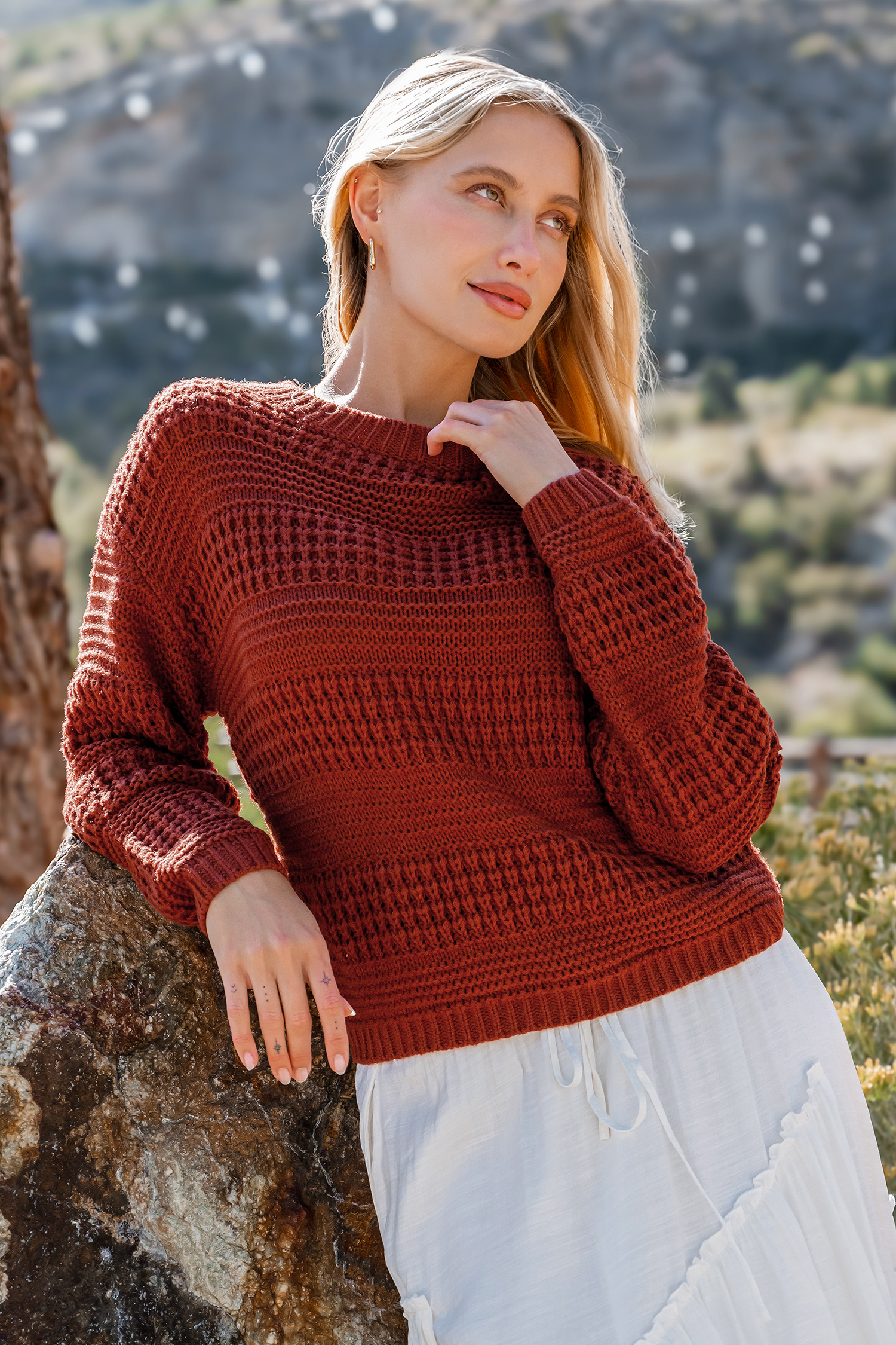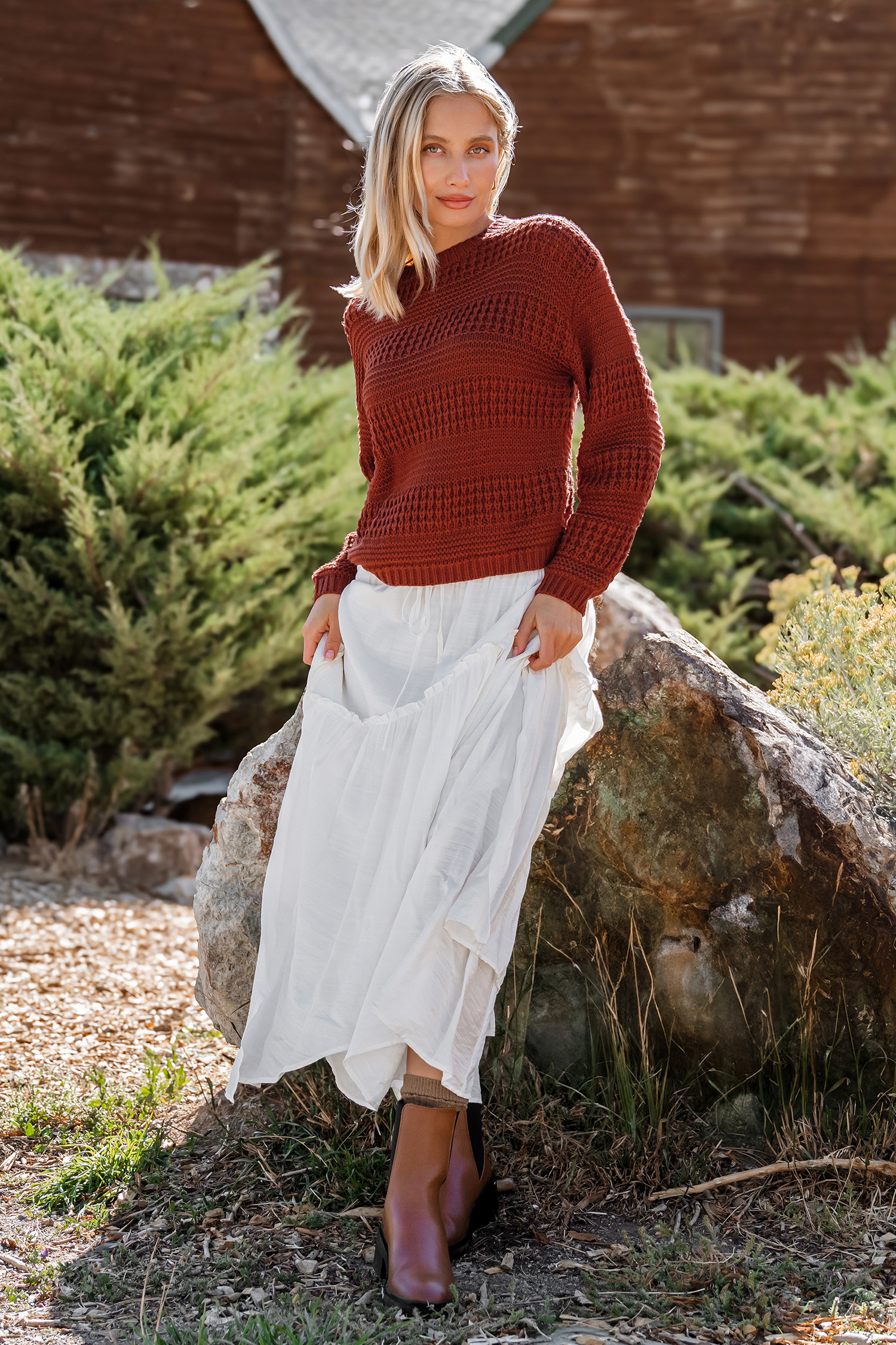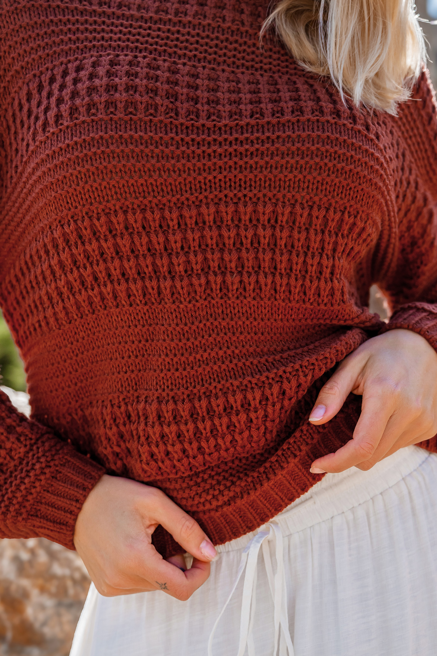 HomeBrown Drop Shoulder Long Sleeve Knit Sweater