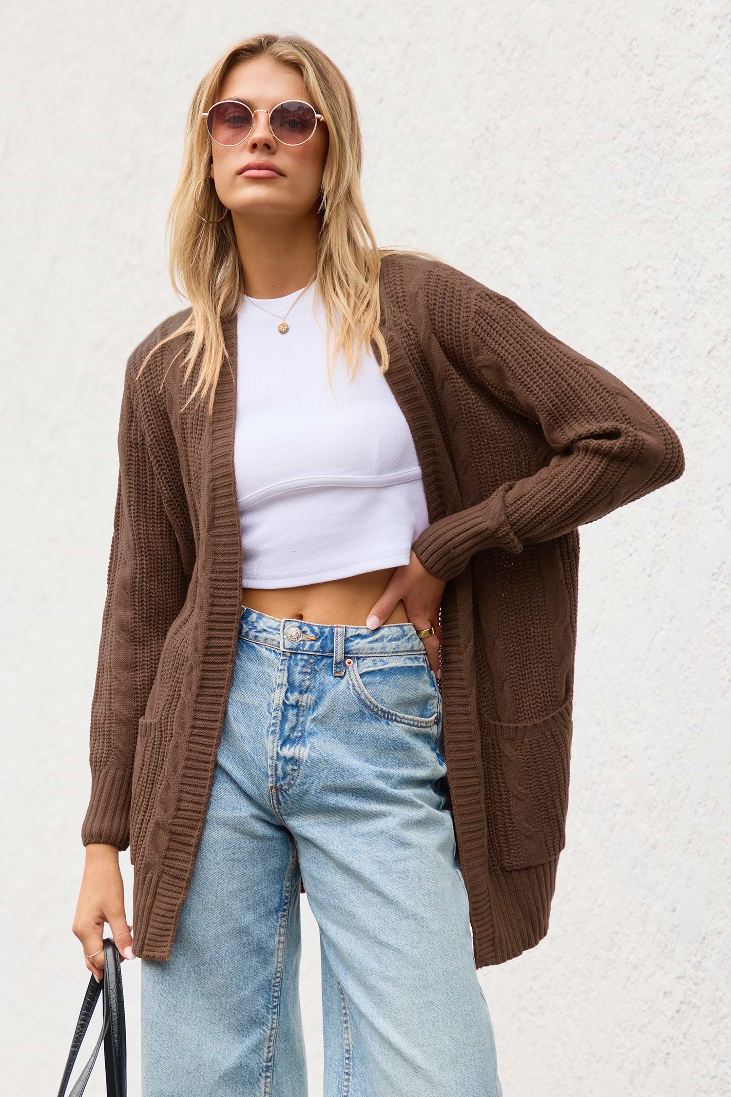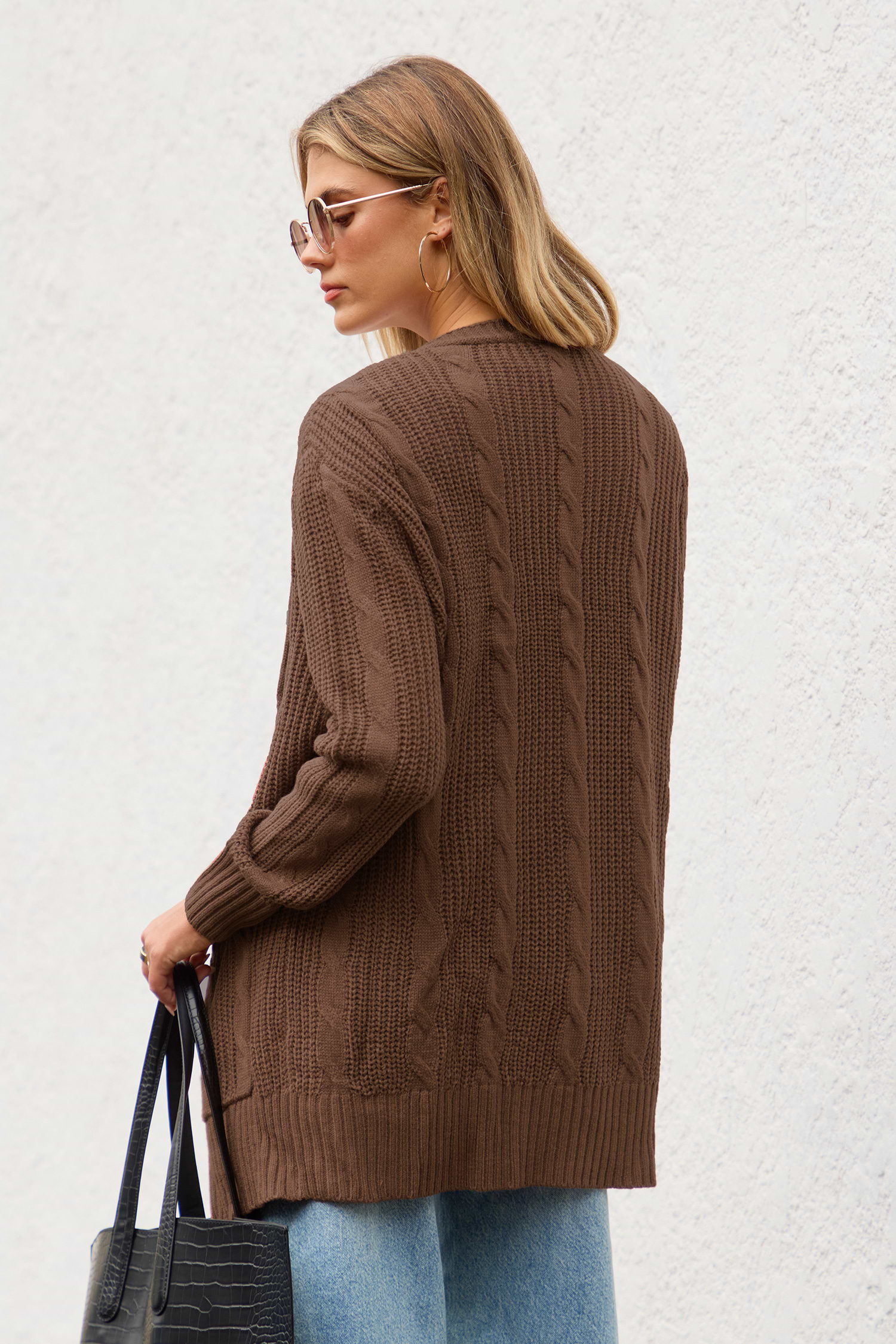 HomeBrown Open Front Long Sleeve Knit Cardigan