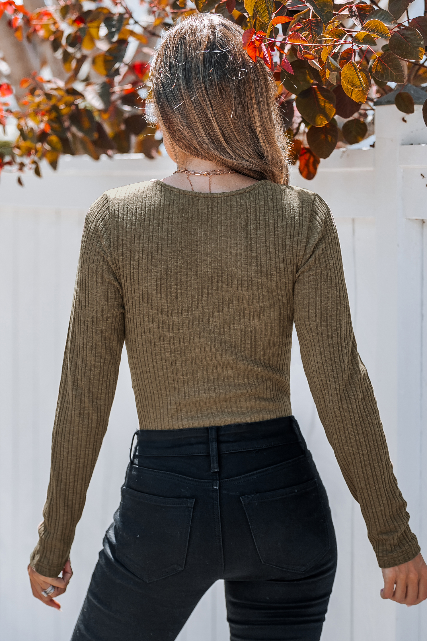 HomeBrown Ribbed Knit Plunging Twist Bodysuit