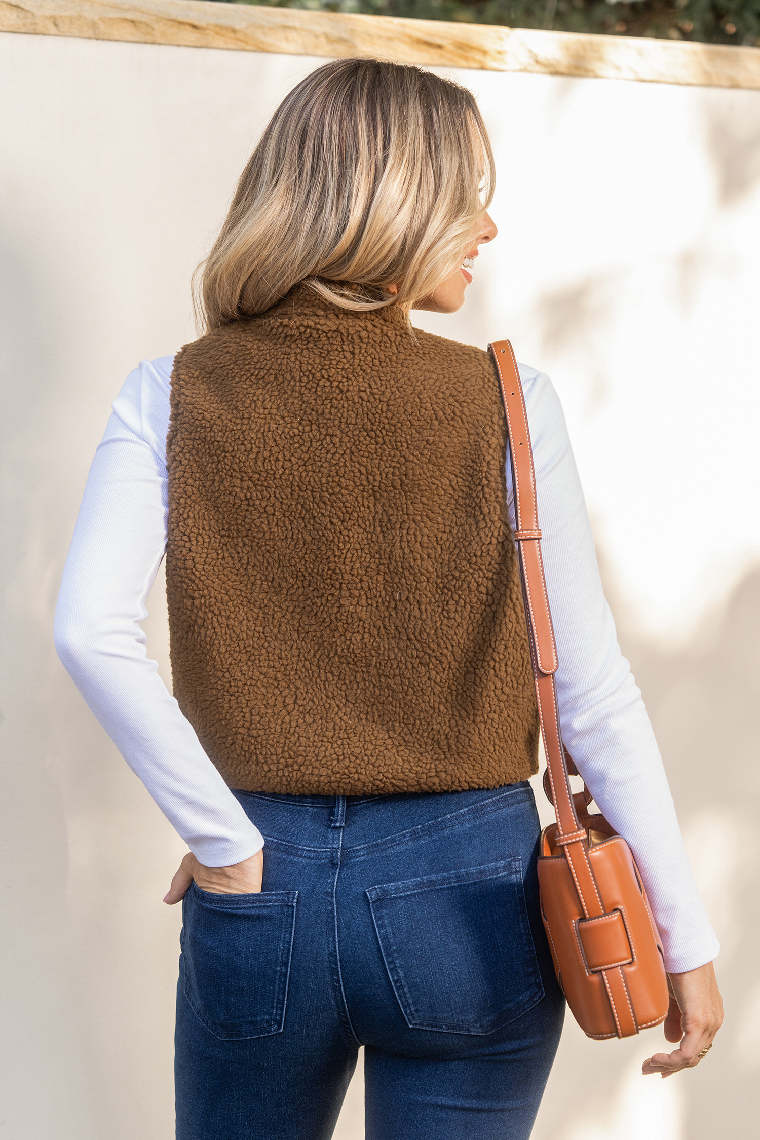 Brown Sherpa Zip-Up Vest