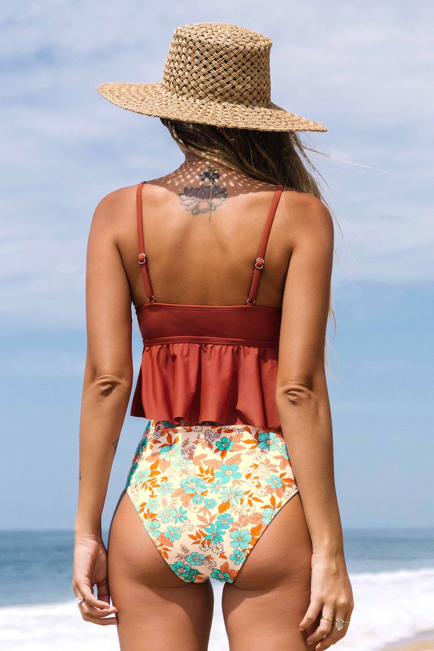 HomeBunny Tie Ruffle Tankini & Starry Daisy Shirred High Waist Set