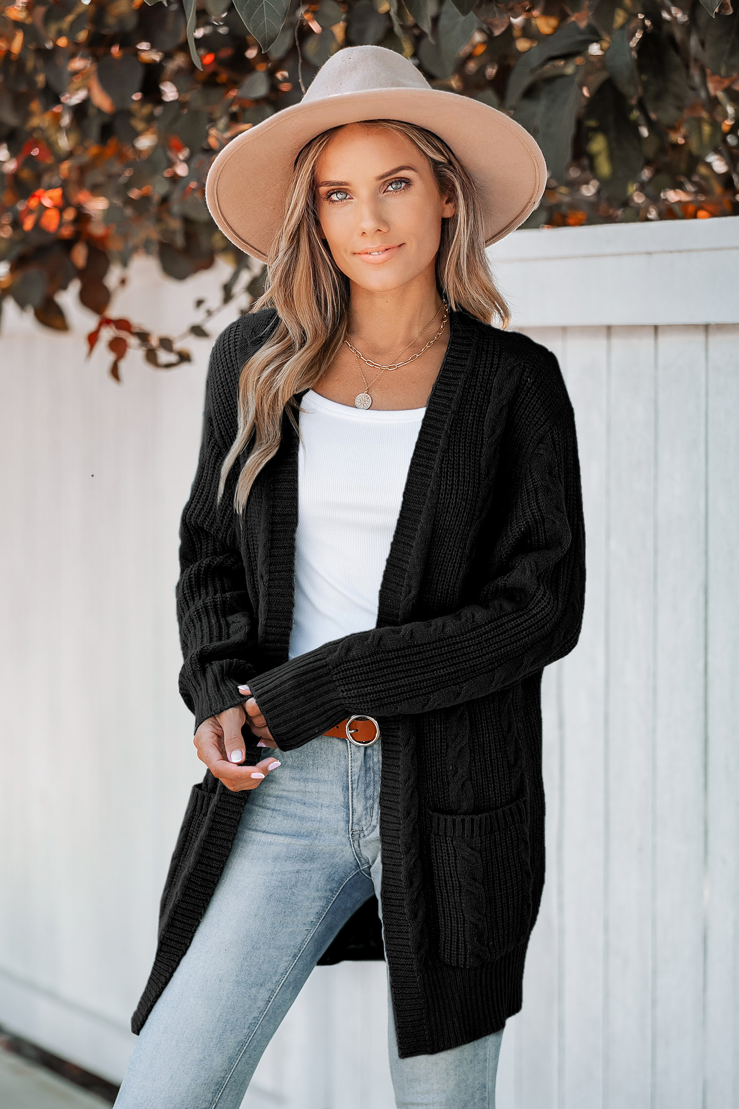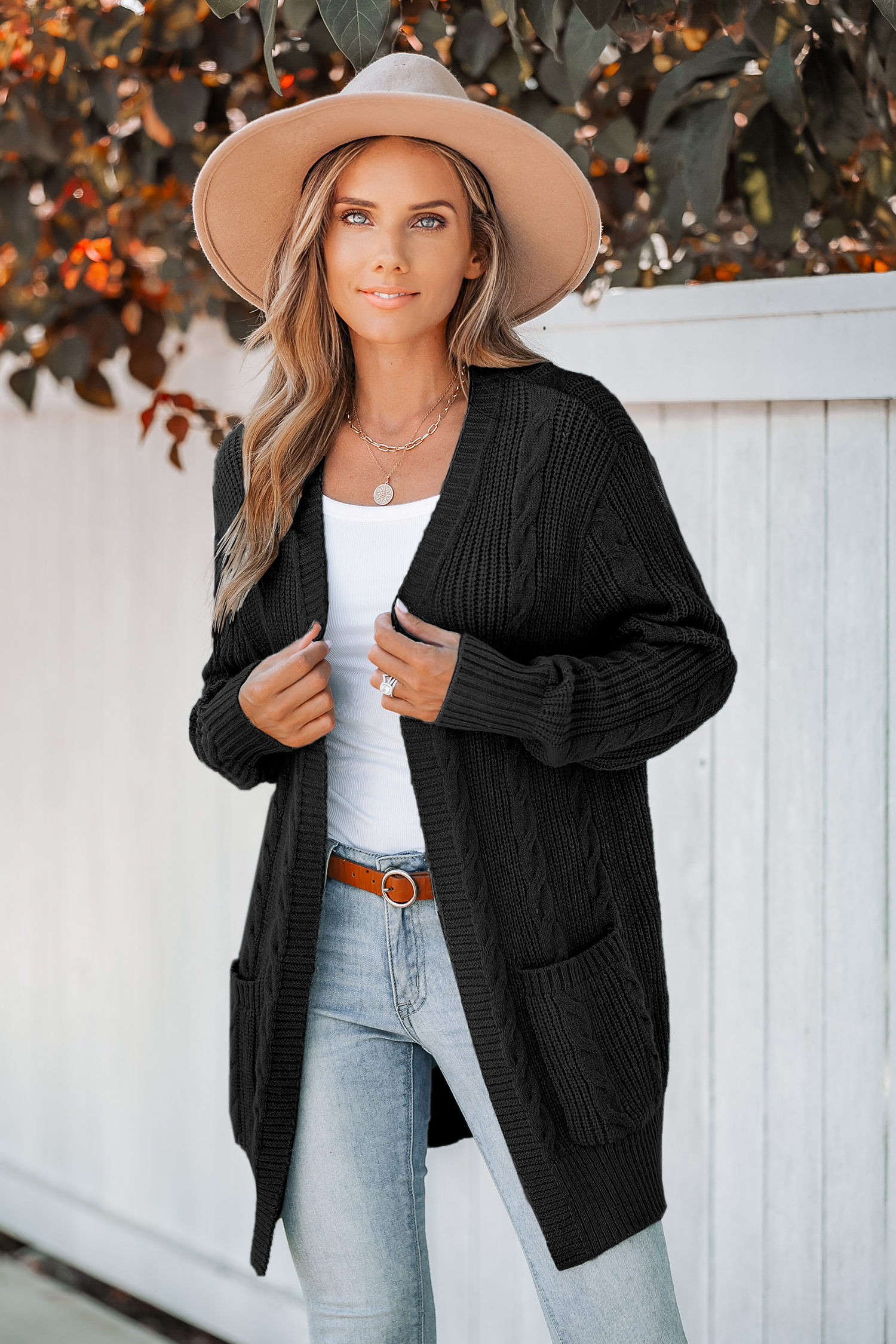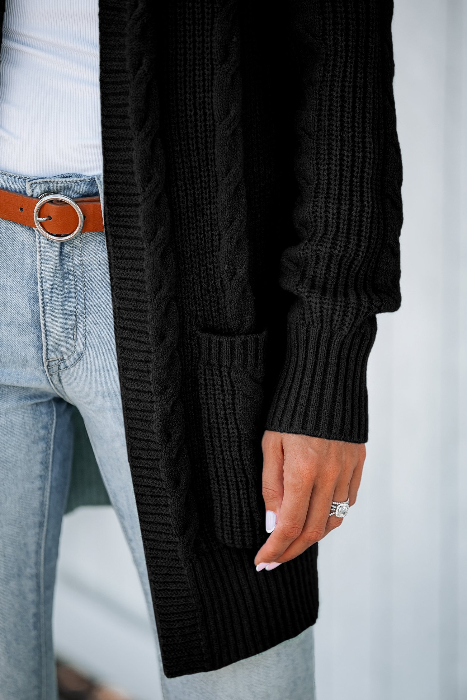Cable Knit Pocket Longline Cardigan