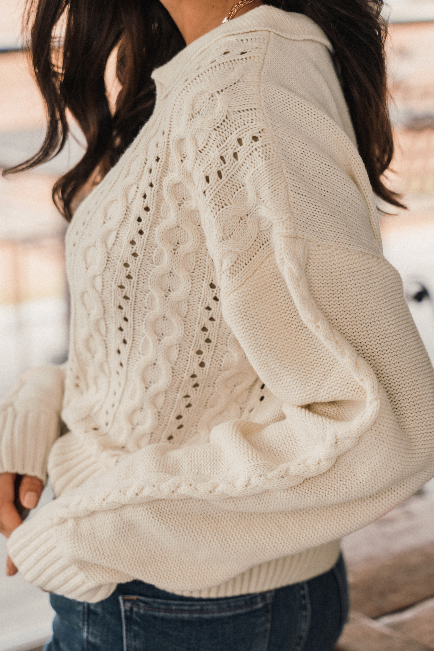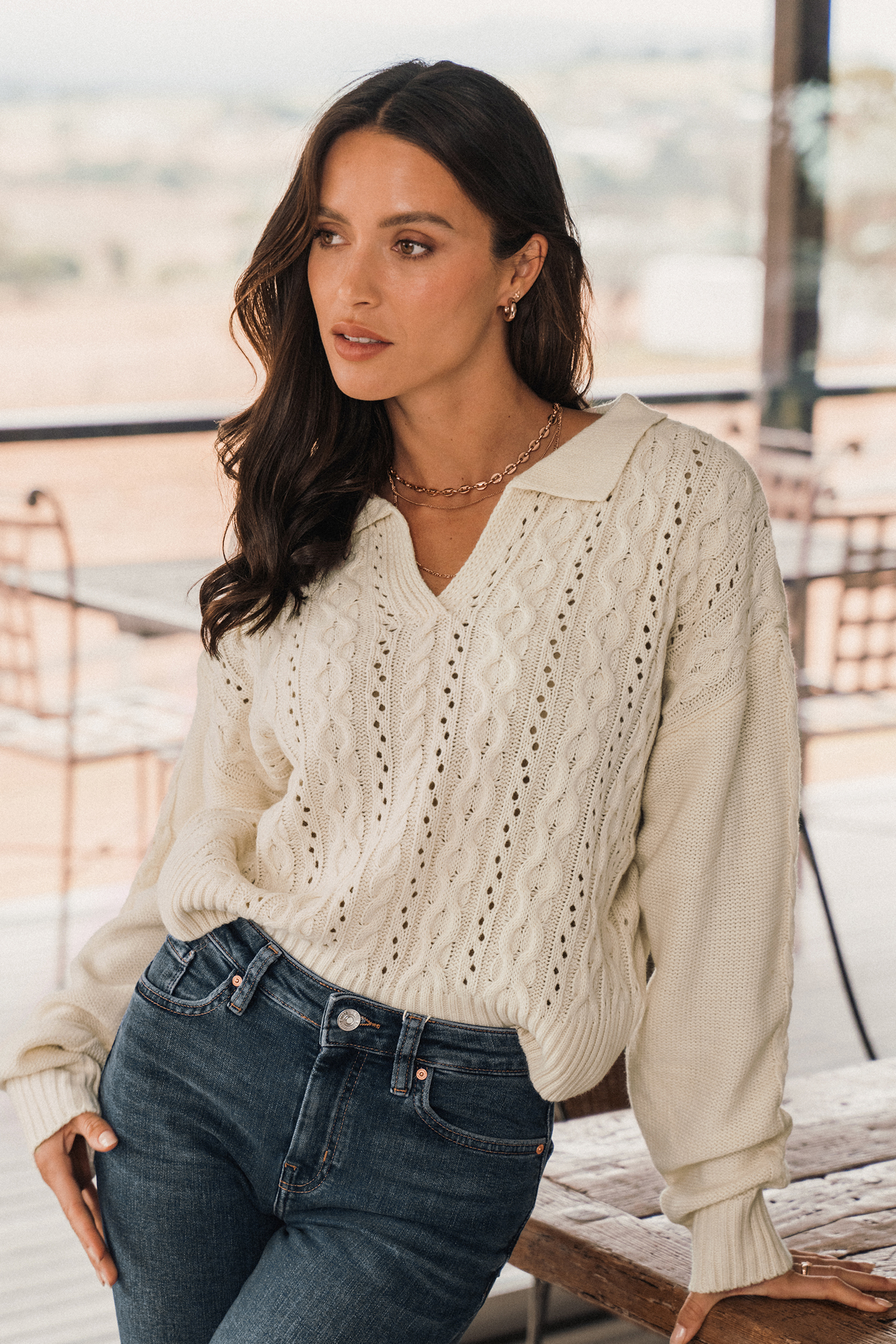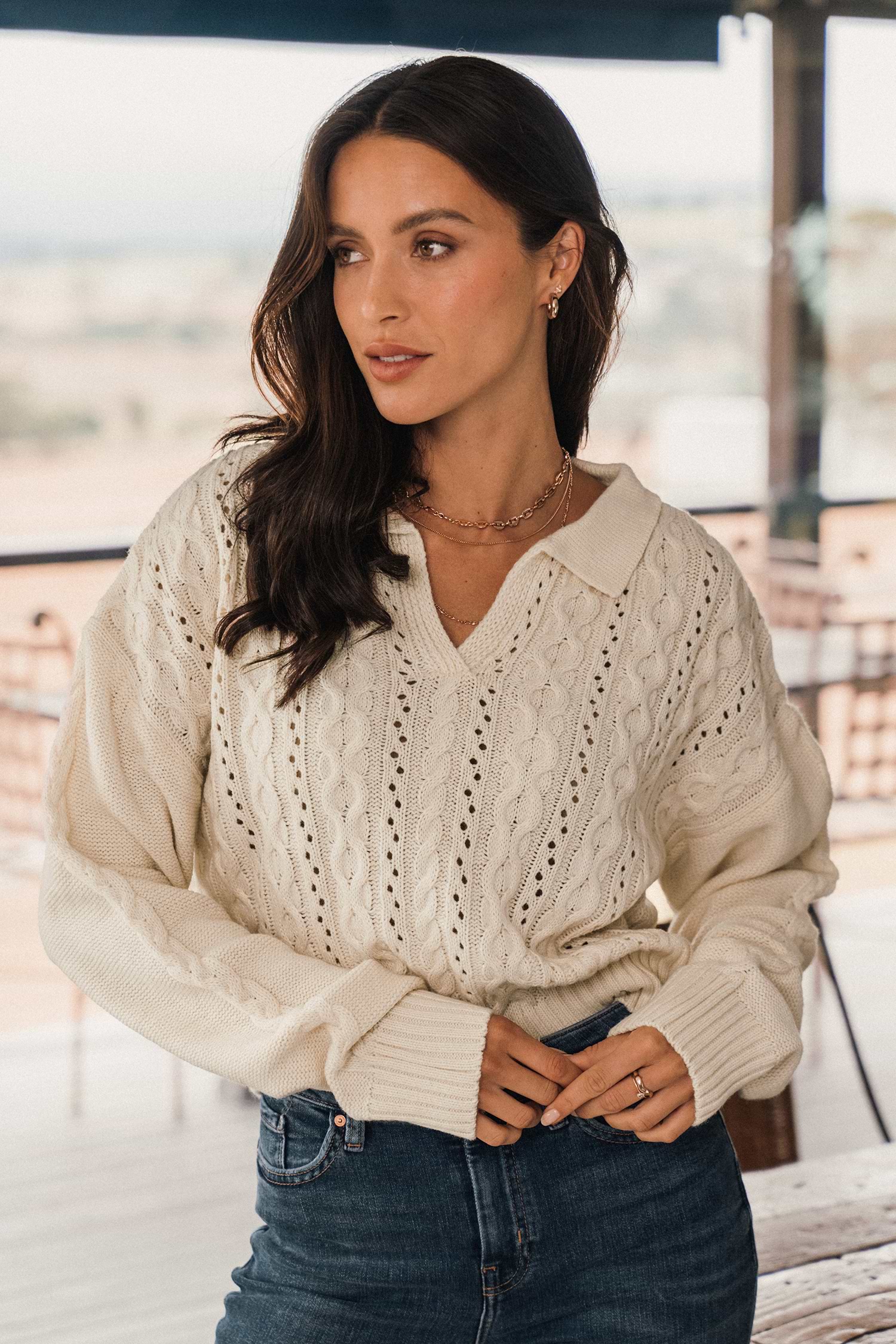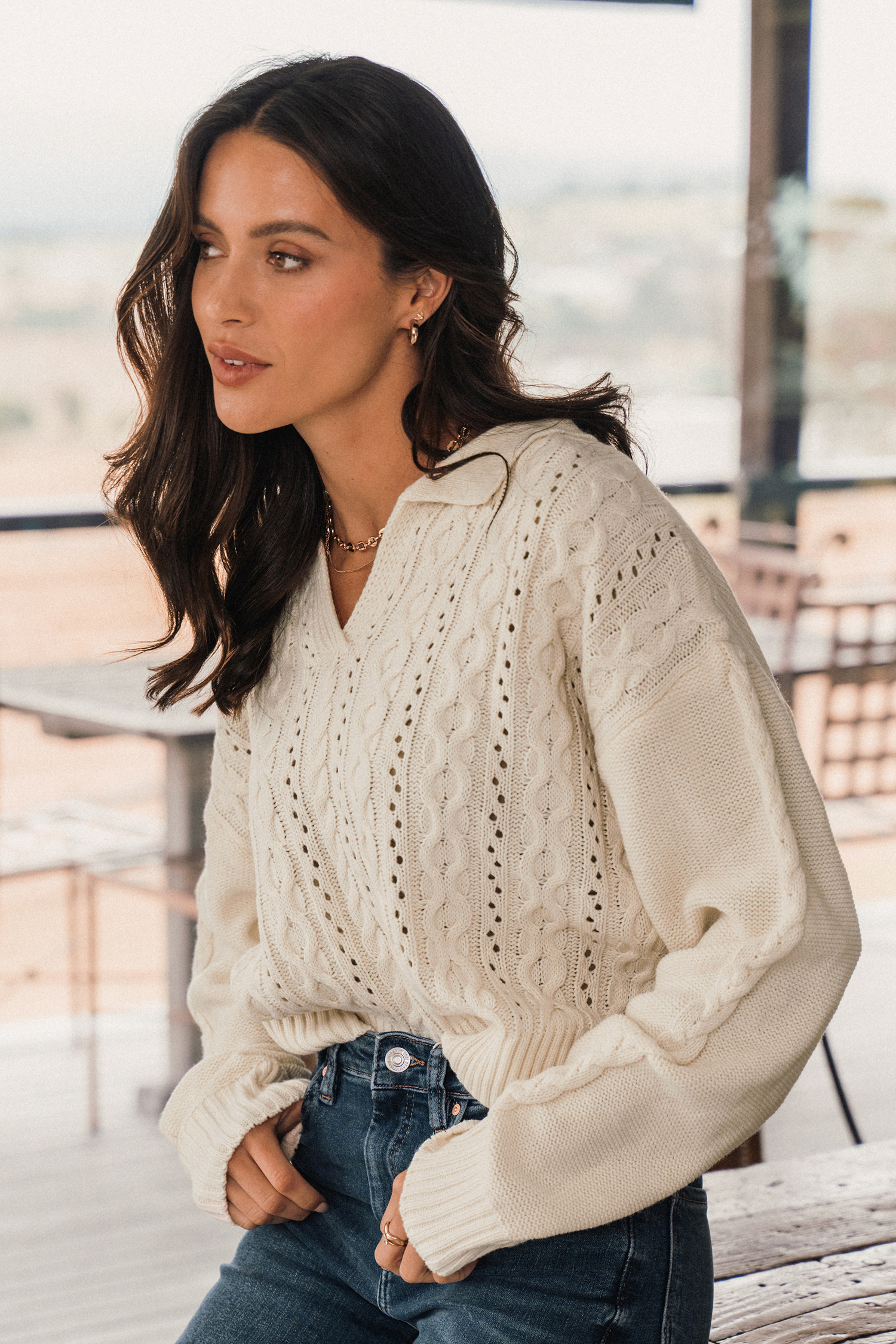 Cable Knit Polo Collar Sweater