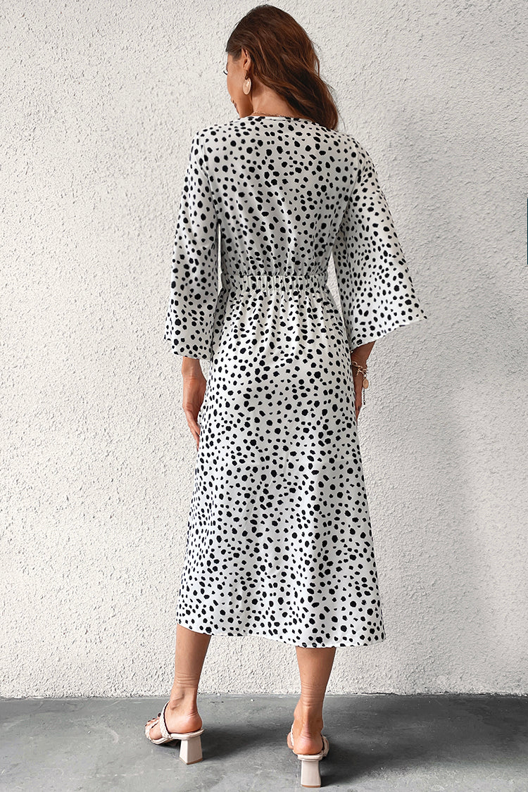 HomeCam Flared Sleeve Bow Tie Dots Dress