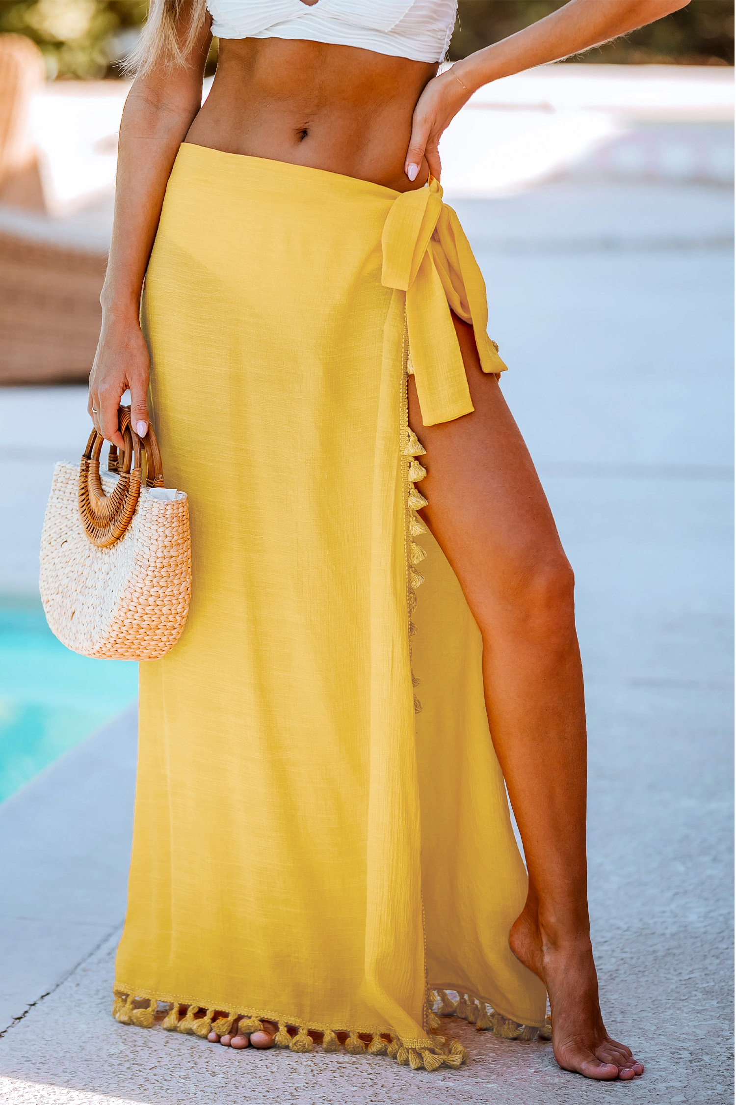 Canary Sheer Tassel Trim Maxi Cover-Up